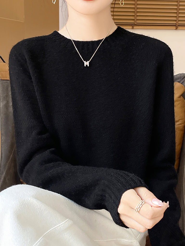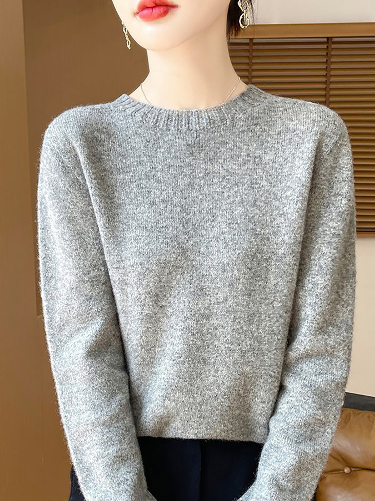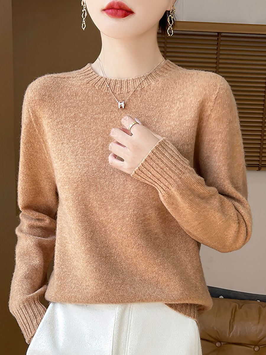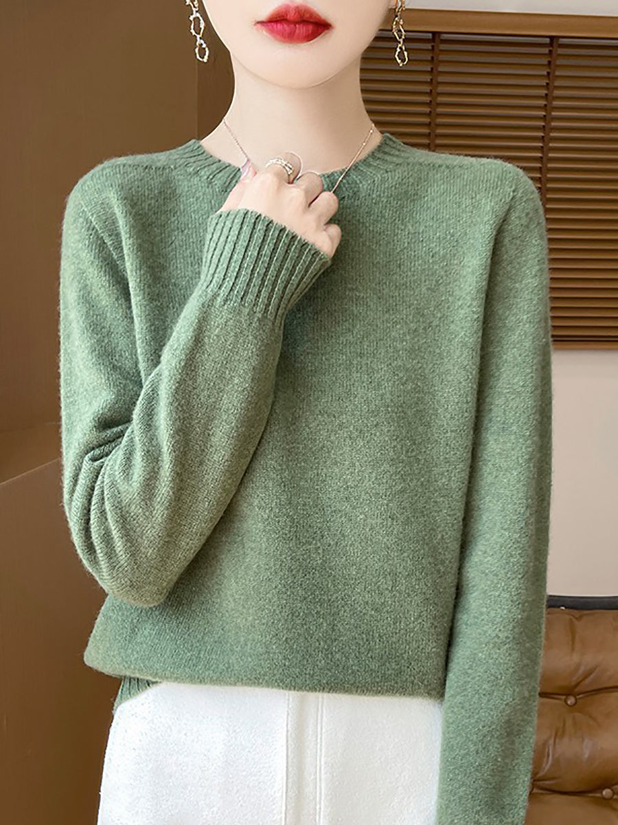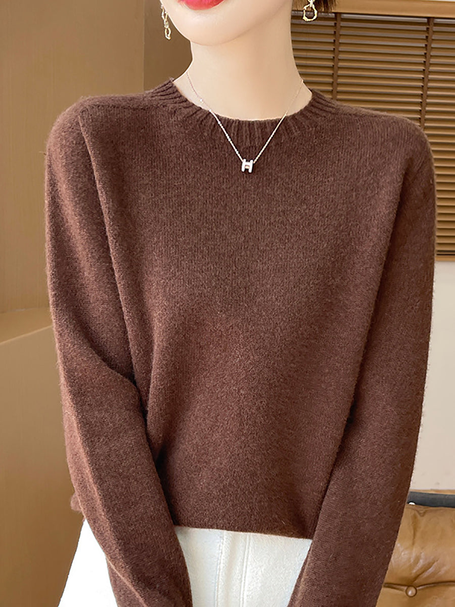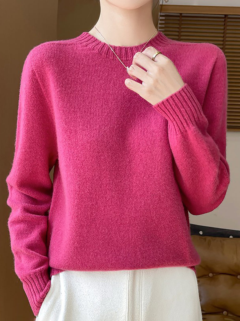 Women Winter Casual Pure Color Knitted Wool O-Neck Sweater