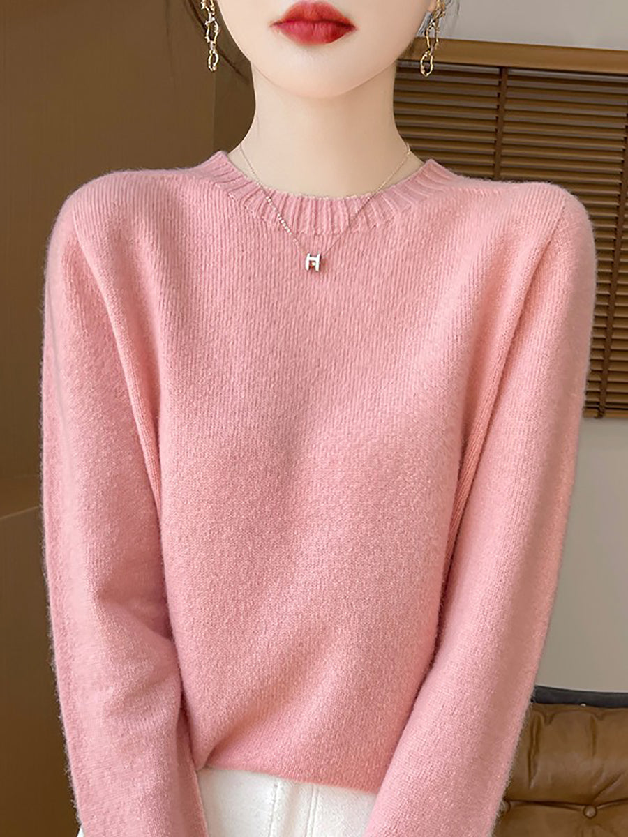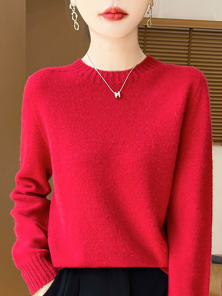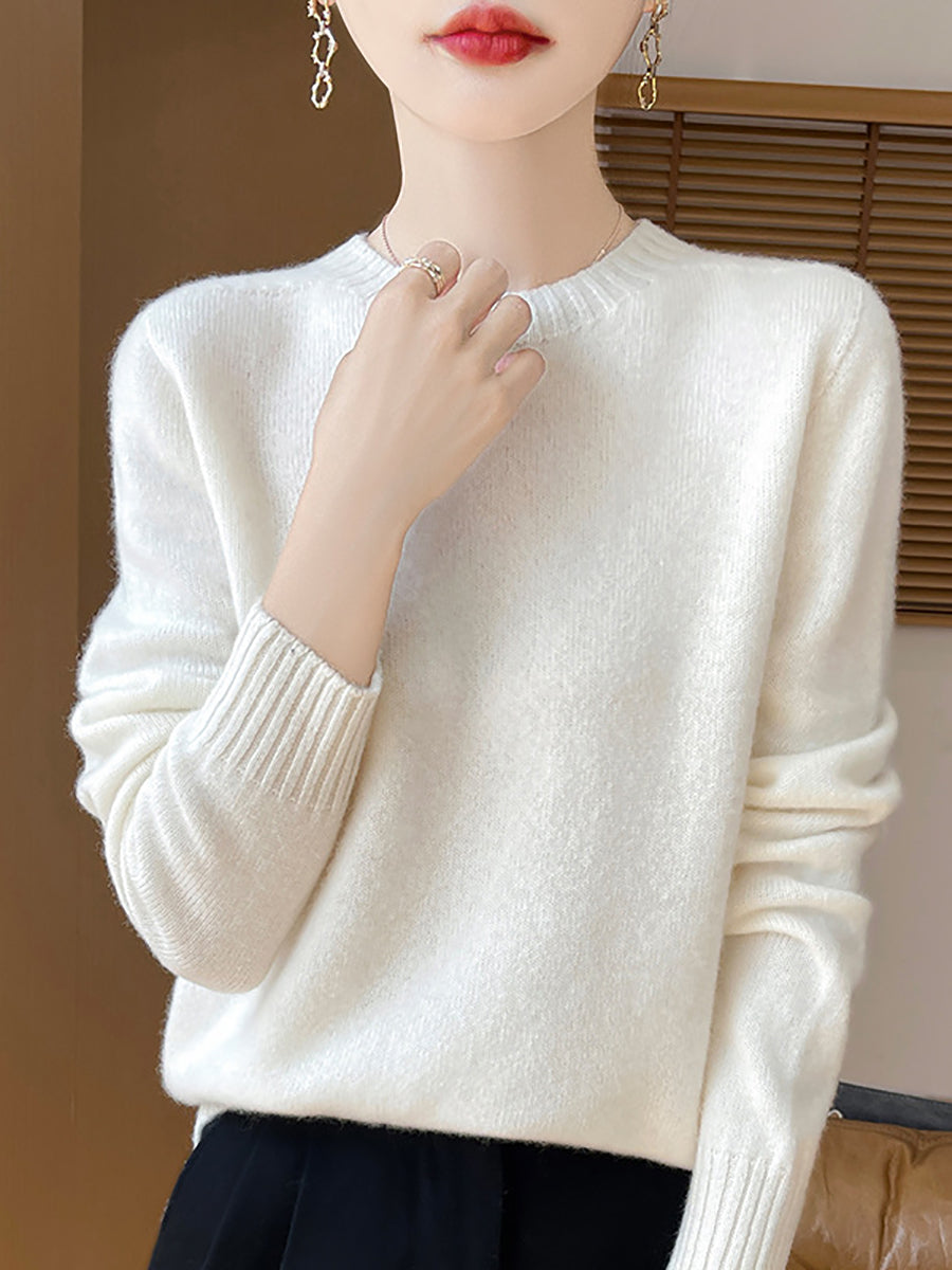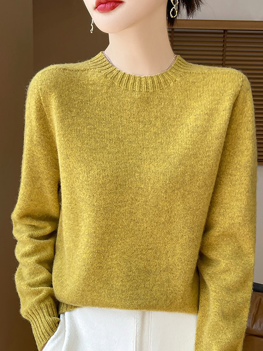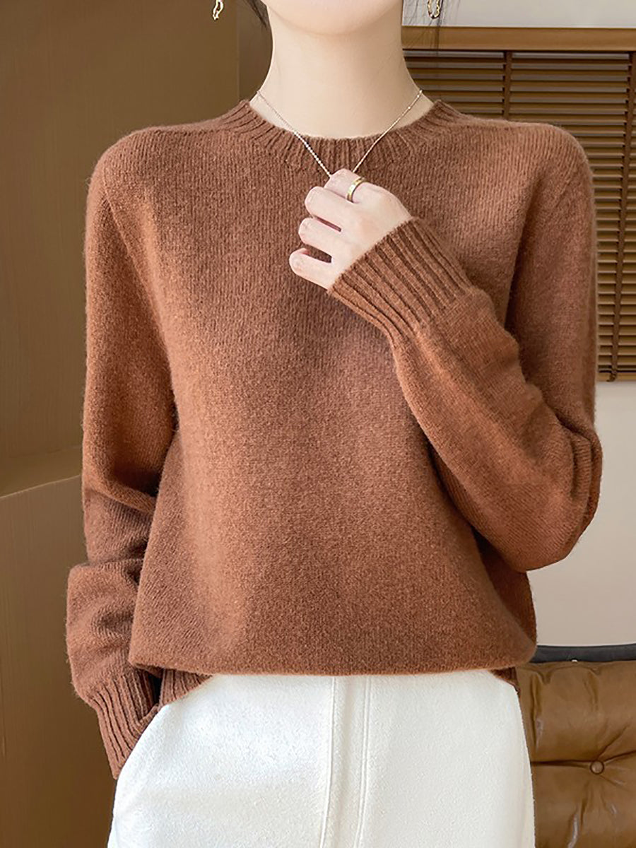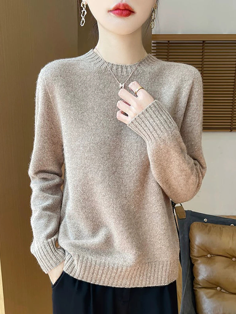 Women Winter Casual Pure Color Knitted Wool O-Neck Sweater