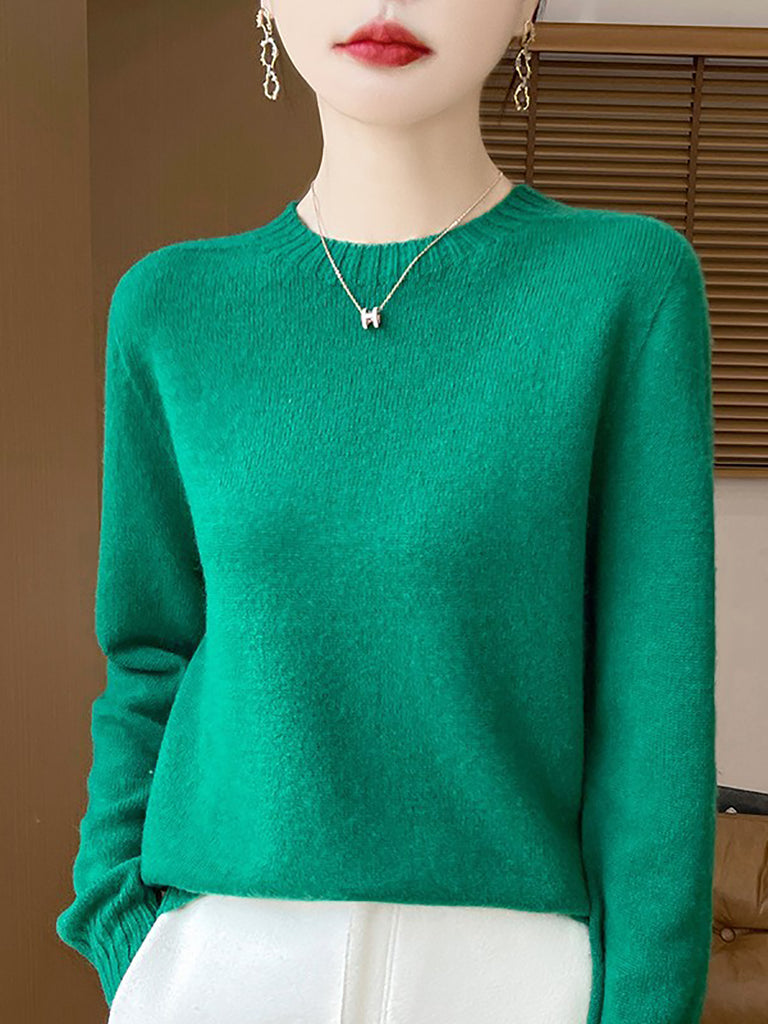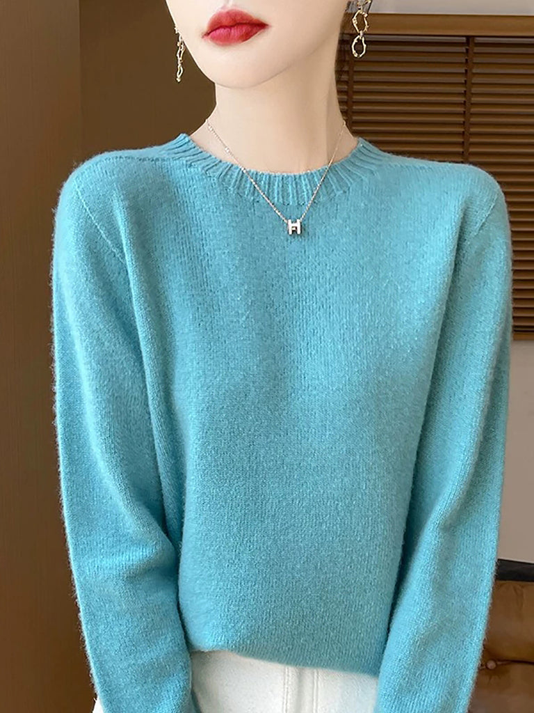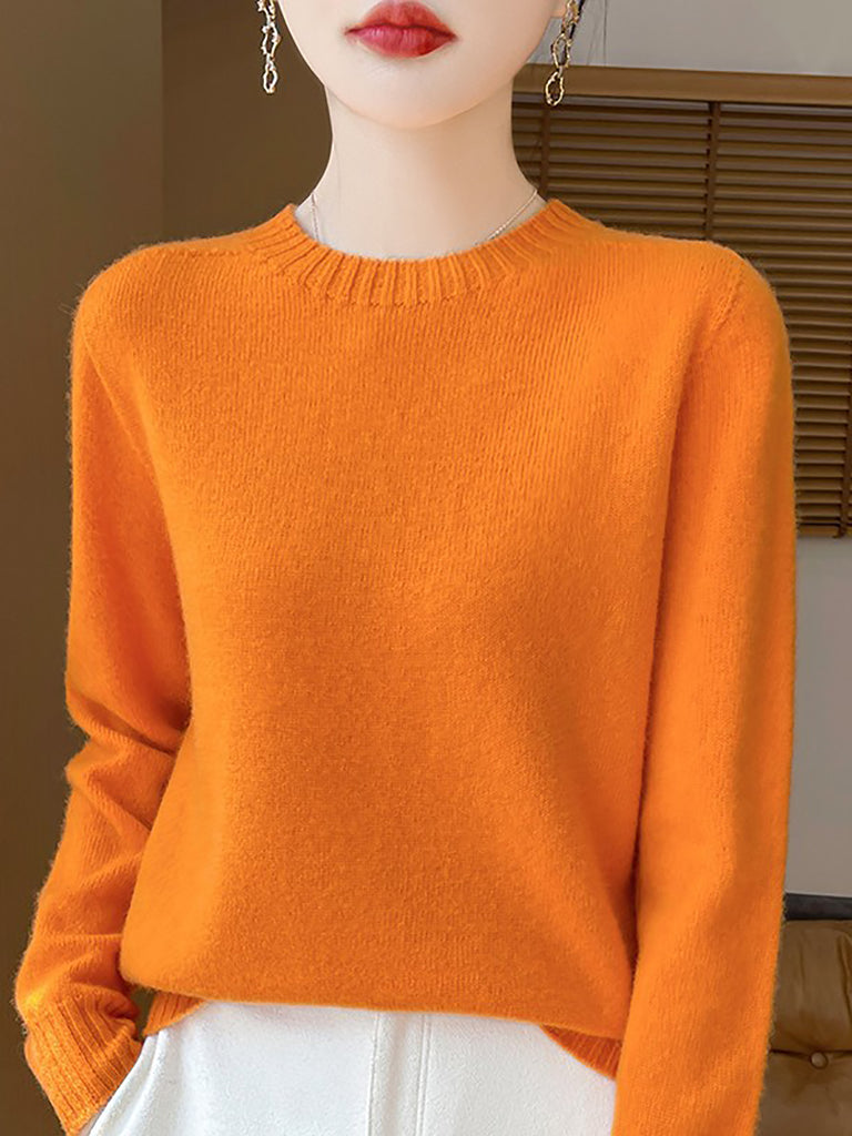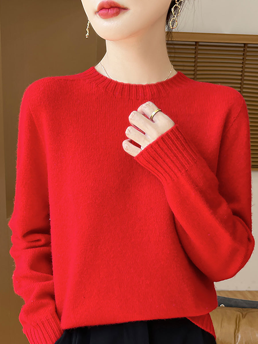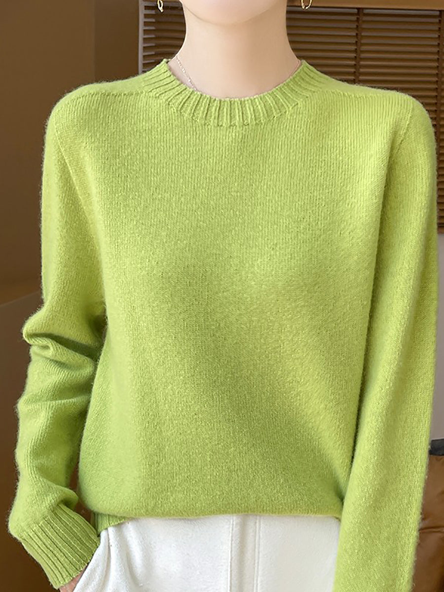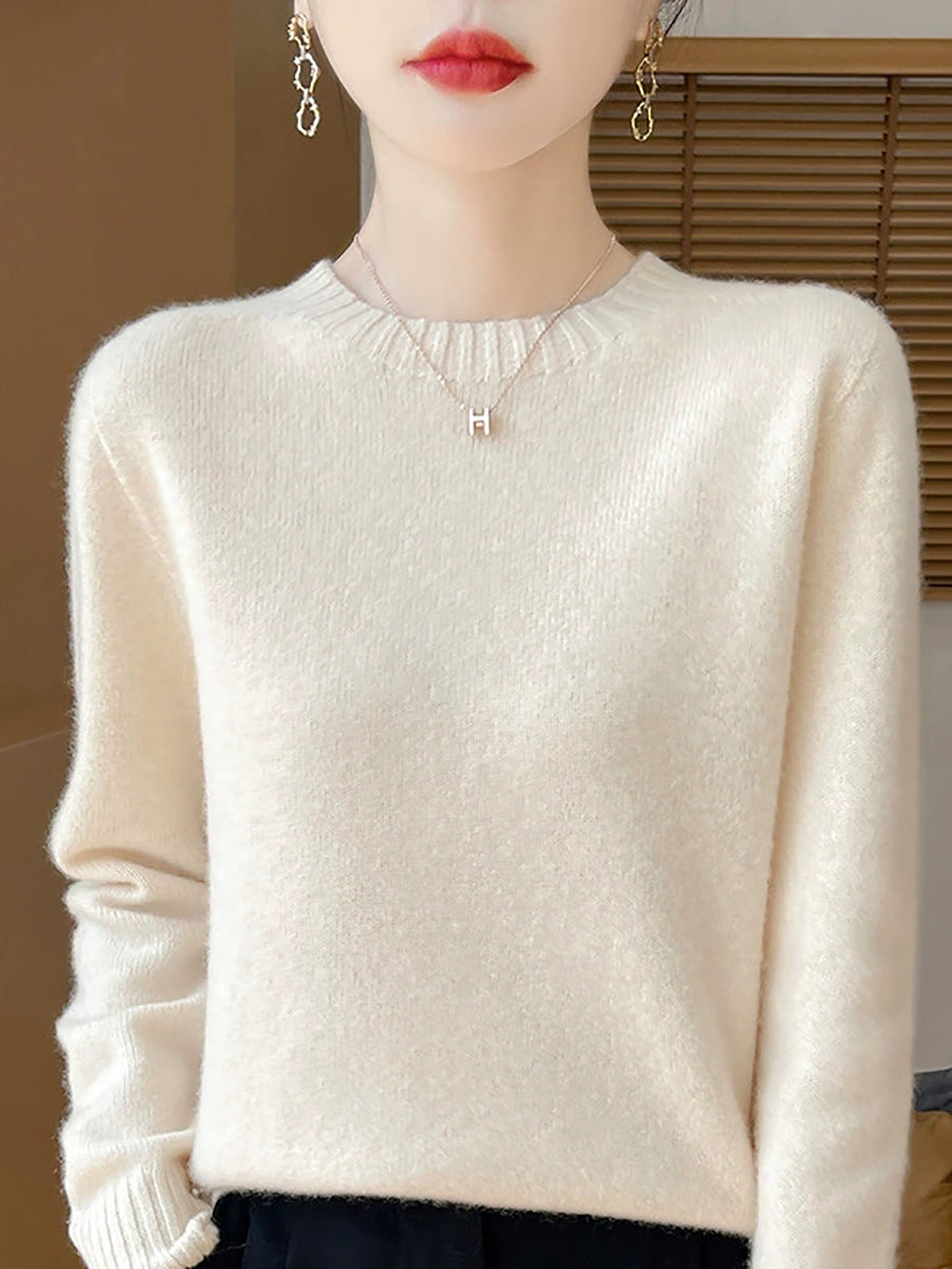 Women Winter Casual Pure Color Knitted Wool O-Neck Sweater