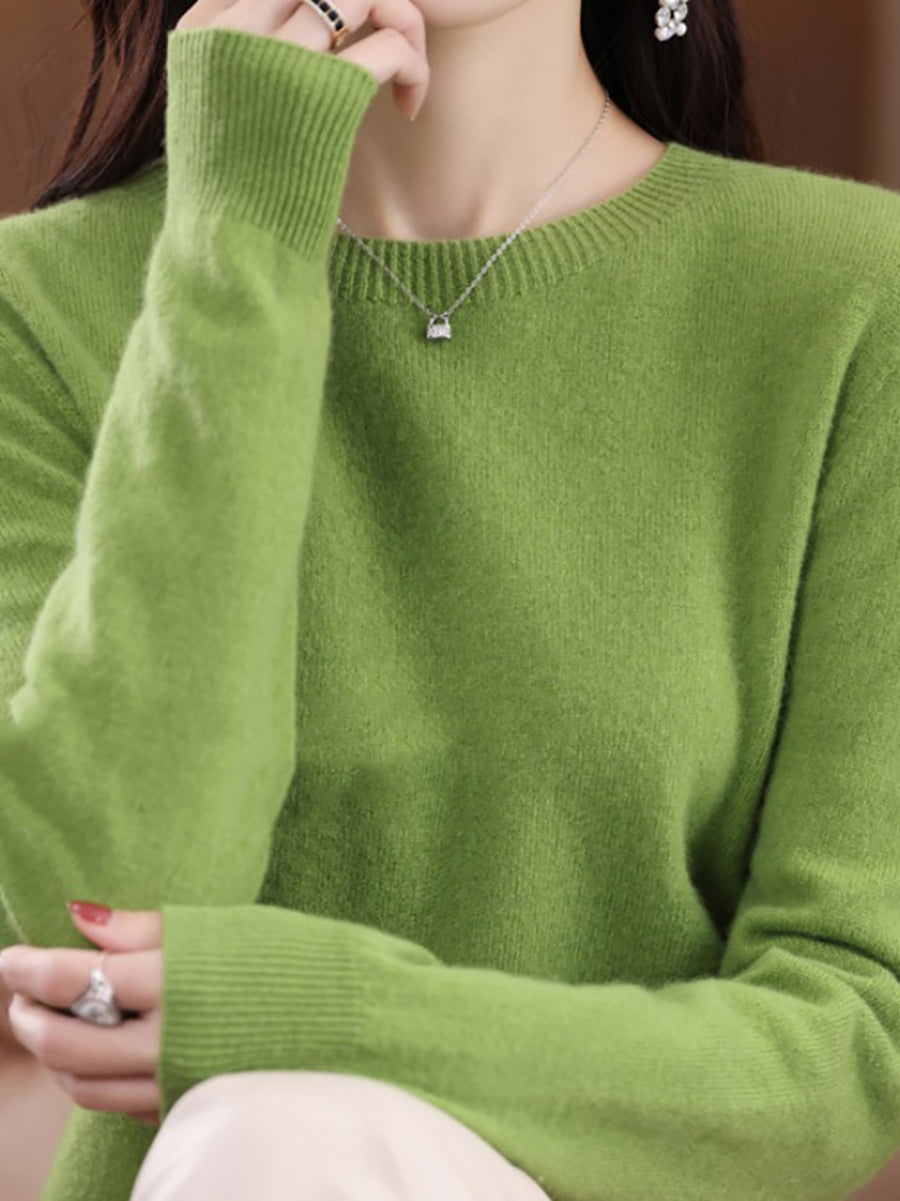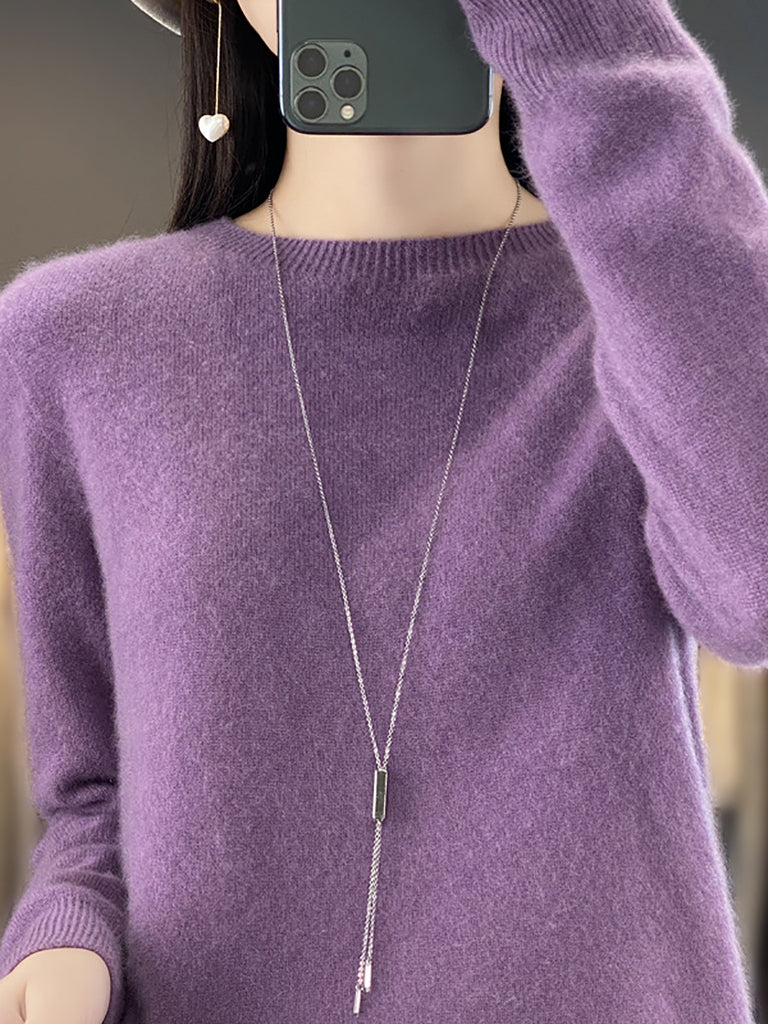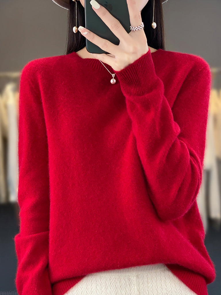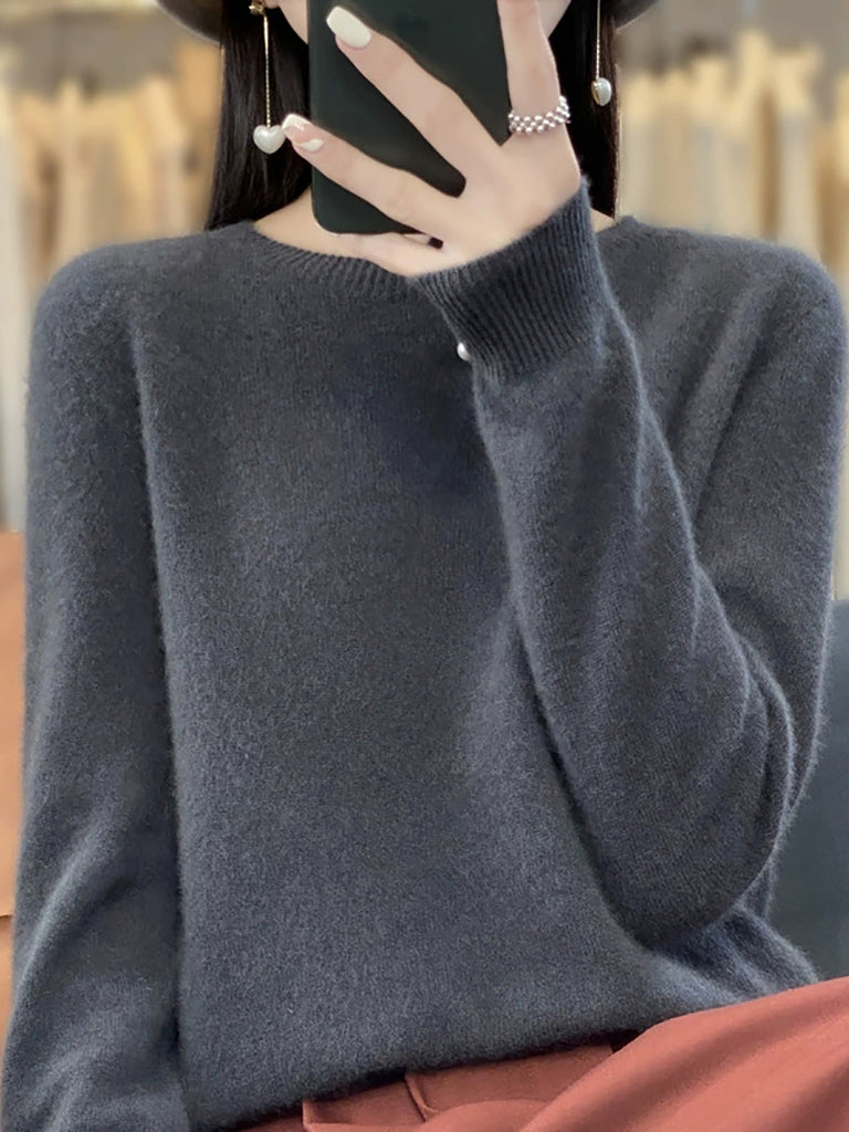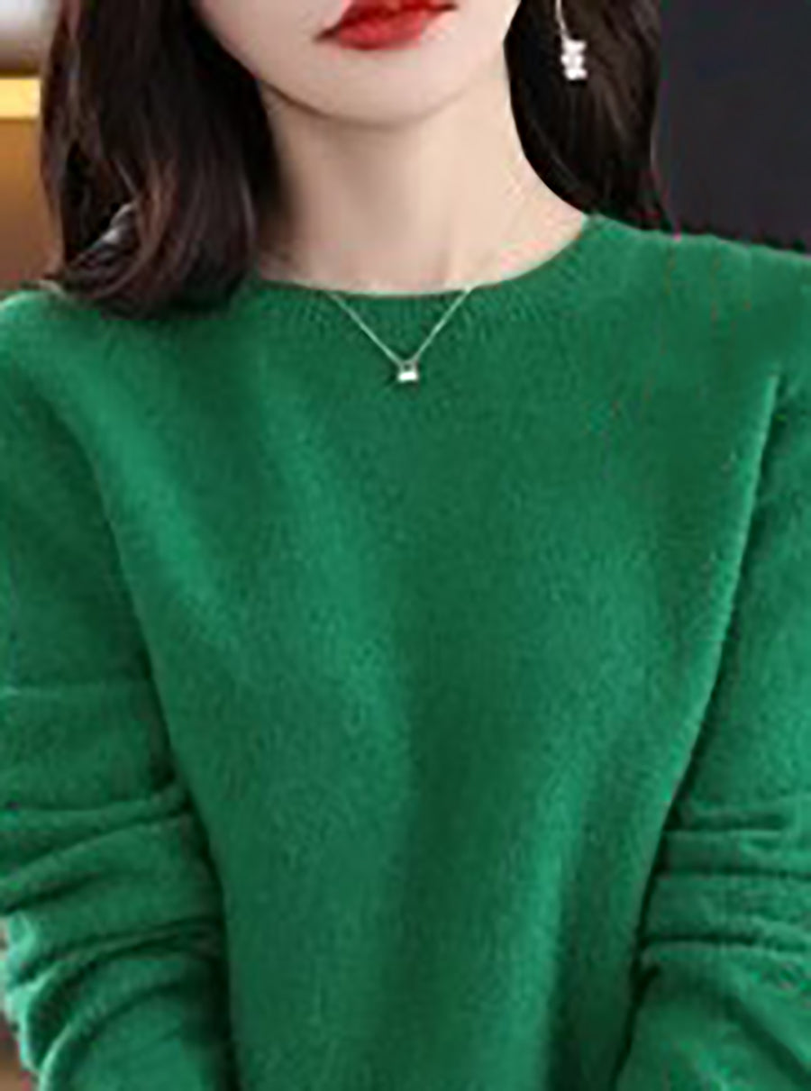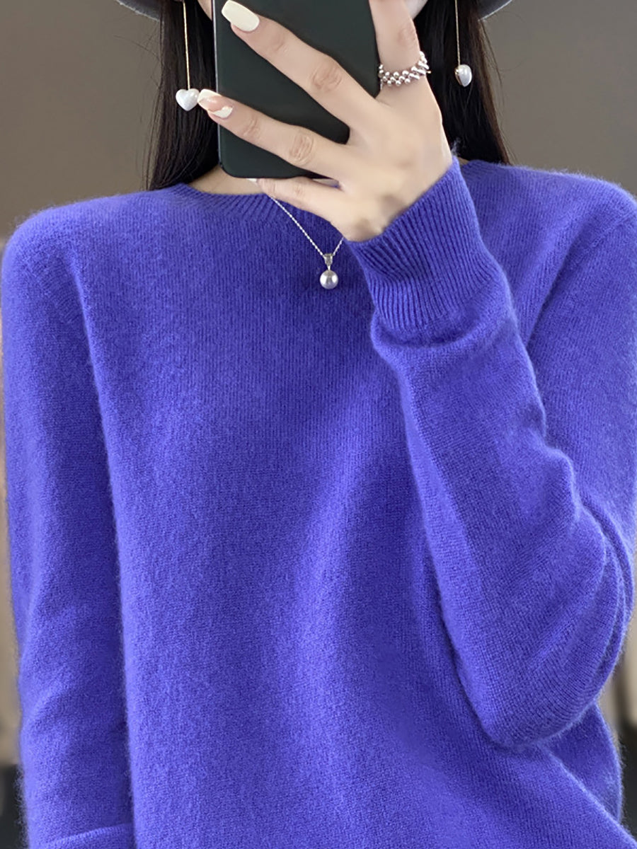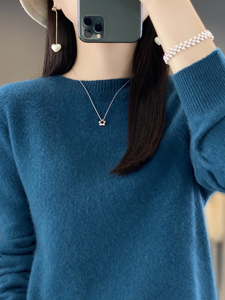 Women Winter Casual Pure Color O-Neck Wool Sweater