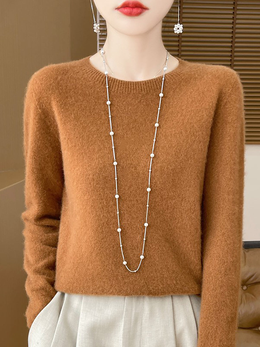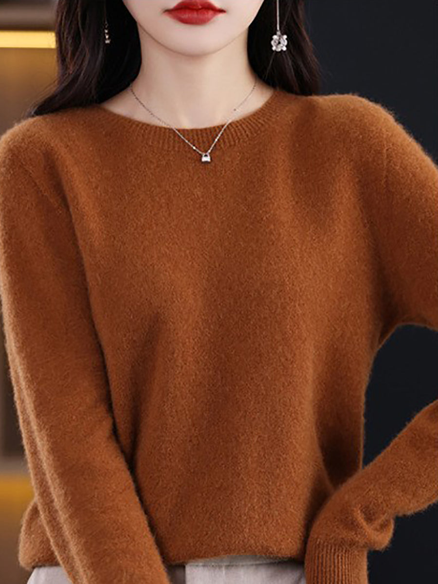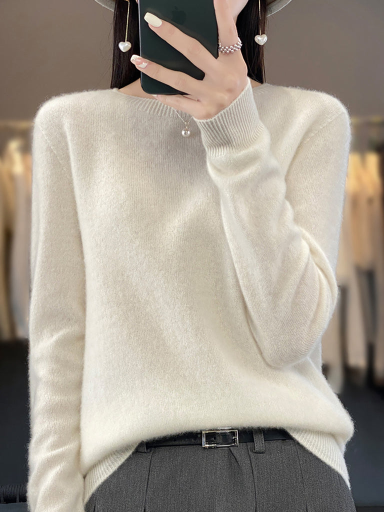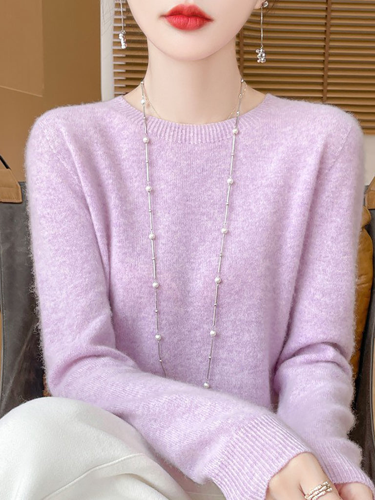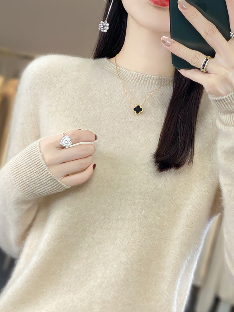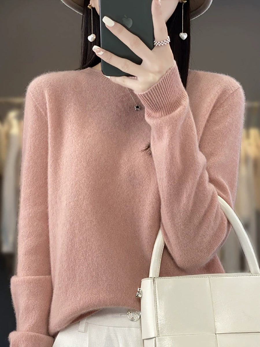 Women Winter Casual Pure Color O-Neck Wool Sweater