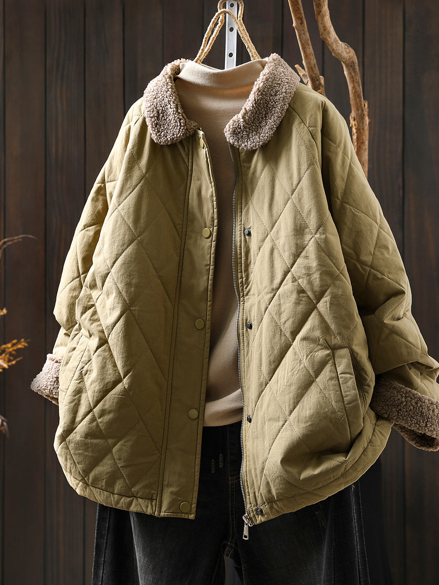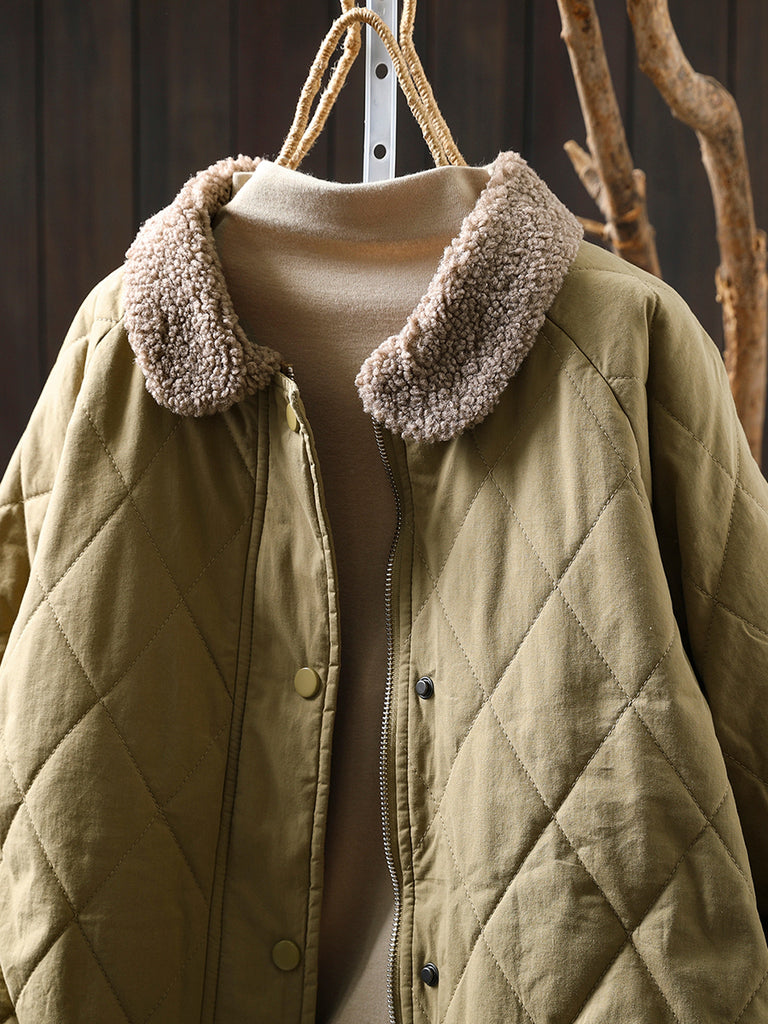 Women Winter Retro Fleece Spliced Turn-down Collar Coat