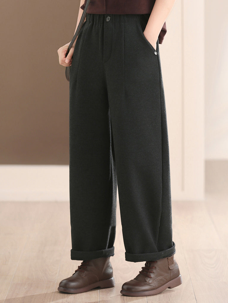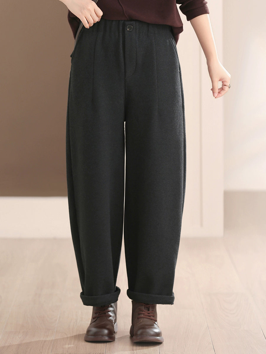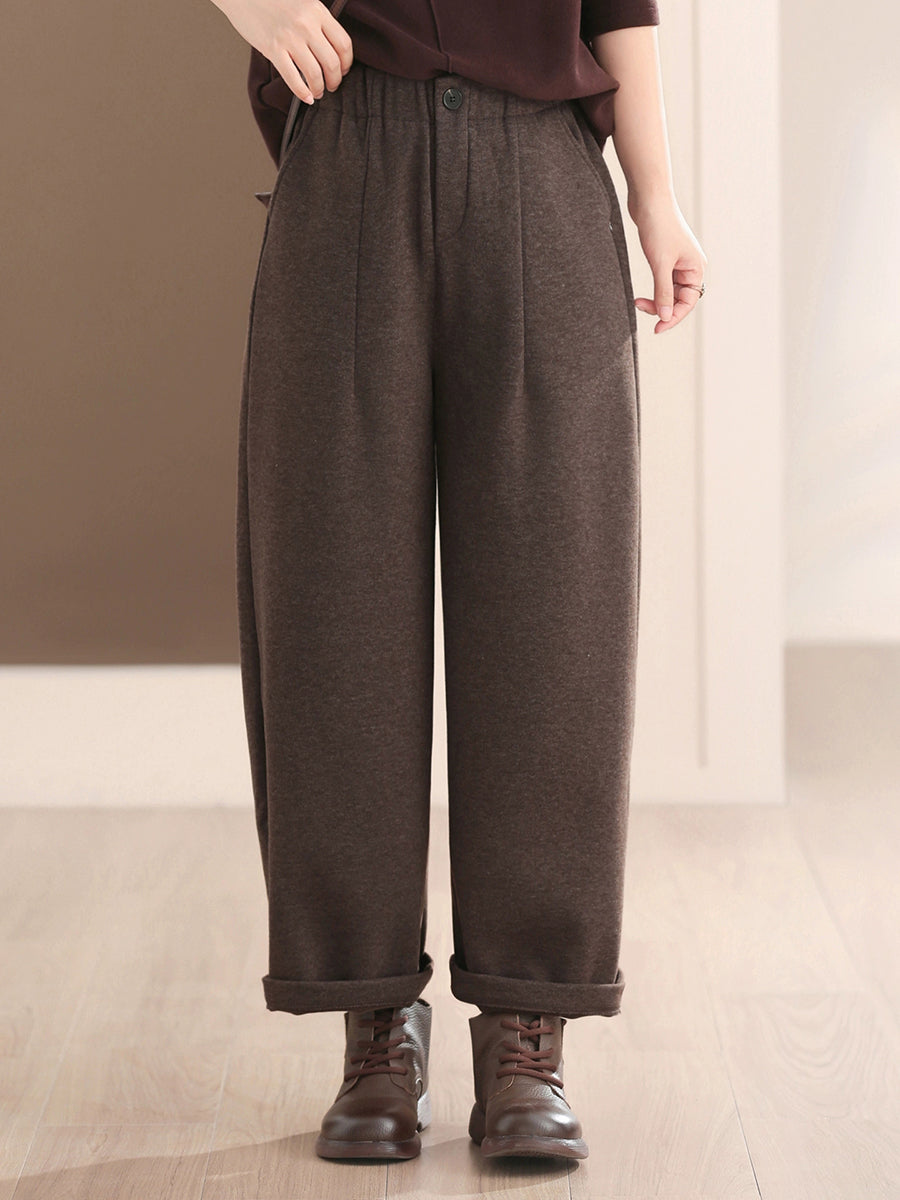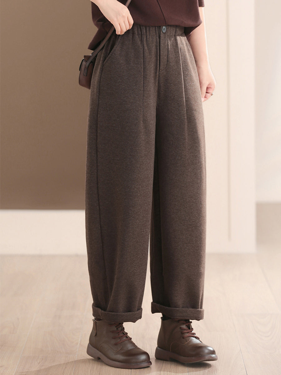 Women Winter Casual Pure Color Fleece-lined Harem Pants