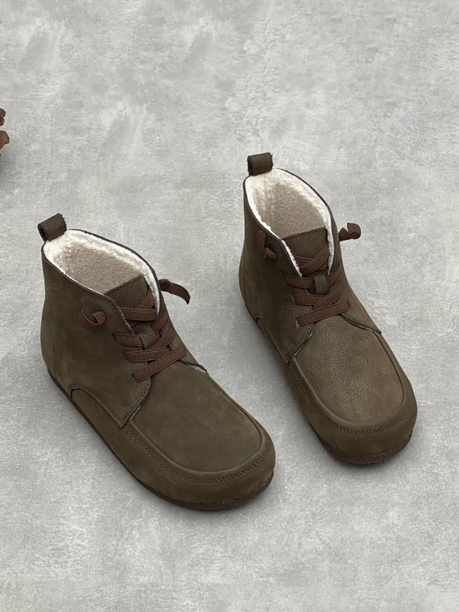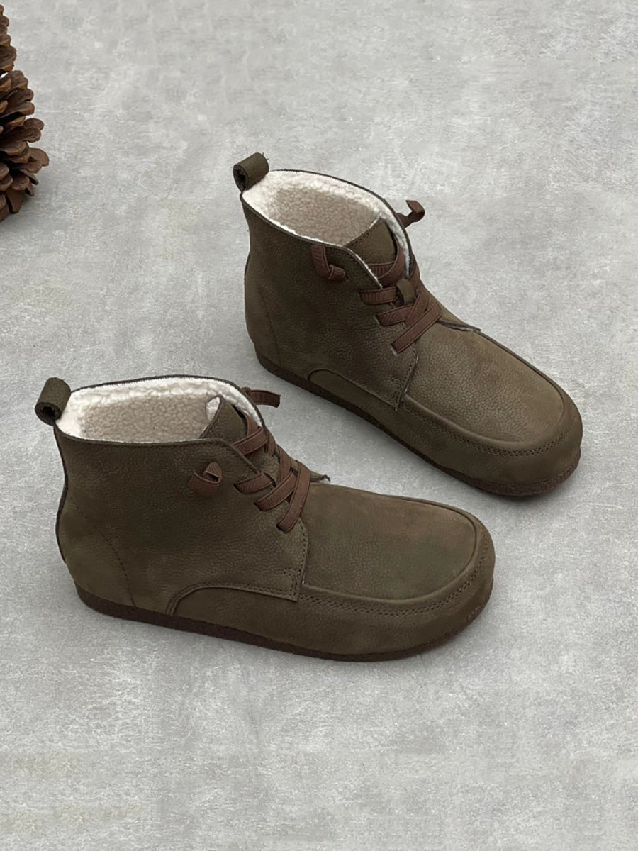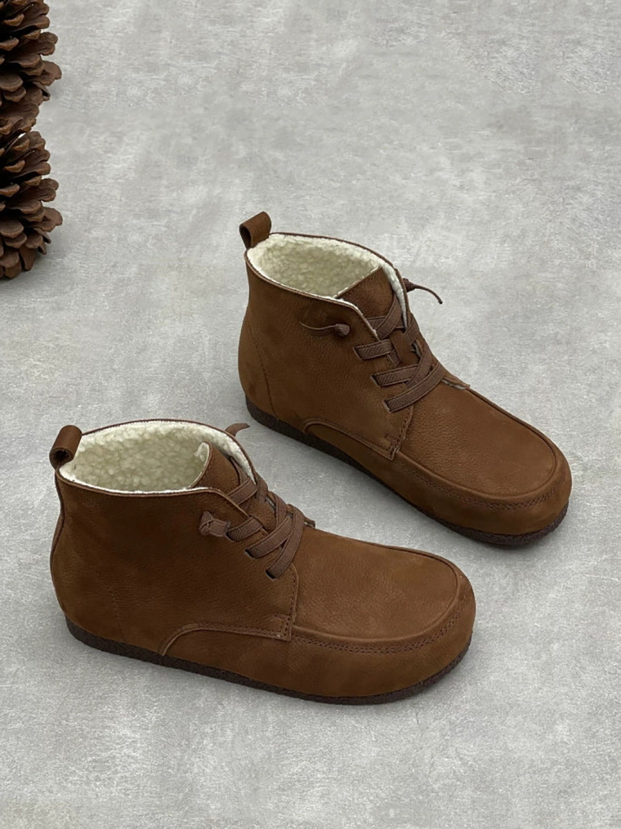 Women Winter Genuine Leather Fleece-lined Ankle Boots