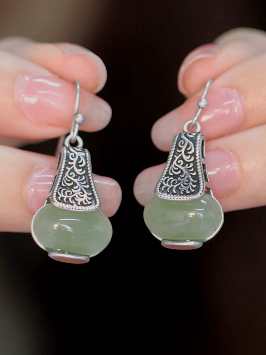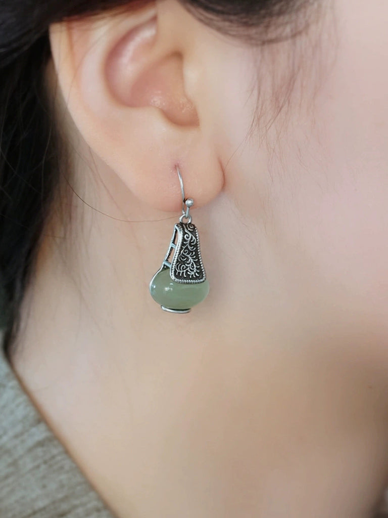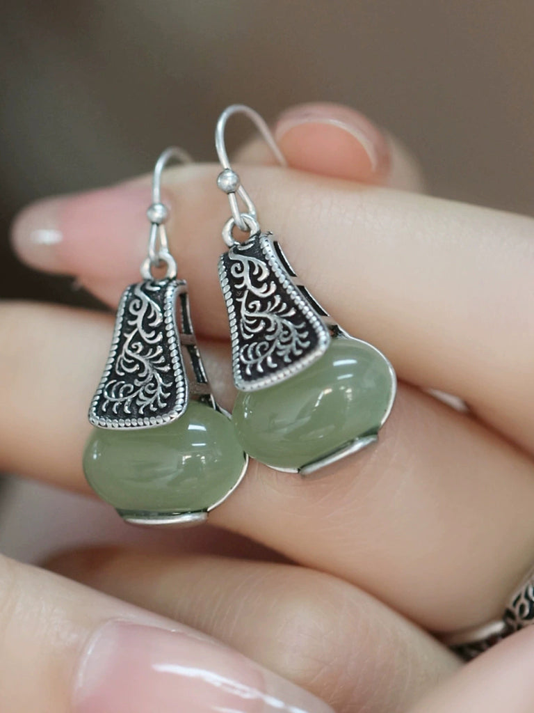 Women Ethnic Alloy Jade Earrings