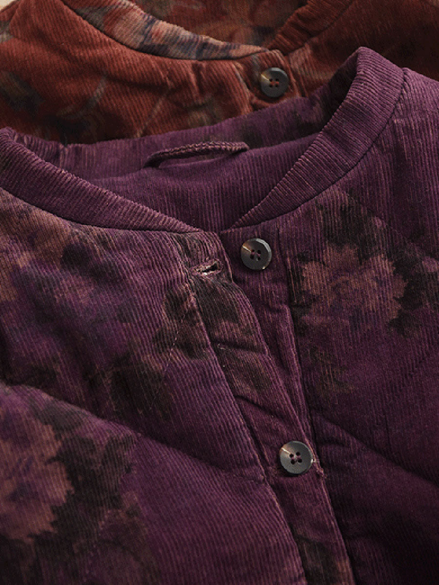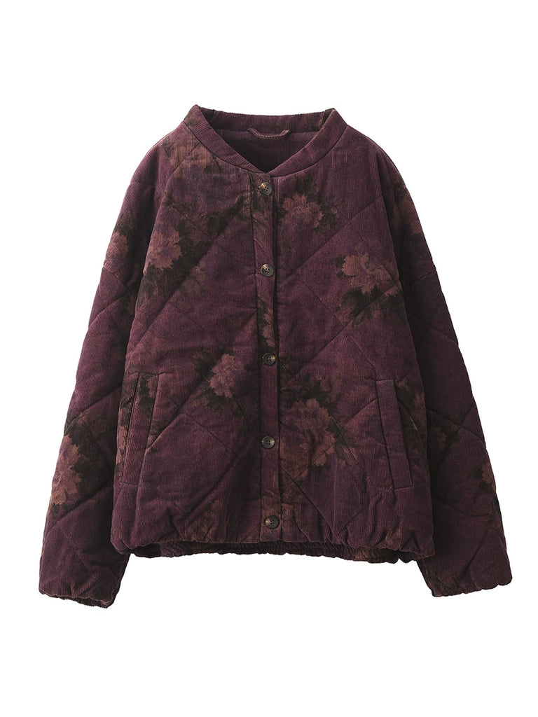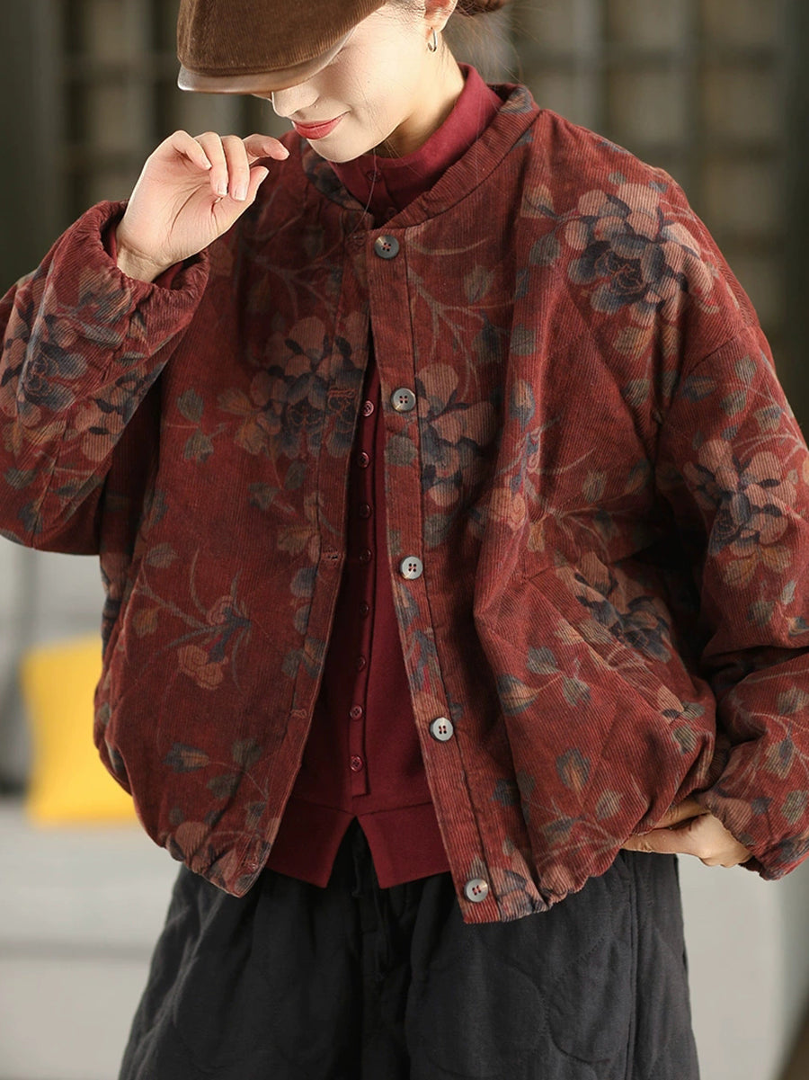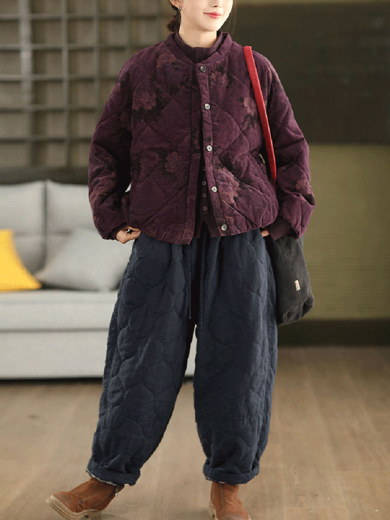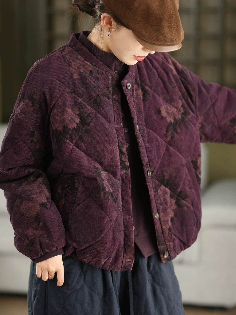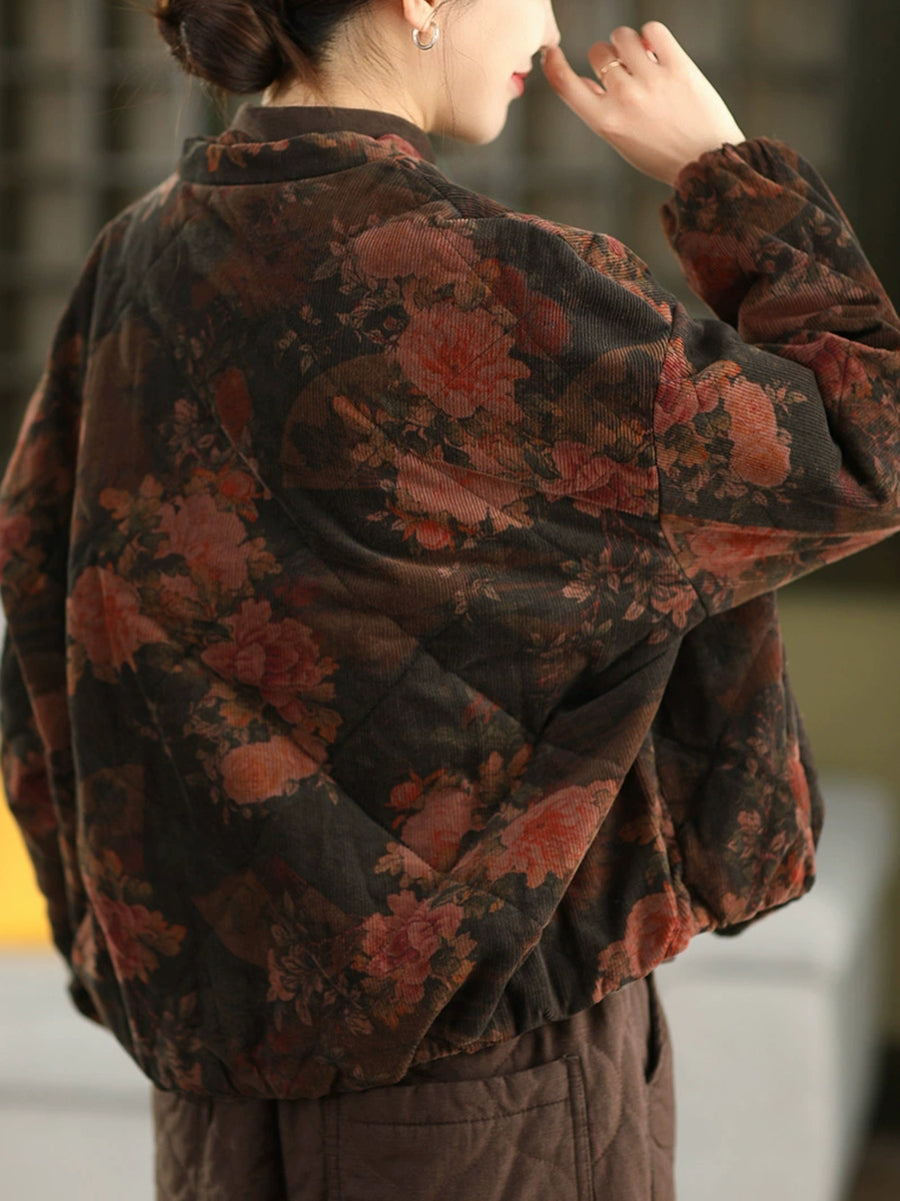 Women Vintage Winter Flower 100%Cotton Padded Jacket