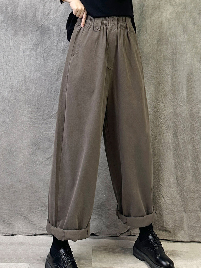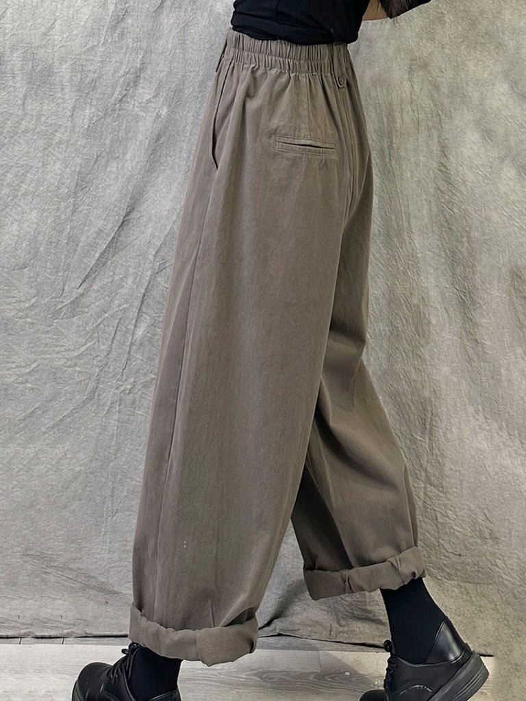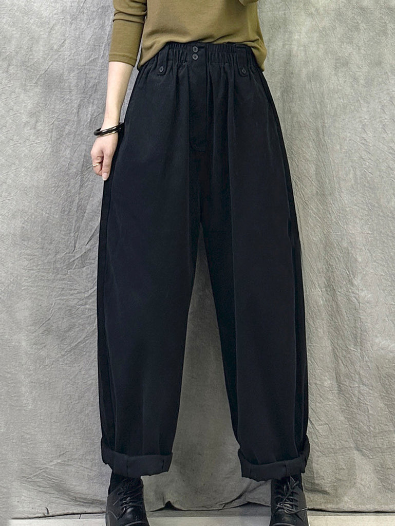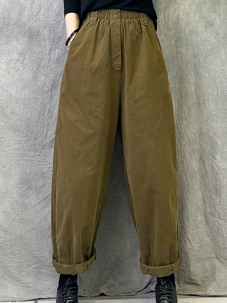 Women Winter Casual Pure Color Cotton Straight Pants