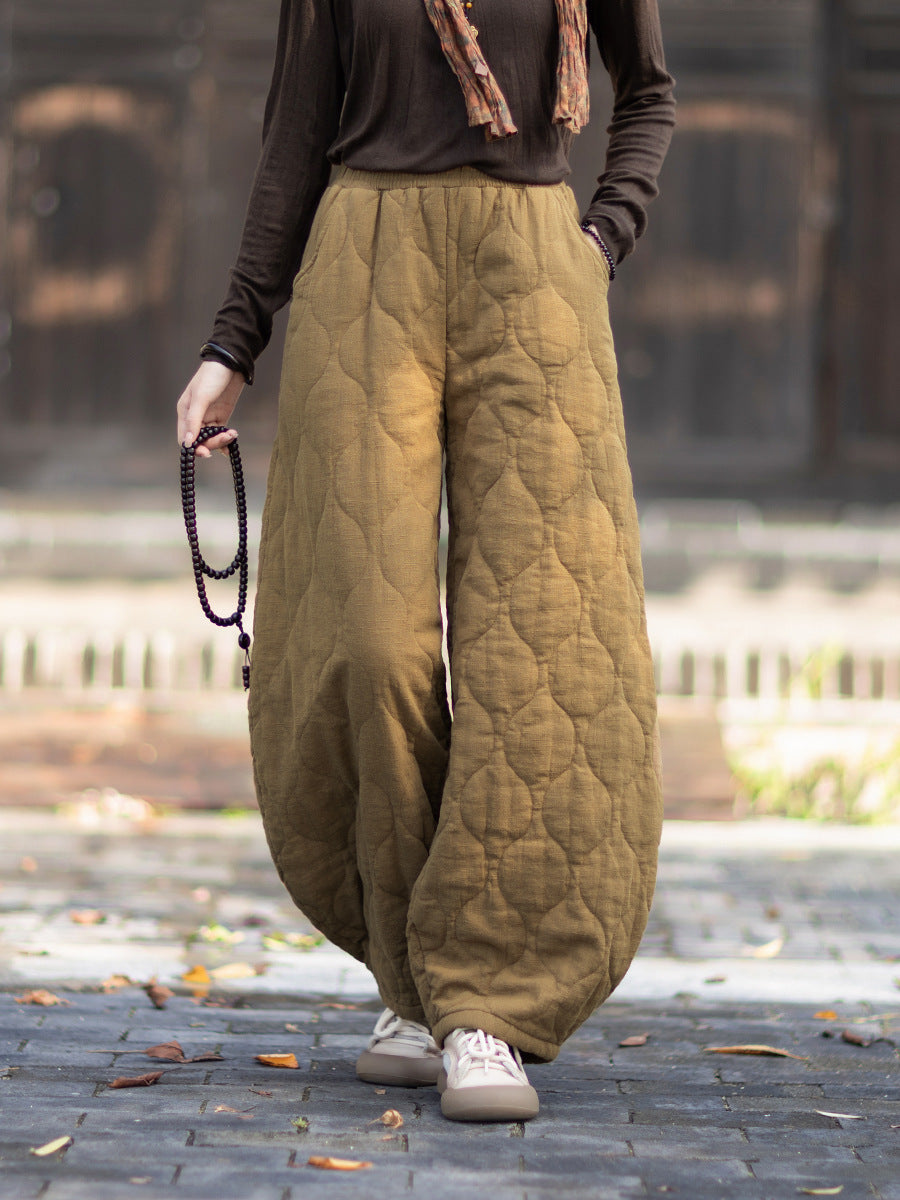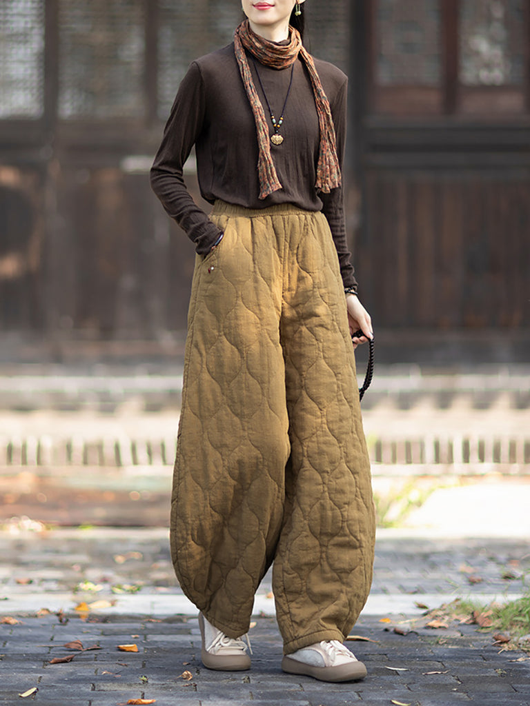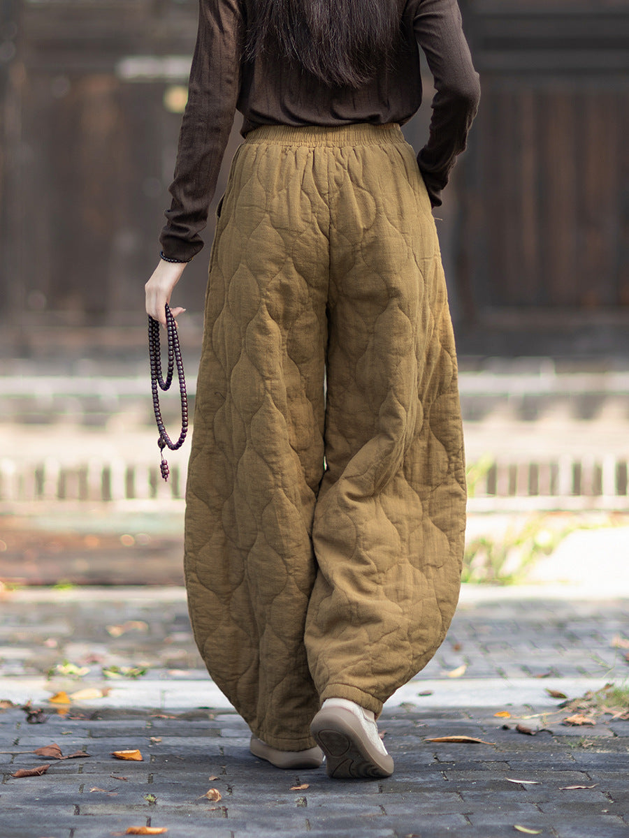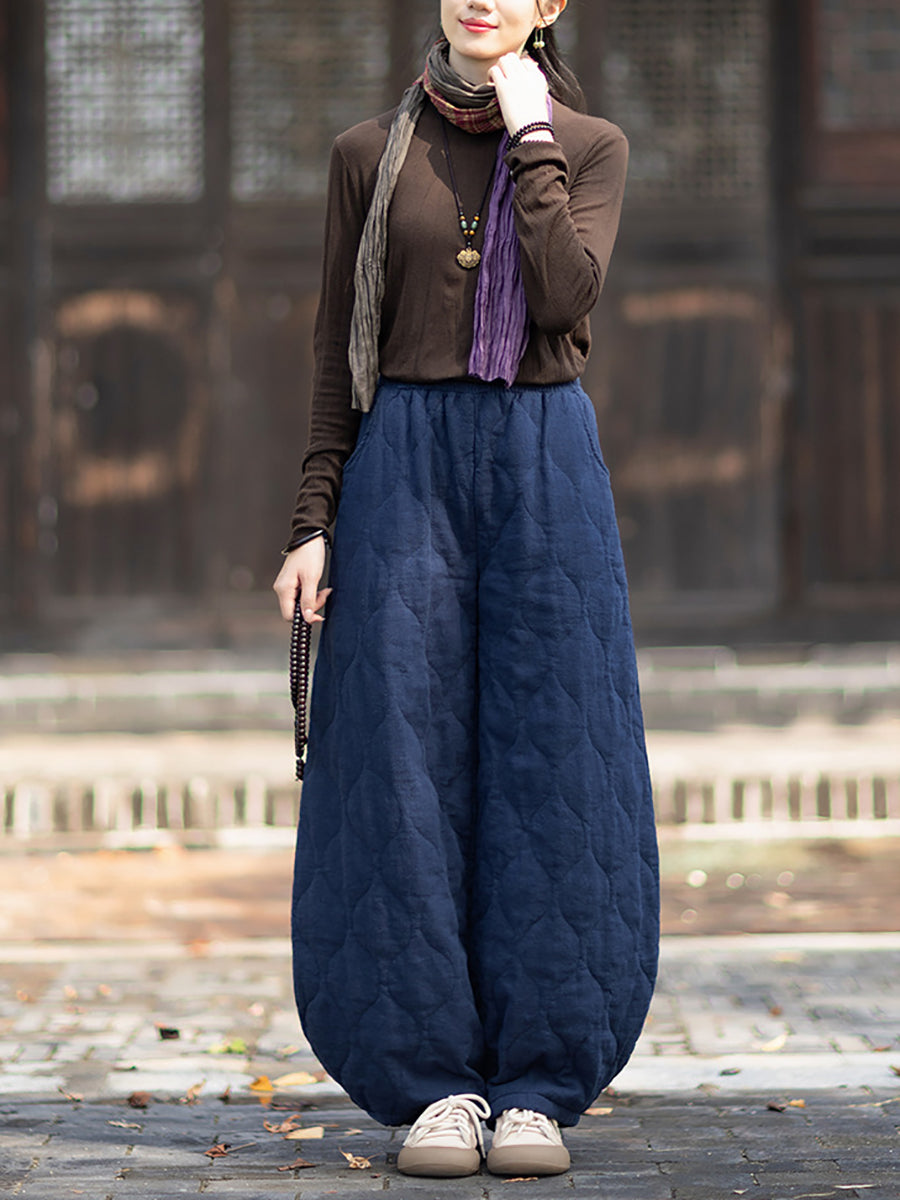 Women Winter Retro Pure Color Padded Bloomers