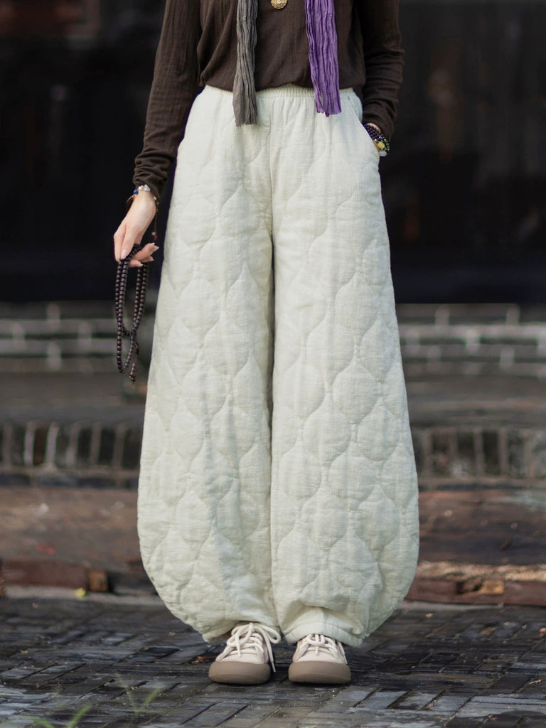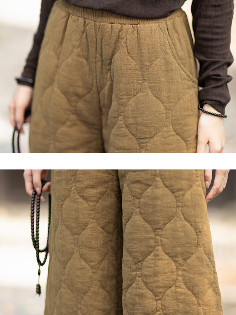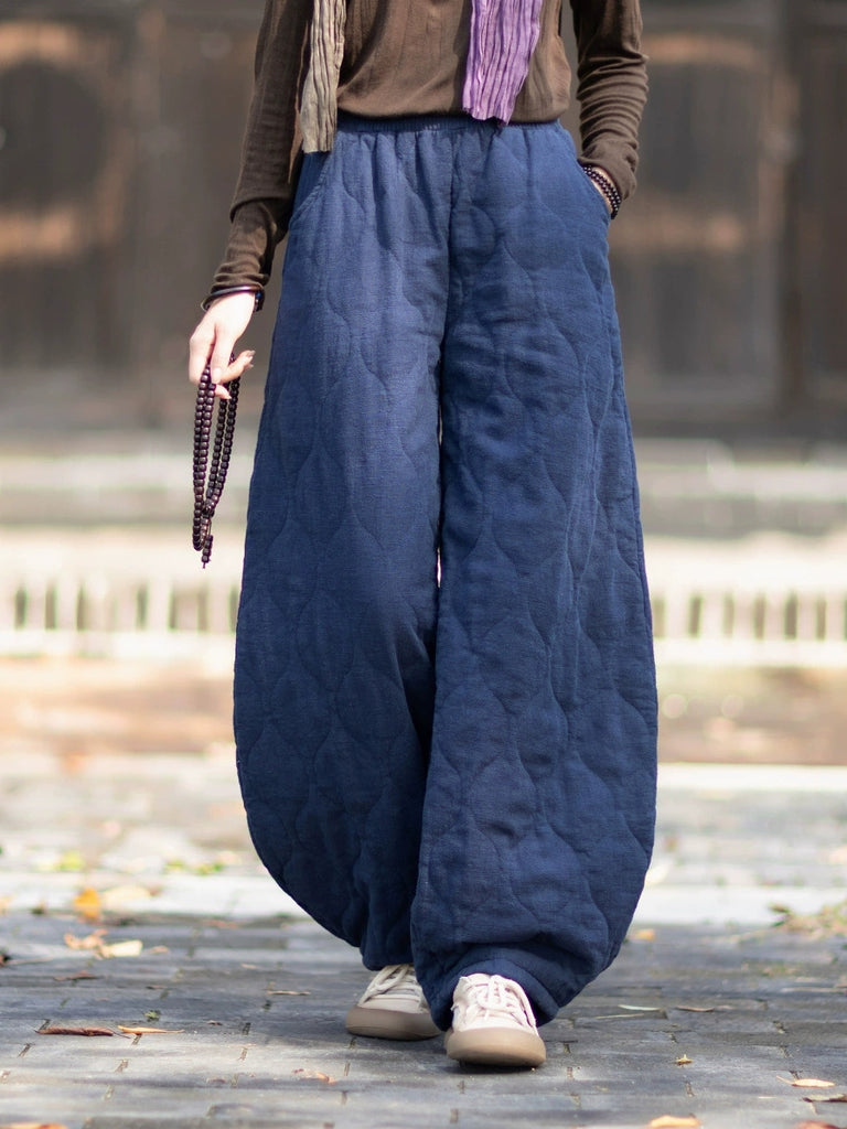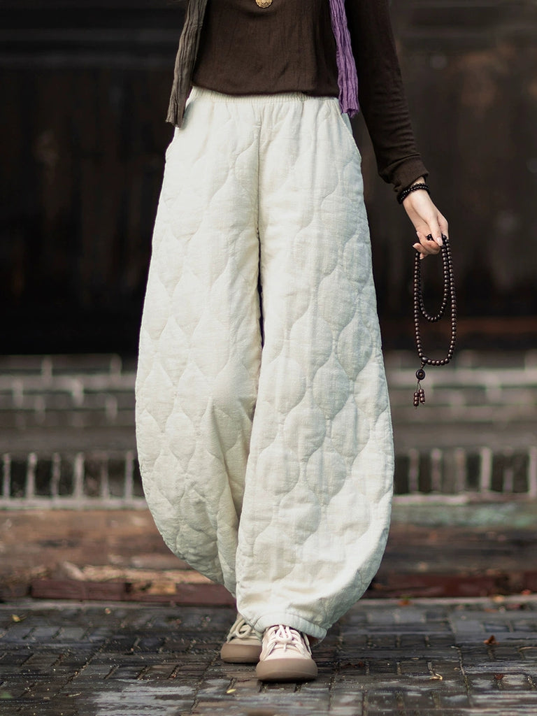 Women Winter Retro Pure Color Padded Bloomers