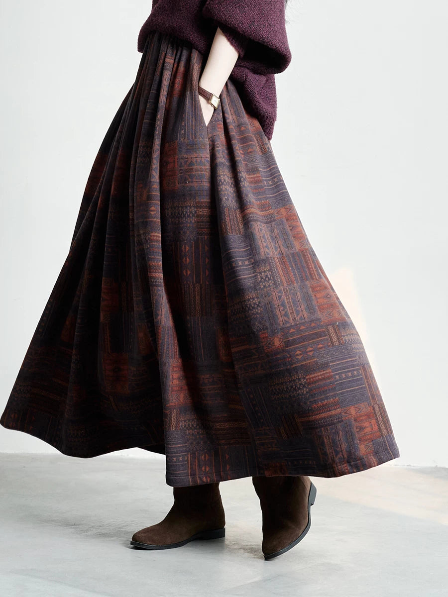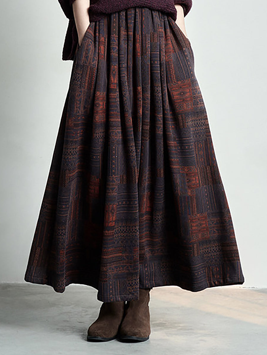 Women Bohemia Patchwork Pleated A-Shape Skirt