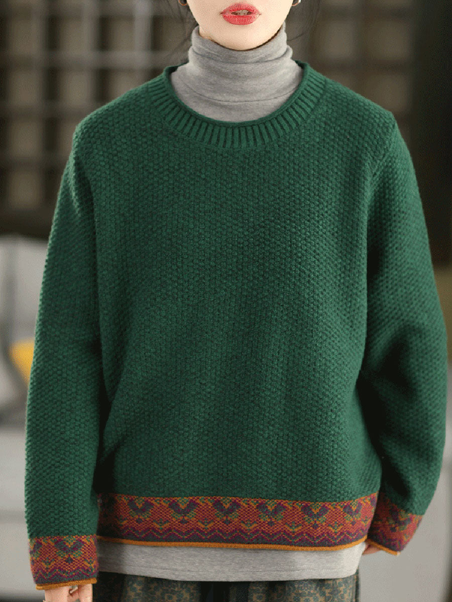 Women Autumn Ethnic Jacquard O-Neck Sweater