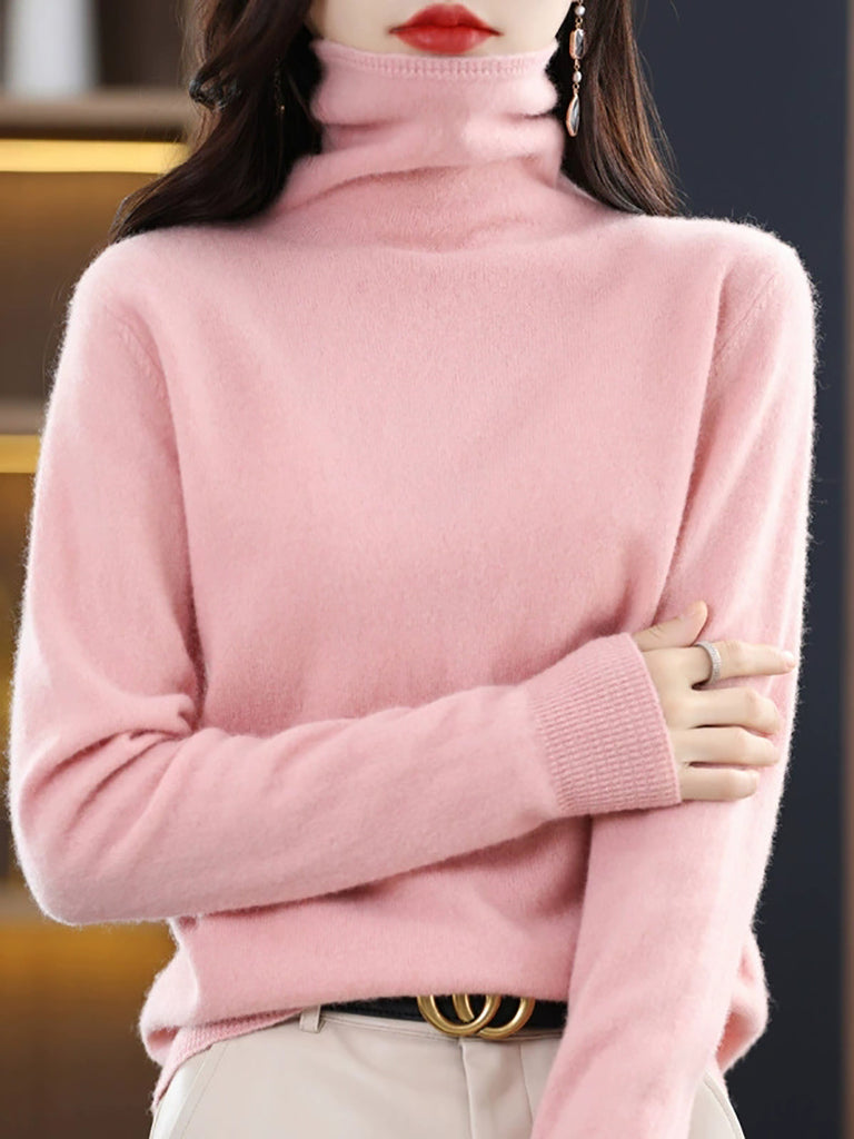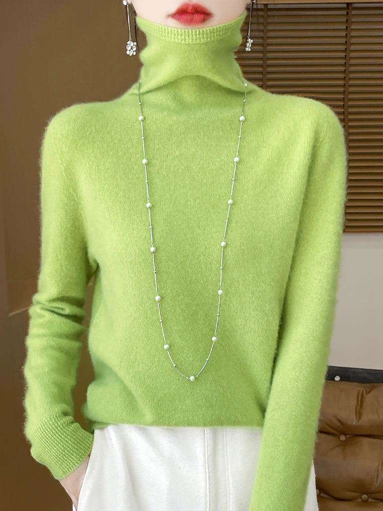 Women Autumn Pure Color Wool Turtleneck Sweater