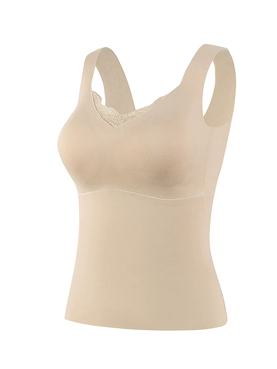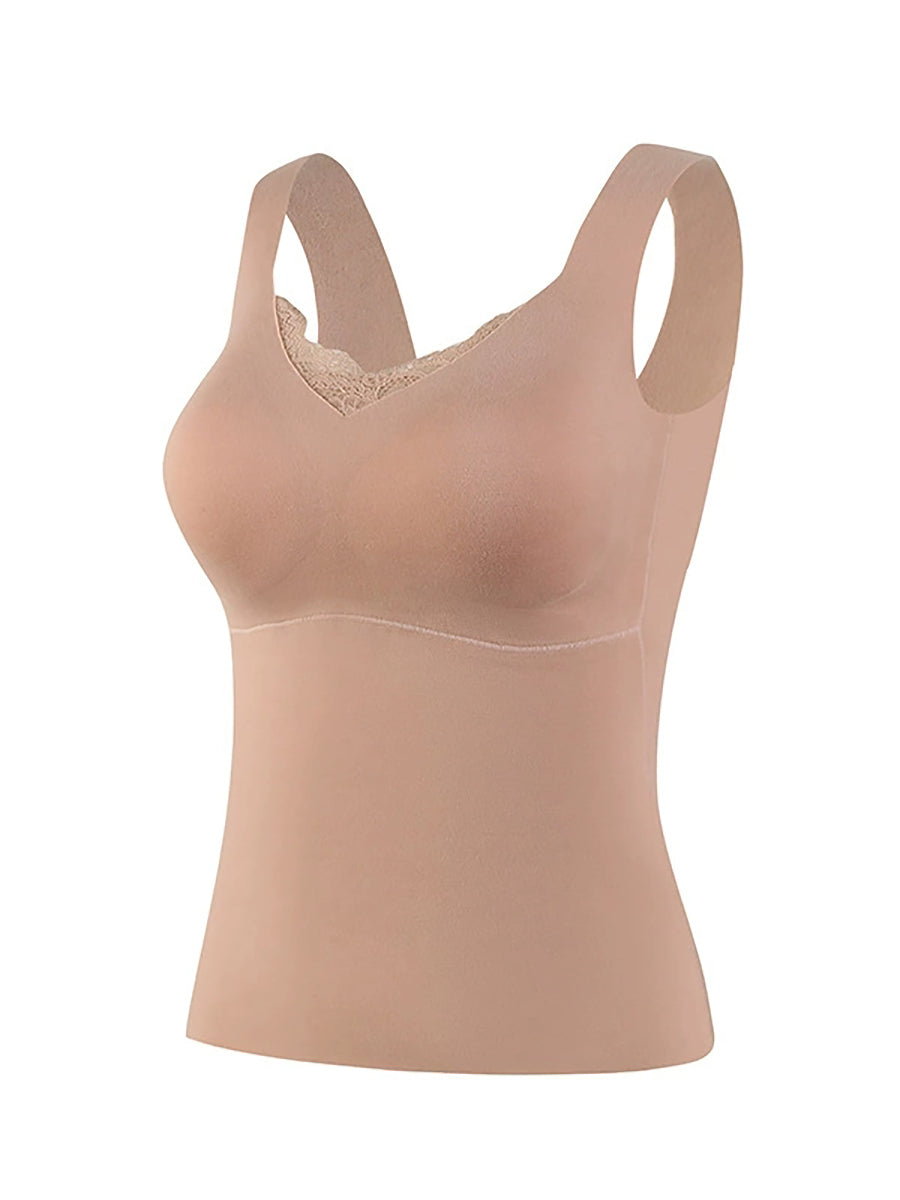 Women Autumn Warm Pure Color V-Neck Lace Base Vest