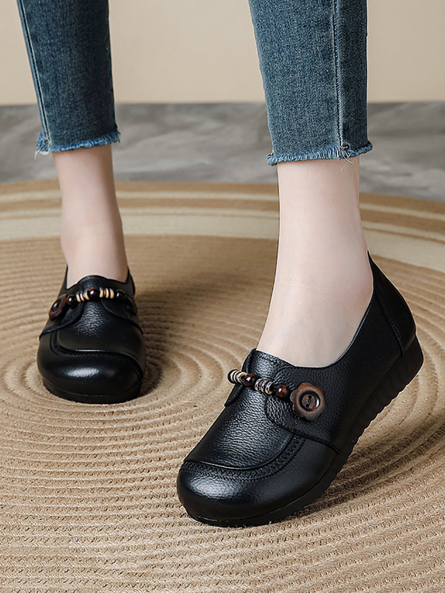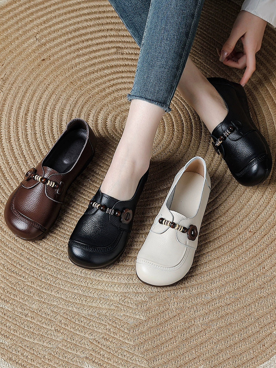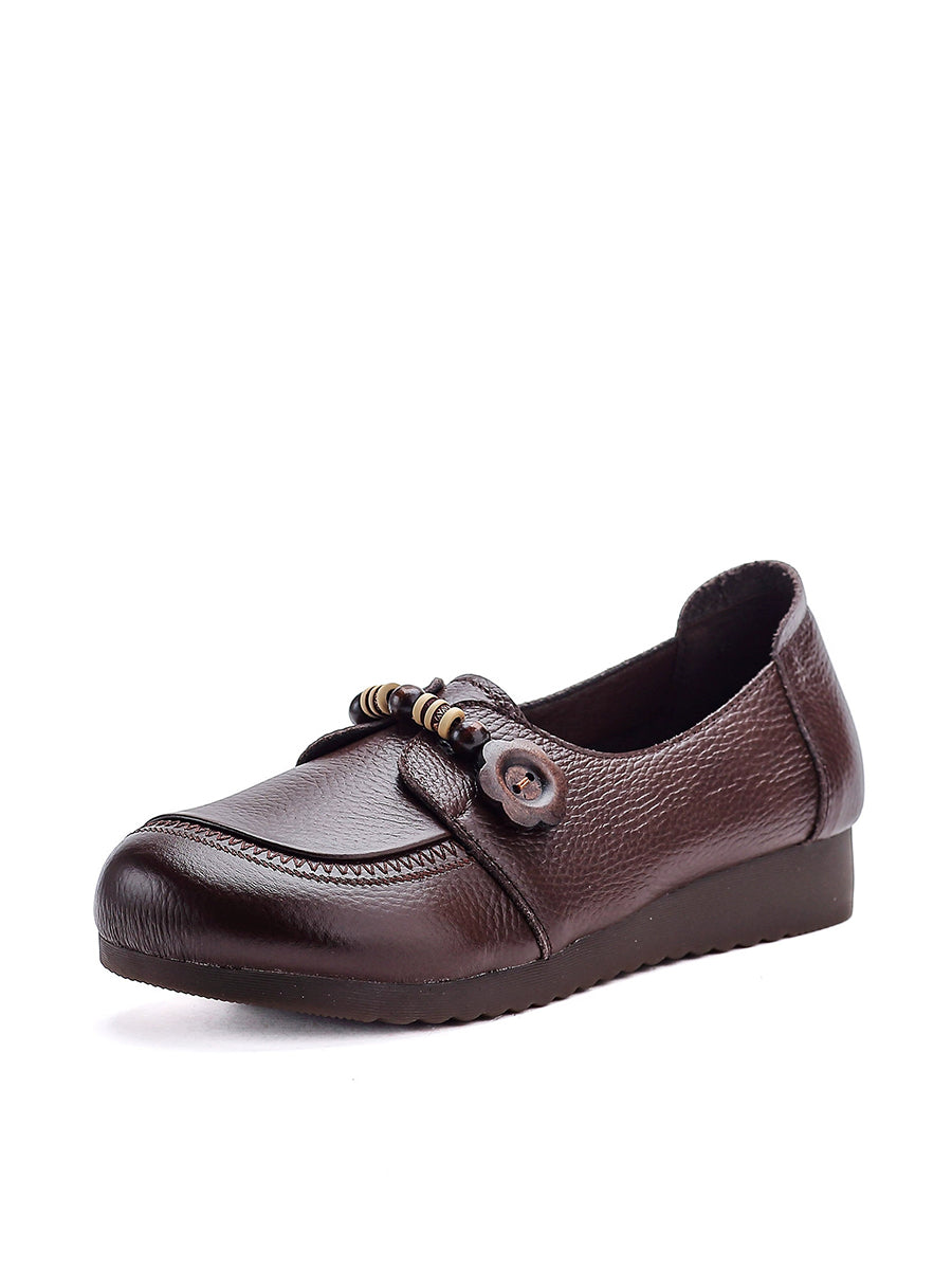 Women Retro Spring Genuine Leather Low Heel Shoes