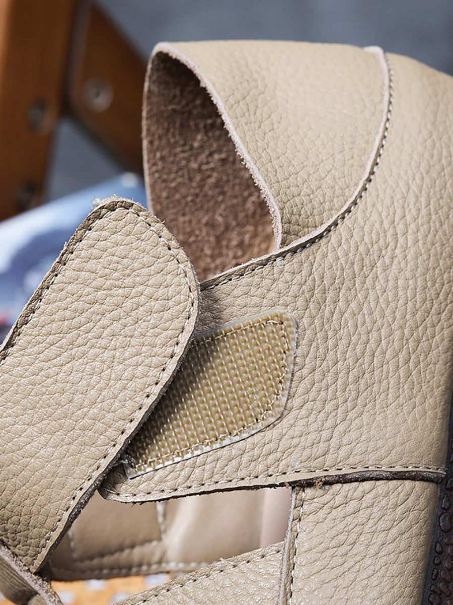Women Summer Pure Color Genuine Leather Spliced Sandals