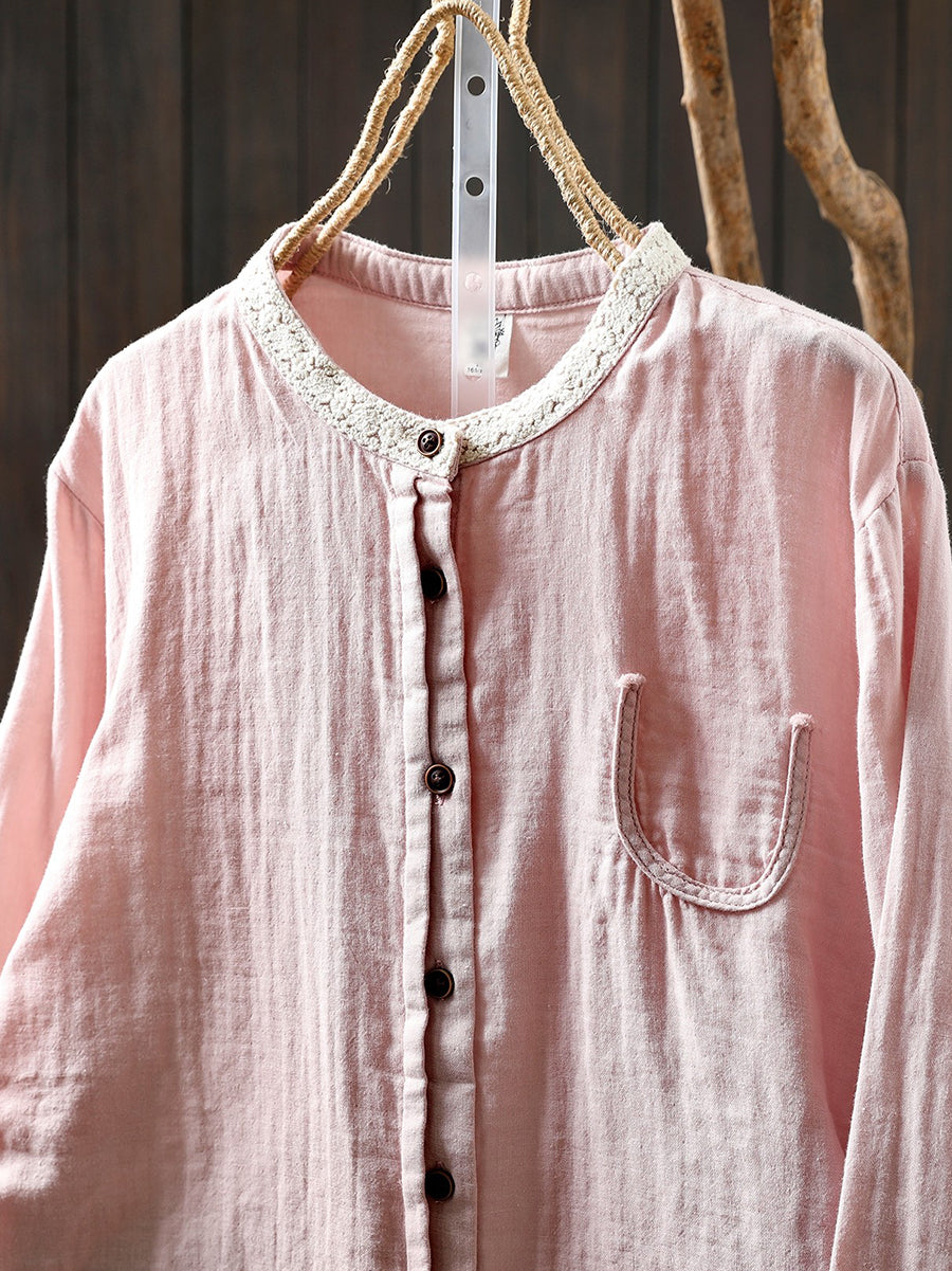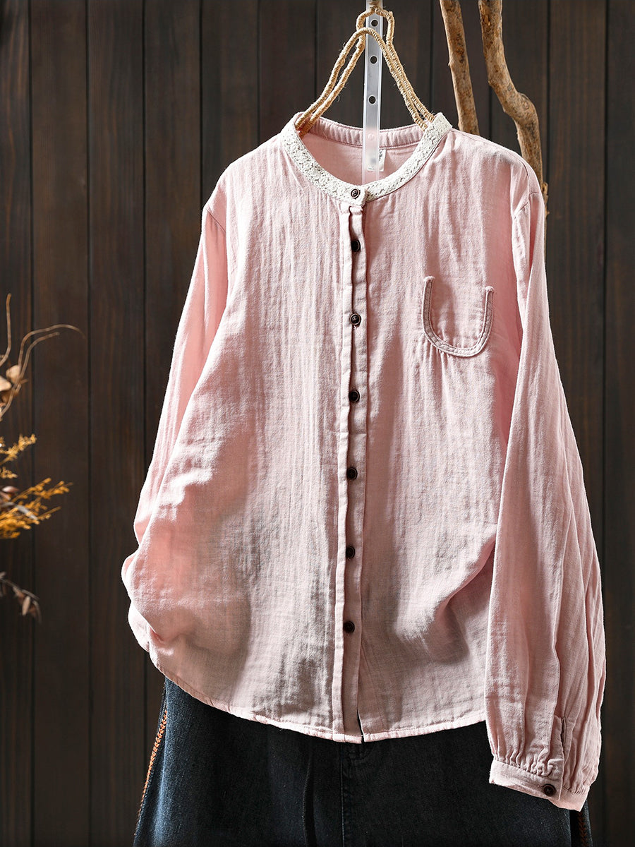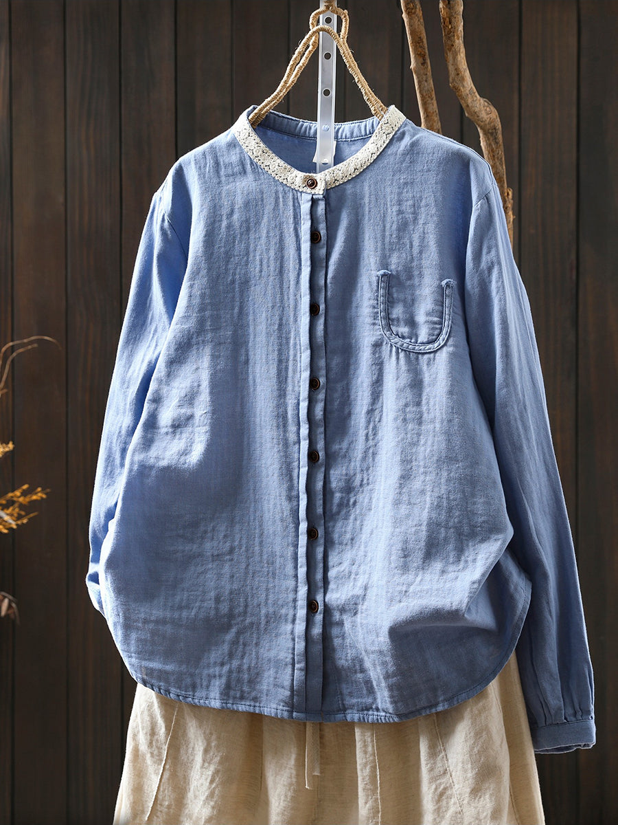 Women Spring Artsy Colorblock 100%Cotton Shirt