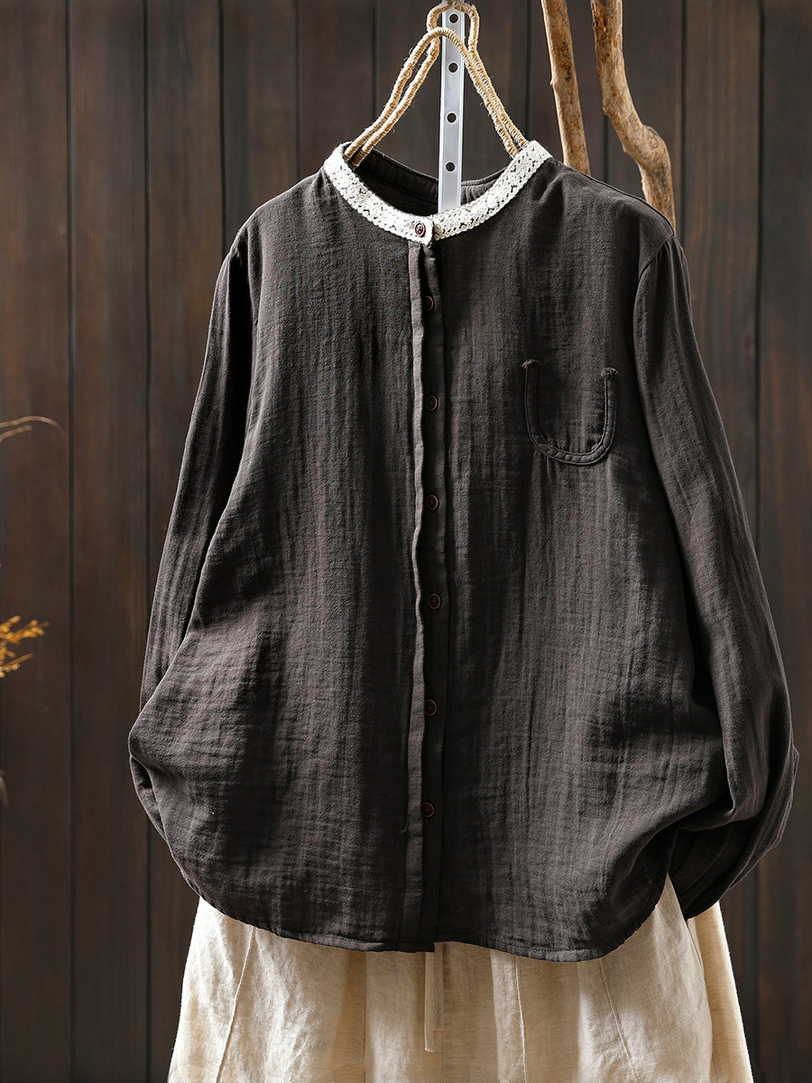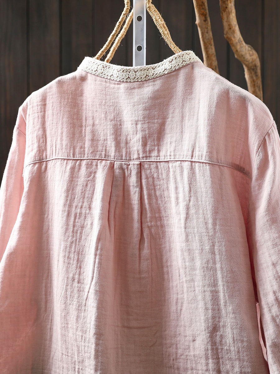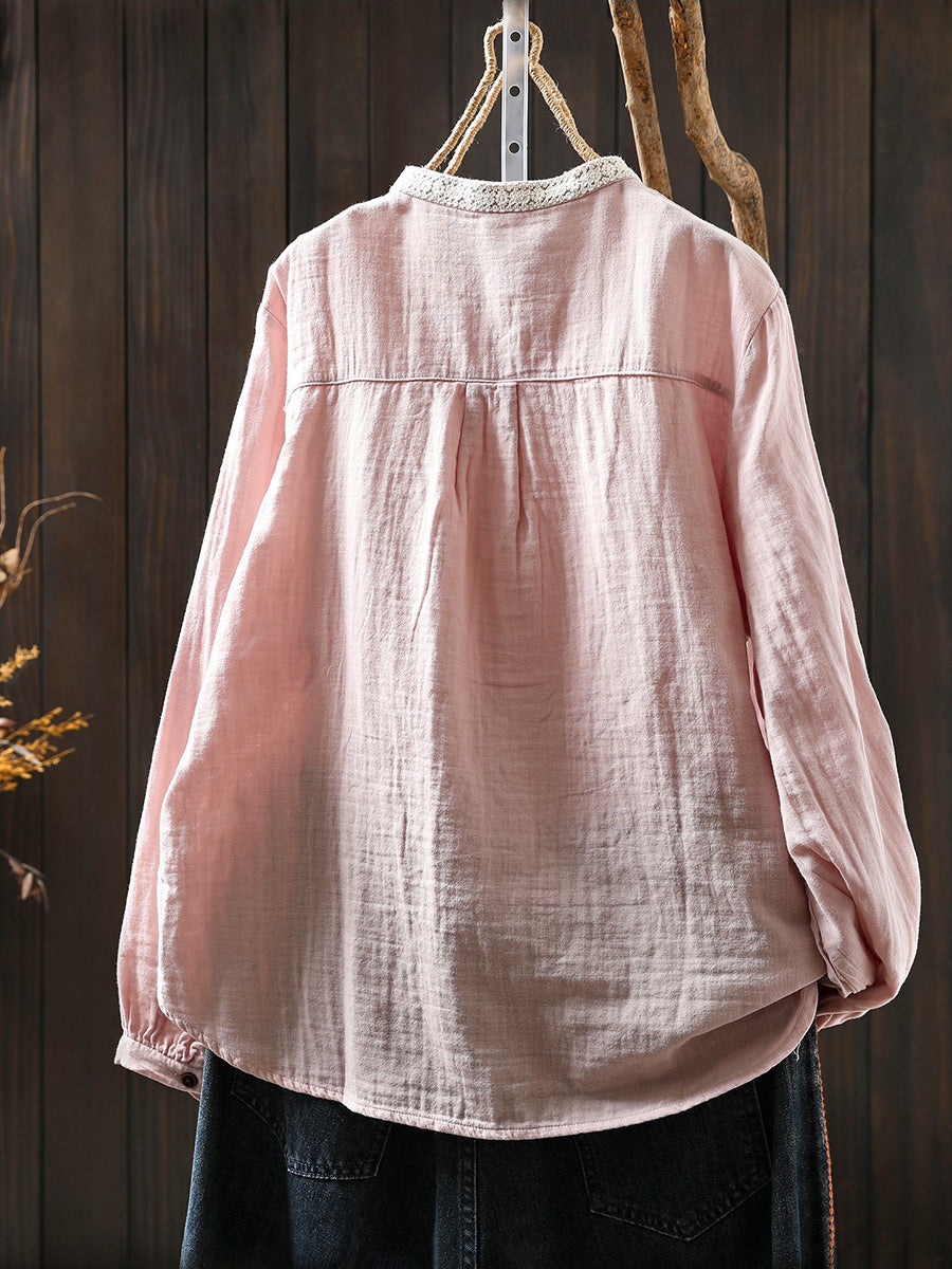 Women Spring Artsy Colorblock 100%Cotton Shirt