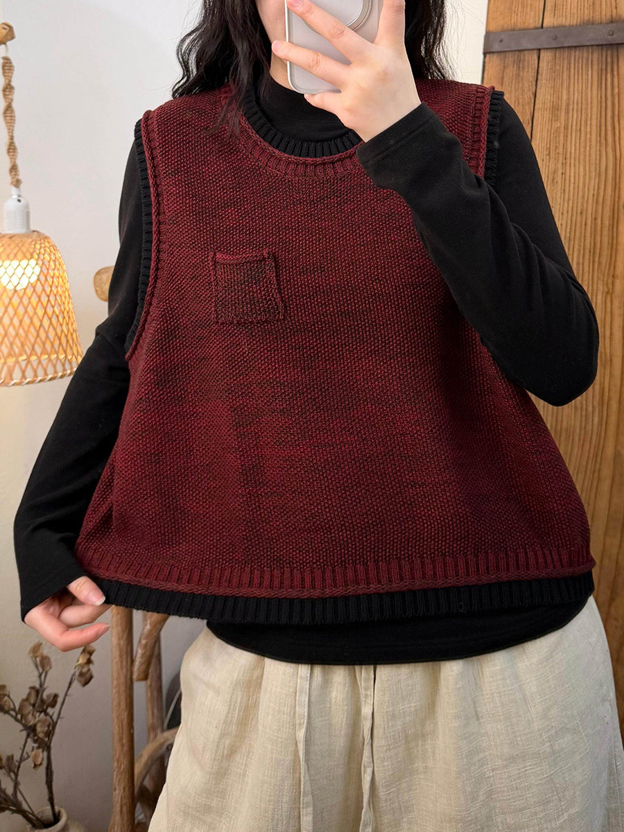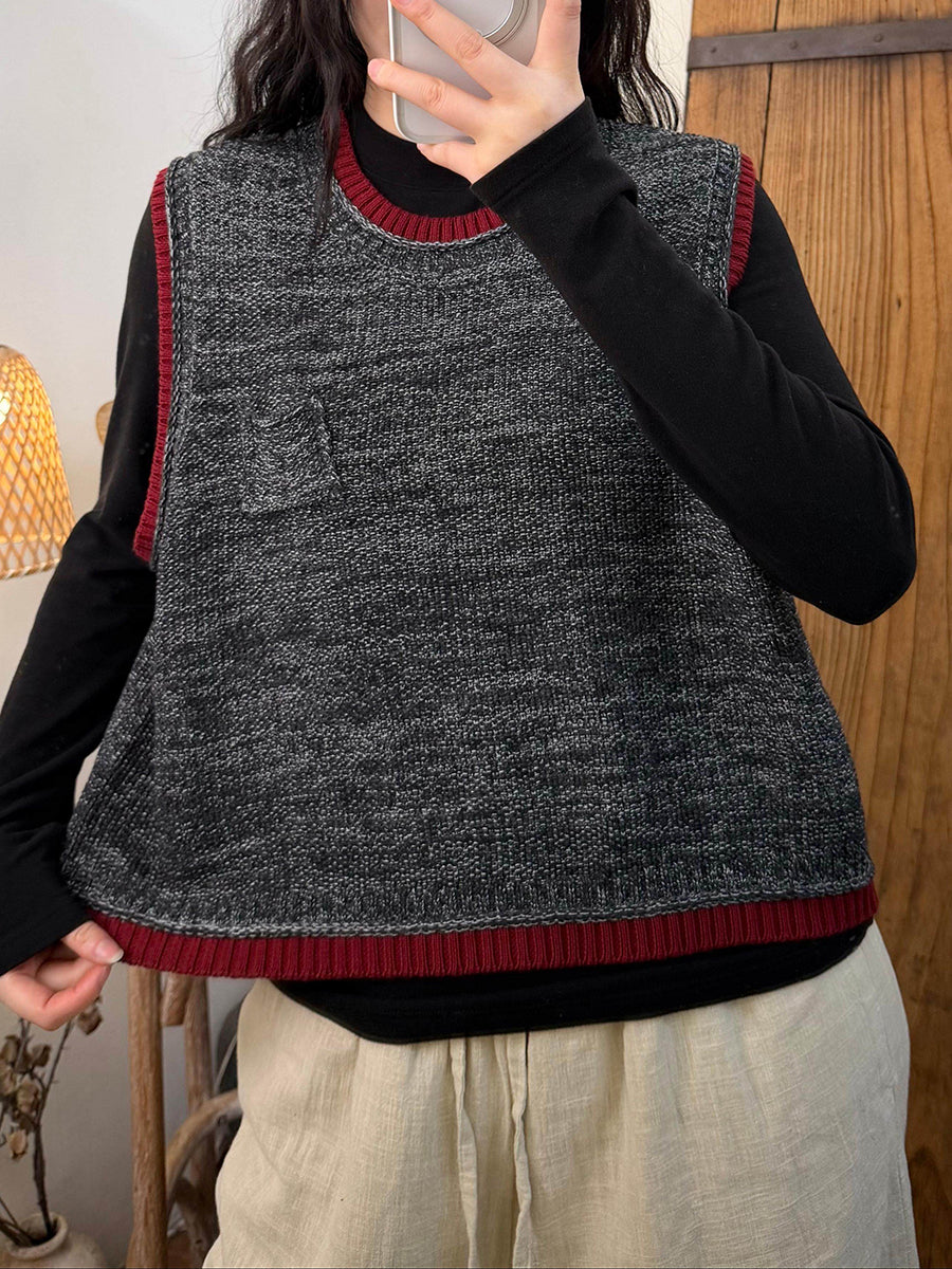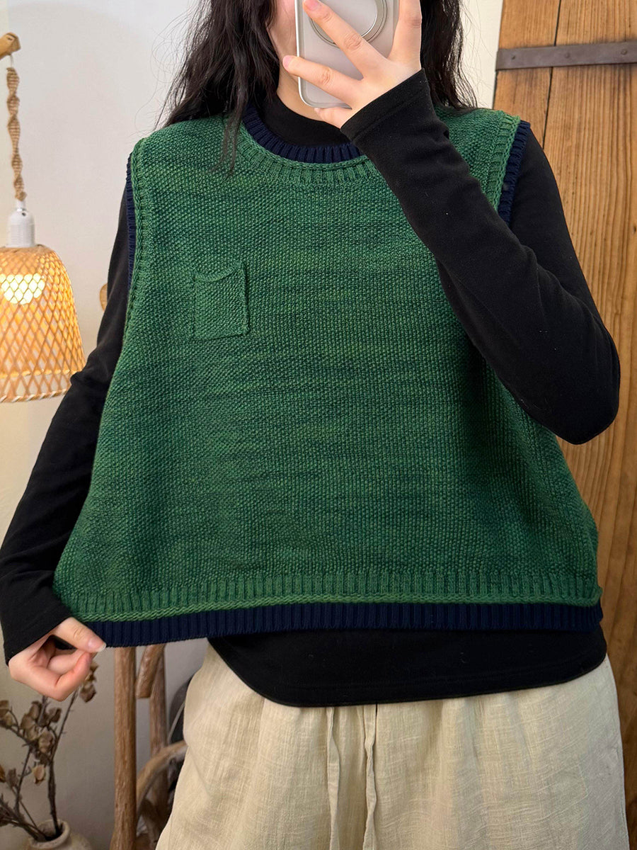 Women Spring Artsy O-Neck Colorblock Knitted Vest