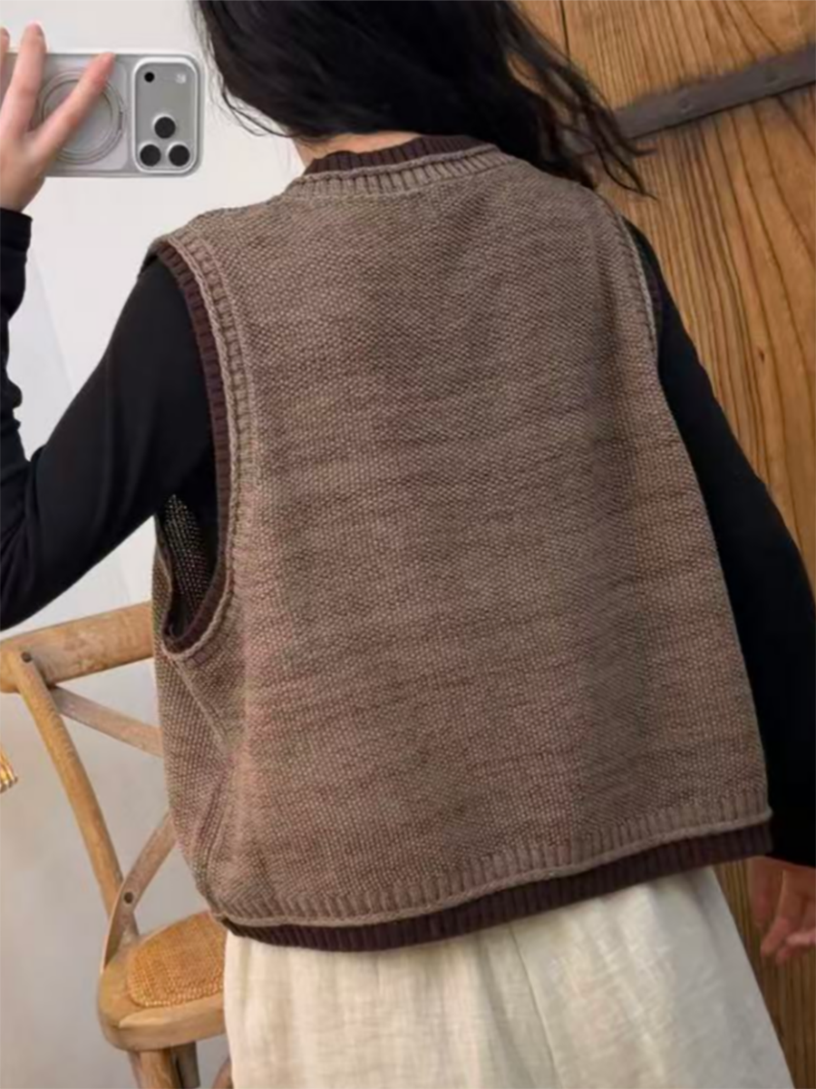 Crafted from pure cotton, this artsy vest features a sophisticated colorblock pattern that elevates any seasonal wardrobe. The relaxed O-neck silhouette delivers effortless style, while the thoughtfully designed color blocking creates visual interest and dimension. Versatile across spring and autumn, this piece seamlessly transitions between seasons, making it an essential layering staple for the discerning dresser seeking both comfort and contemporary aesthetic appeal.