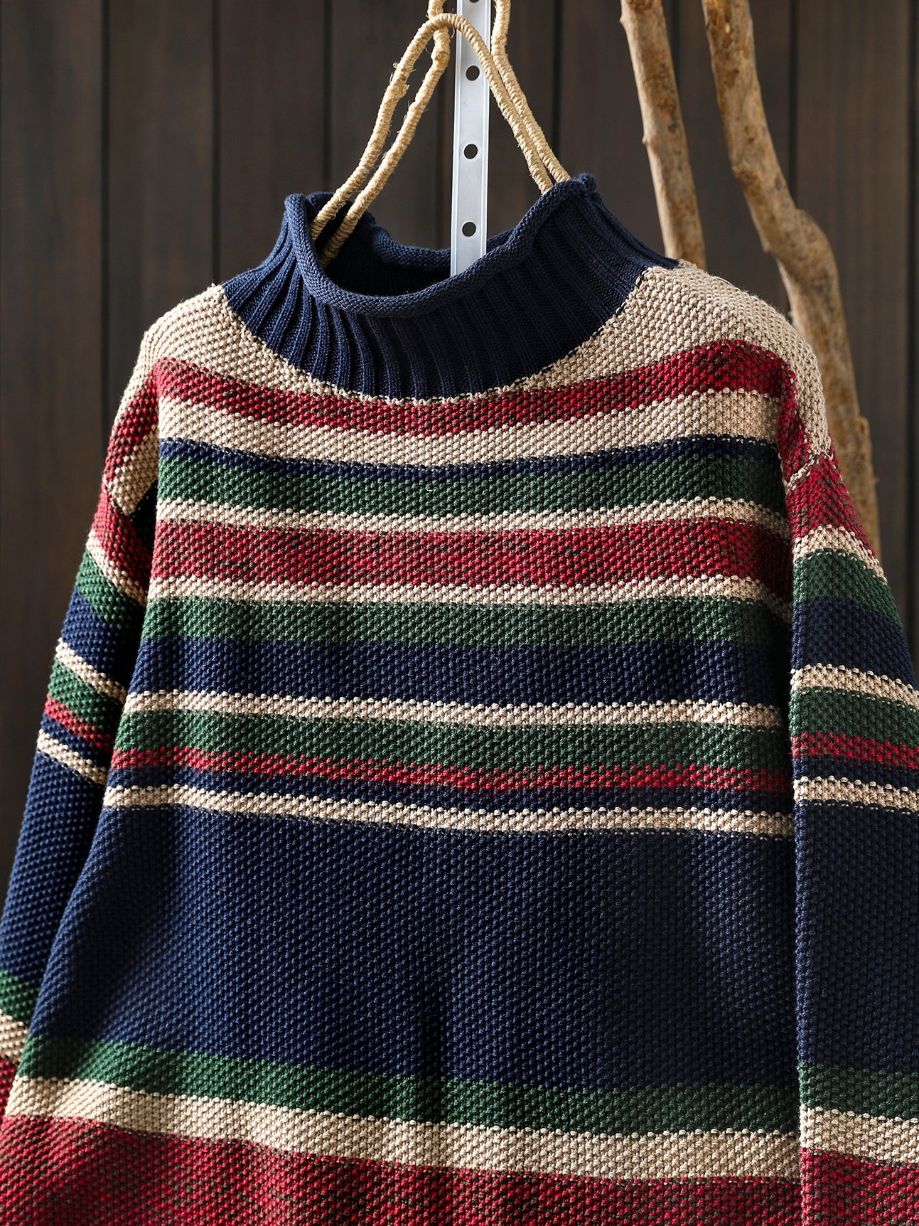 Crafted from a premium blend of 55% acrylic and 45% cotton, this half-turtleneck sweater delivers warmth and breathability through the cooler months. The artsy colorblock stripe pattern adds visual interest to your seasonal wardrobe, while the full-length regular sleeves provide classic coverage. Designed for autumn and winter wear, this piece balances comfort with contemporary style.