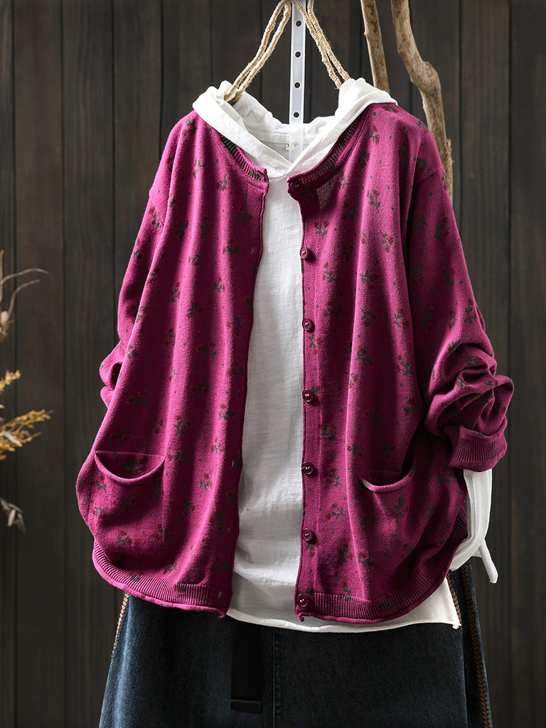 Women Autumn Artsy Floral Knitted O-Neck Sweater