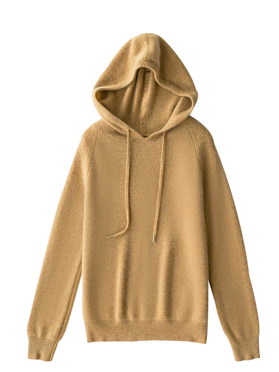 Women Autumn Casual Pure Color Hooded Sweater