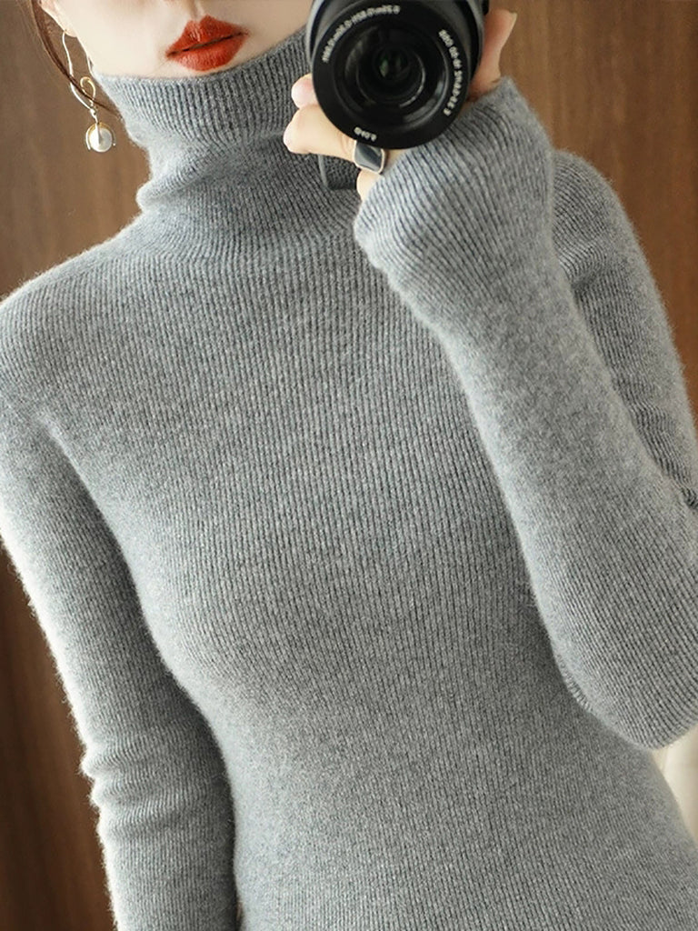 Women Autumn Casual Pure Color Knitted Turtleneck Sweater
