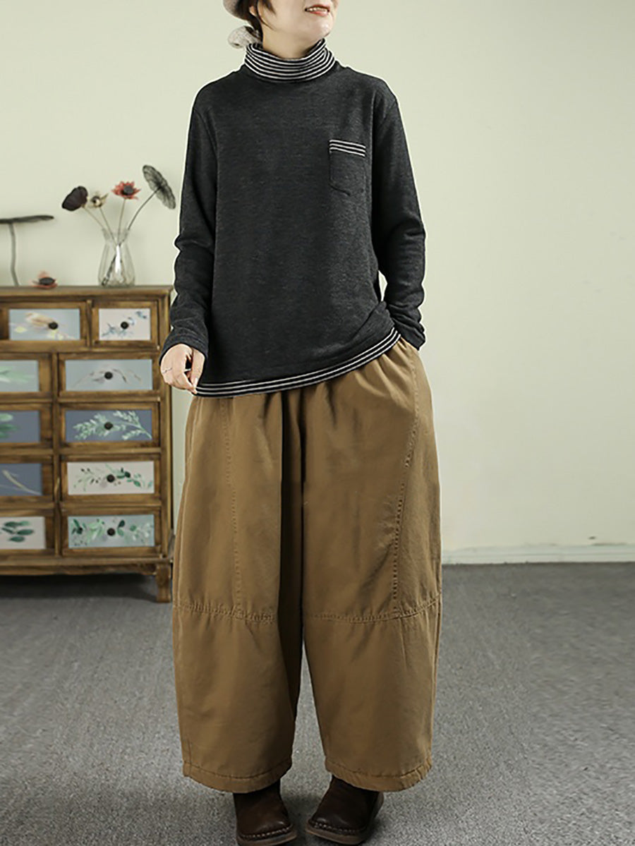 Crafted from a premium blend of 50% polyester, 40% rayon, and 10% spandex, this winter essential combines durability with exceptional stretch and comfort. The classic stripe pattern pairs seamlessly with a cozy turtleneck collar, while full-length regular sleeves provide complete coverage. Lined with soft fleece for enhanced warmth, this casual blouse transitions effortlessly from autumn through winter, making it an indispensable layering piece for cooler seasons.