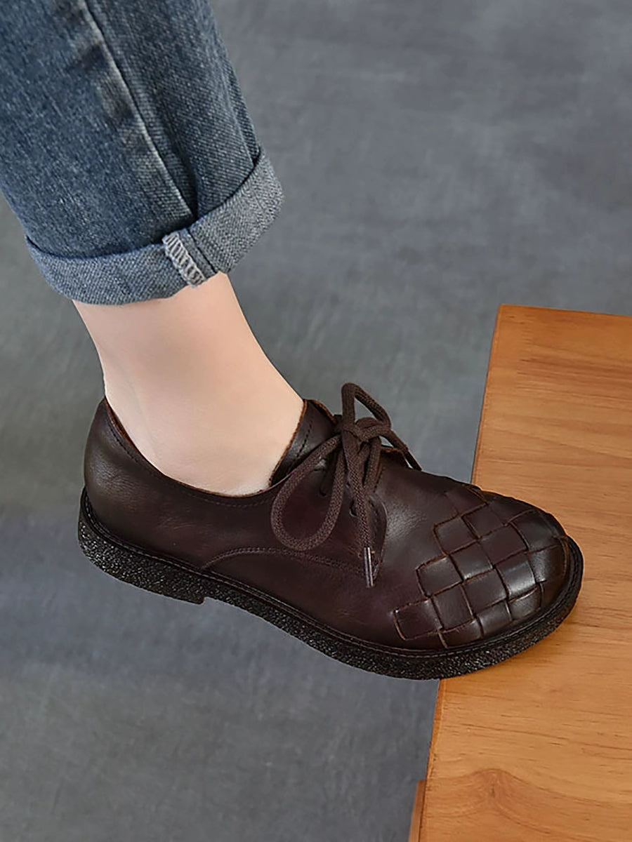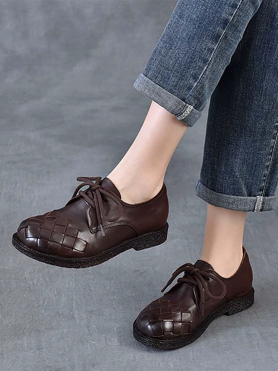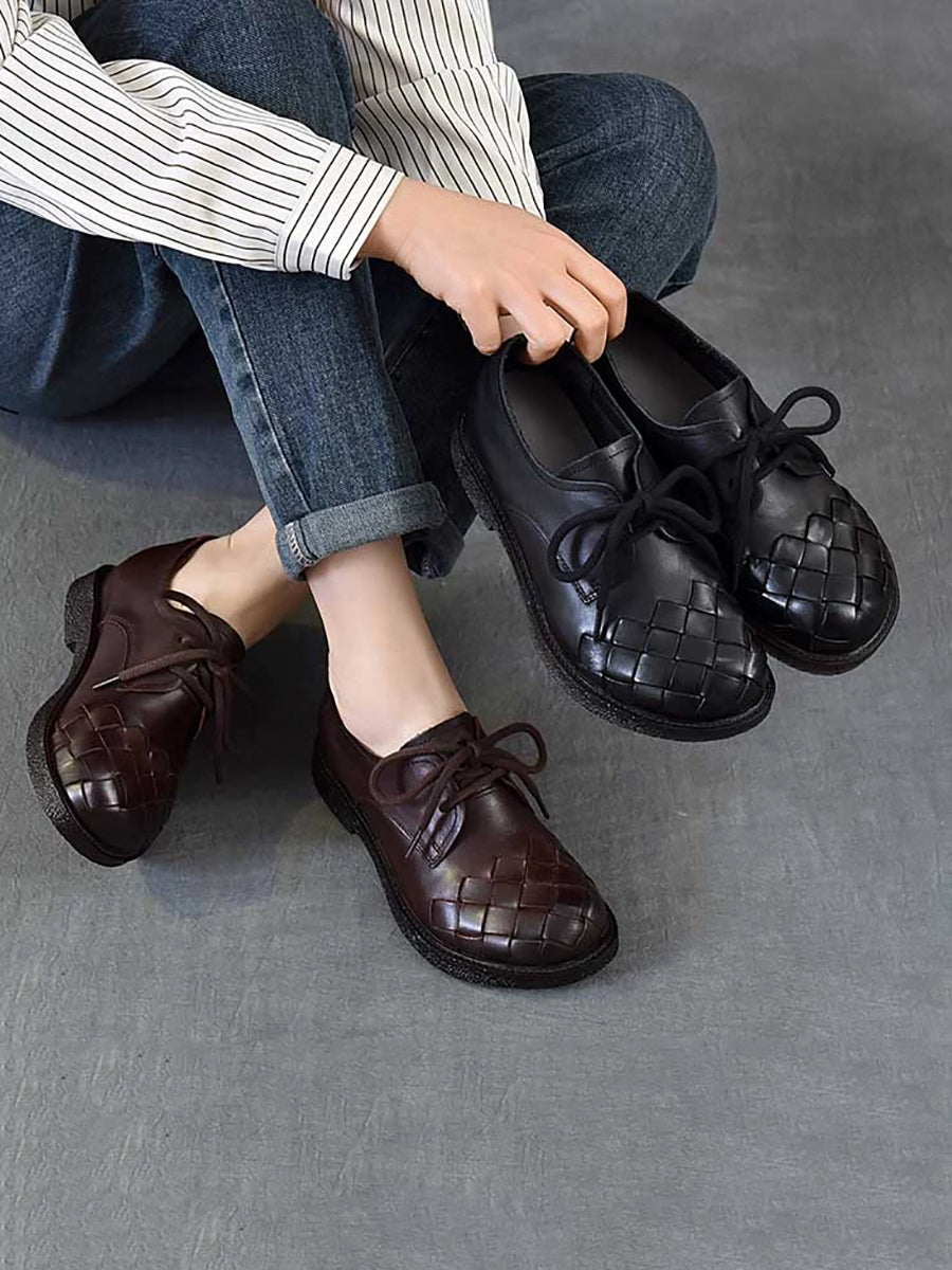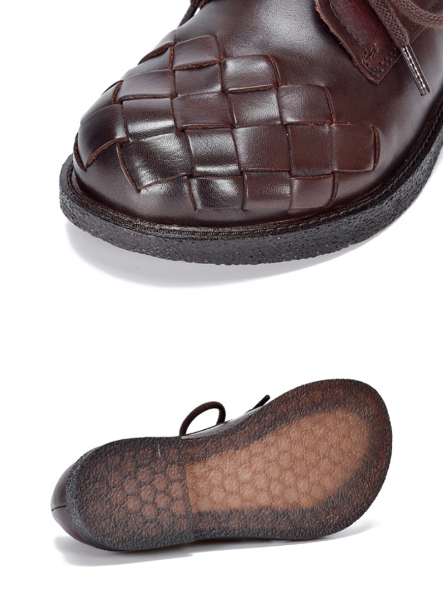 Women Vintage Genuine Leather Weave Low Heel Shoes