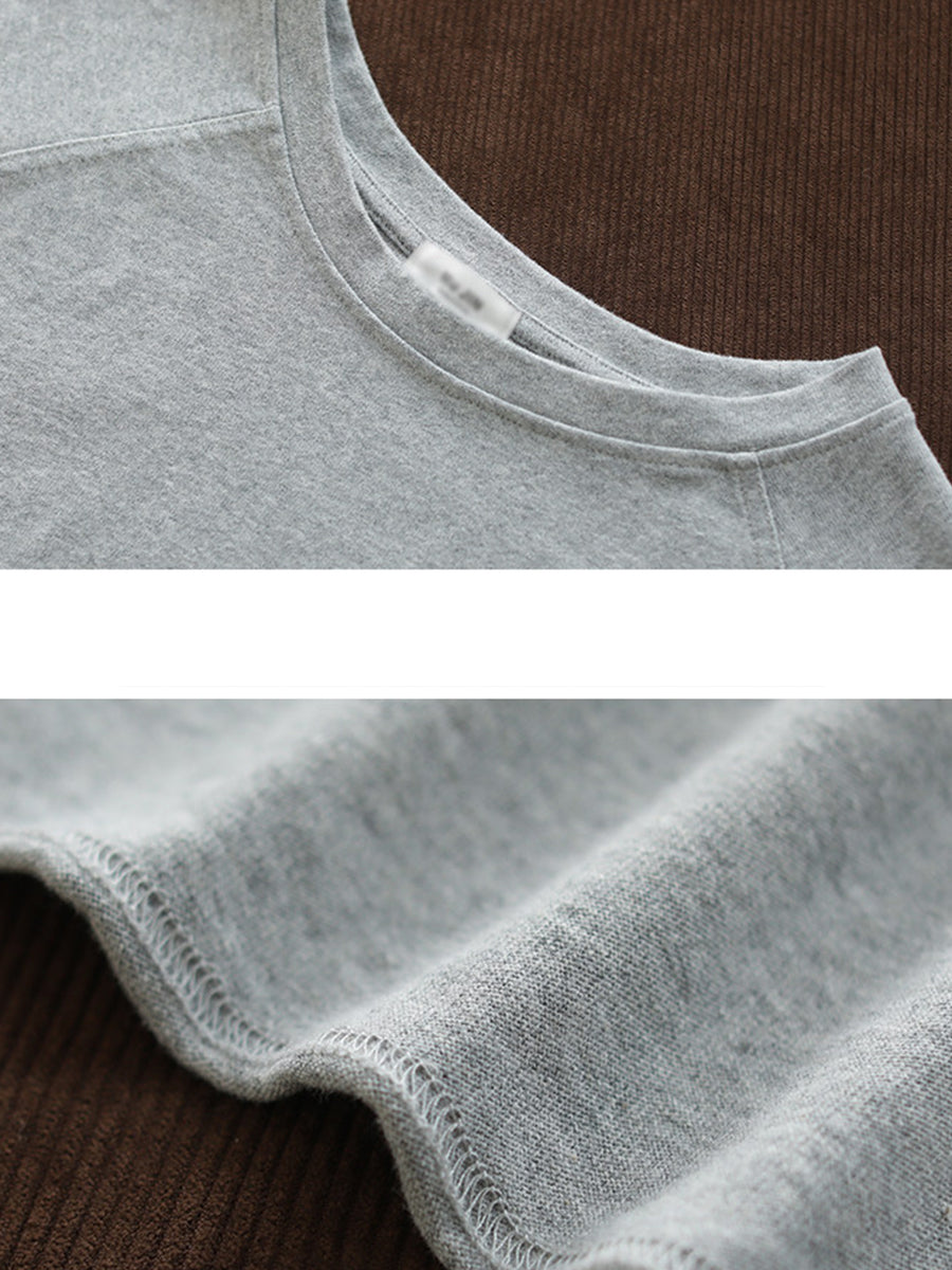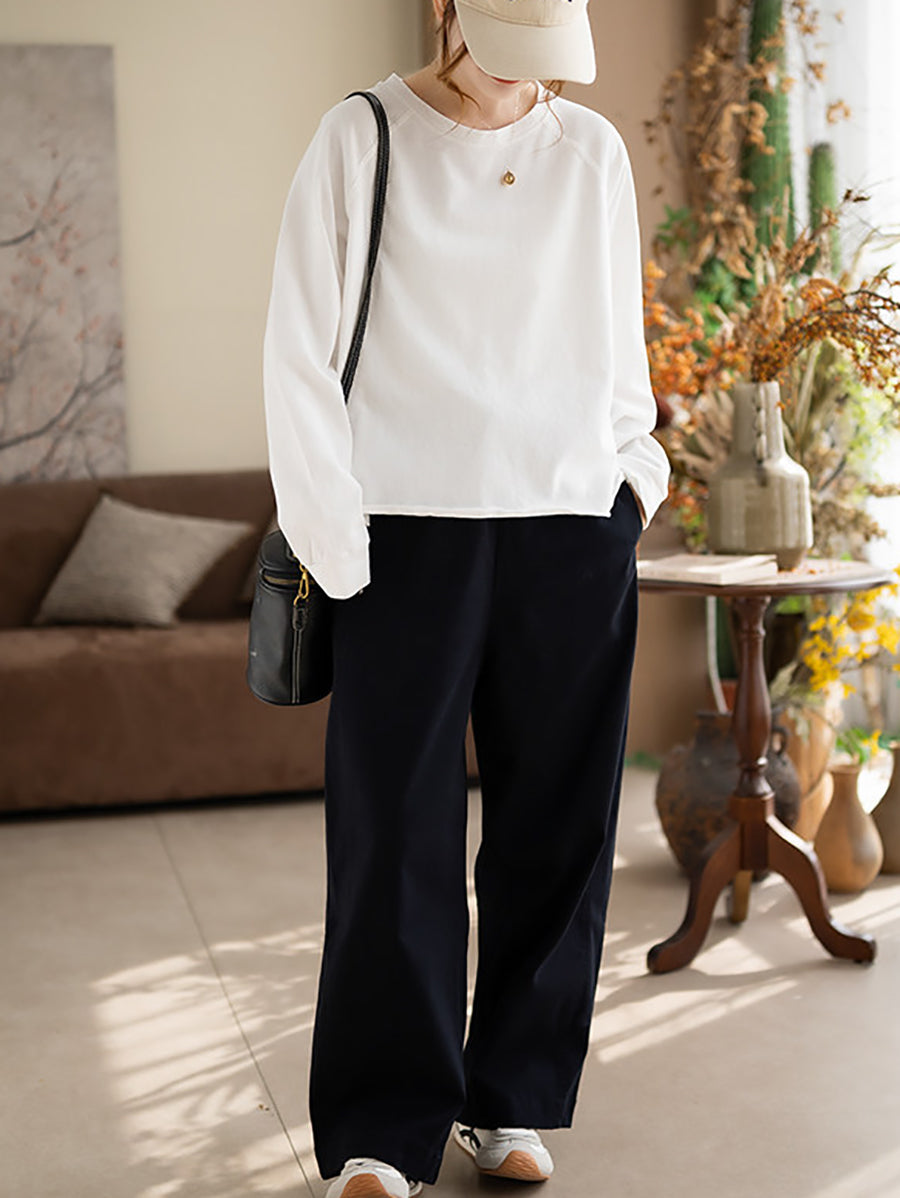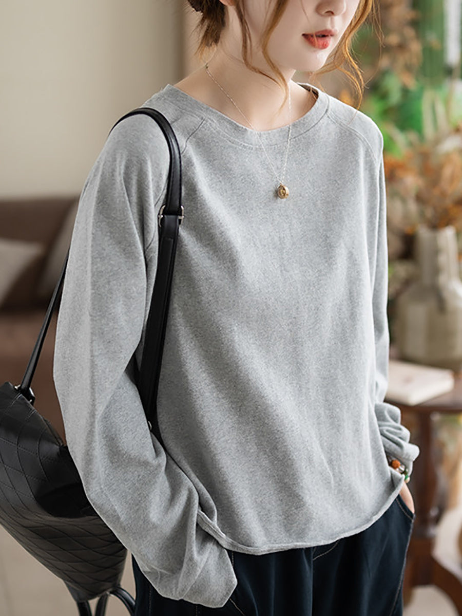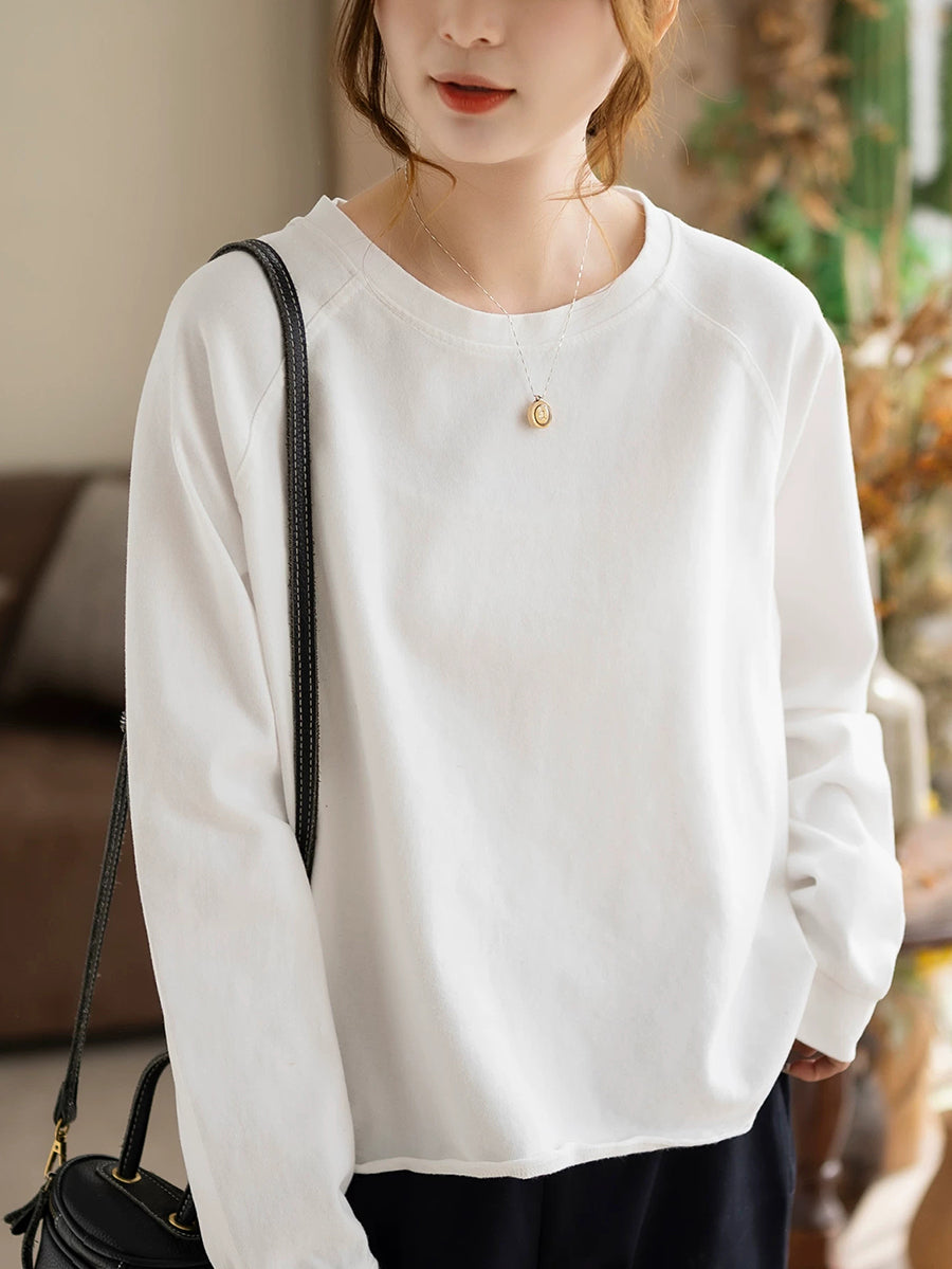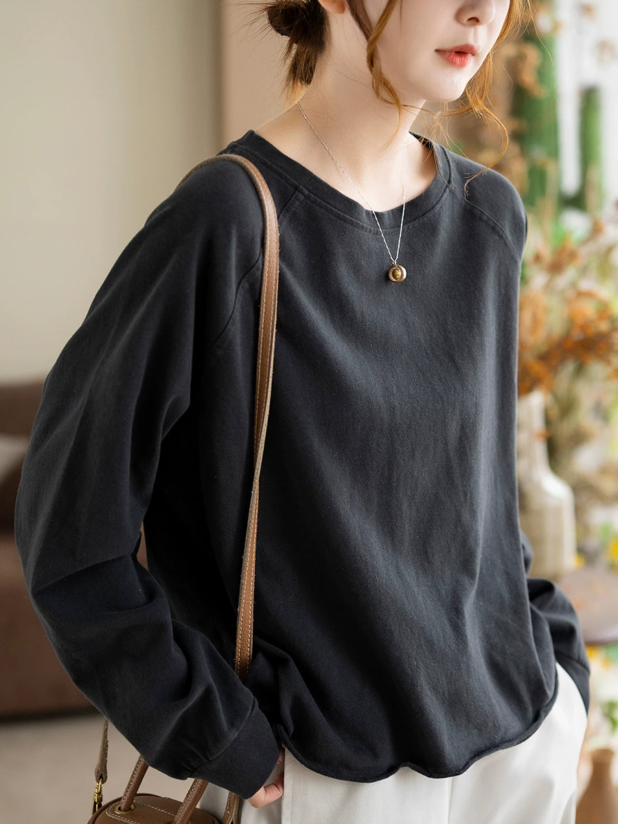 Women Artsy Spring Pure Color O-Neck Cotton Blouse