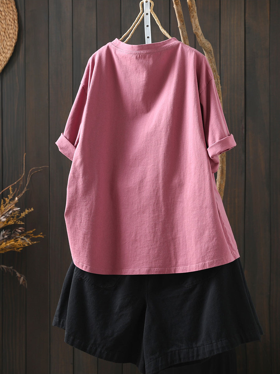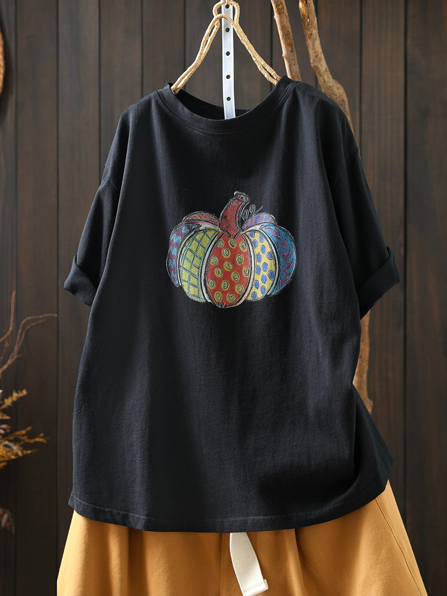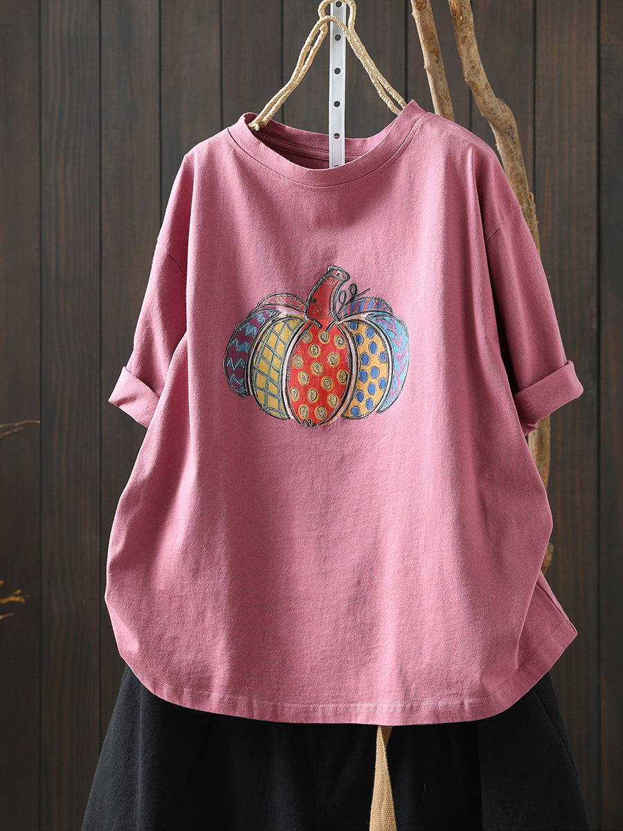 Women Summer Artsy Pumpkin Cotton Shirt