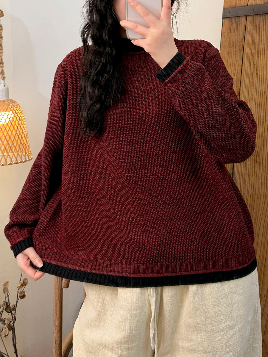 Women Autumn Artsy Colorblock Turtleneck Knitted Sweater