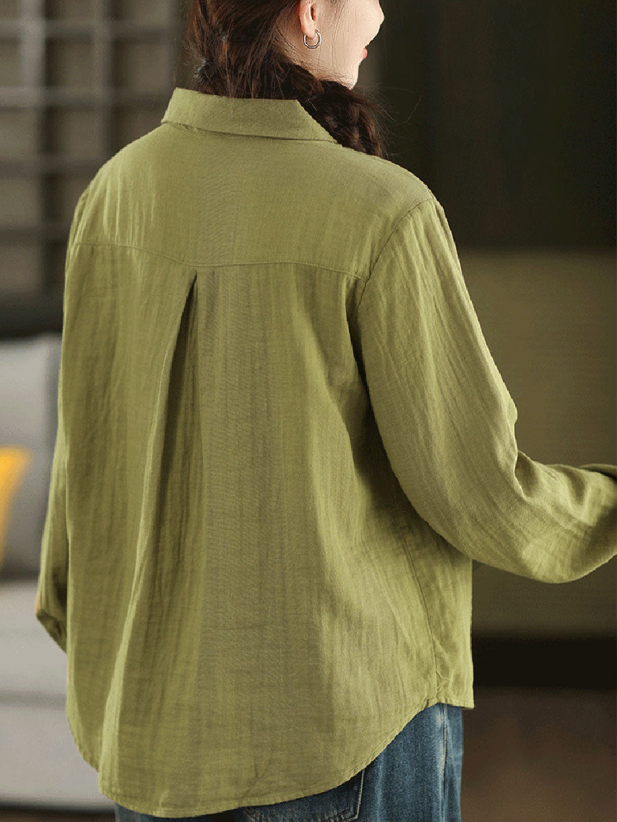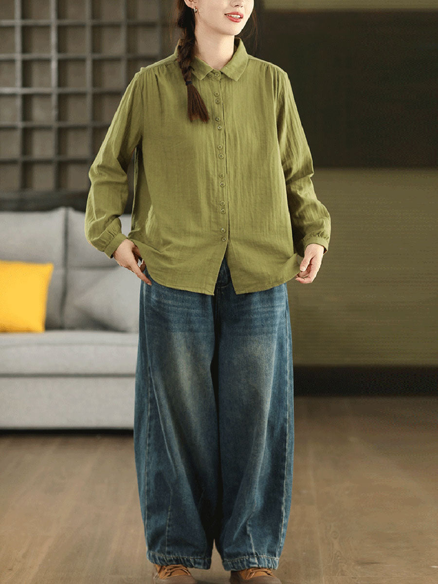 Women Autumn Artsy Pure Color 100%Cotton Shirt