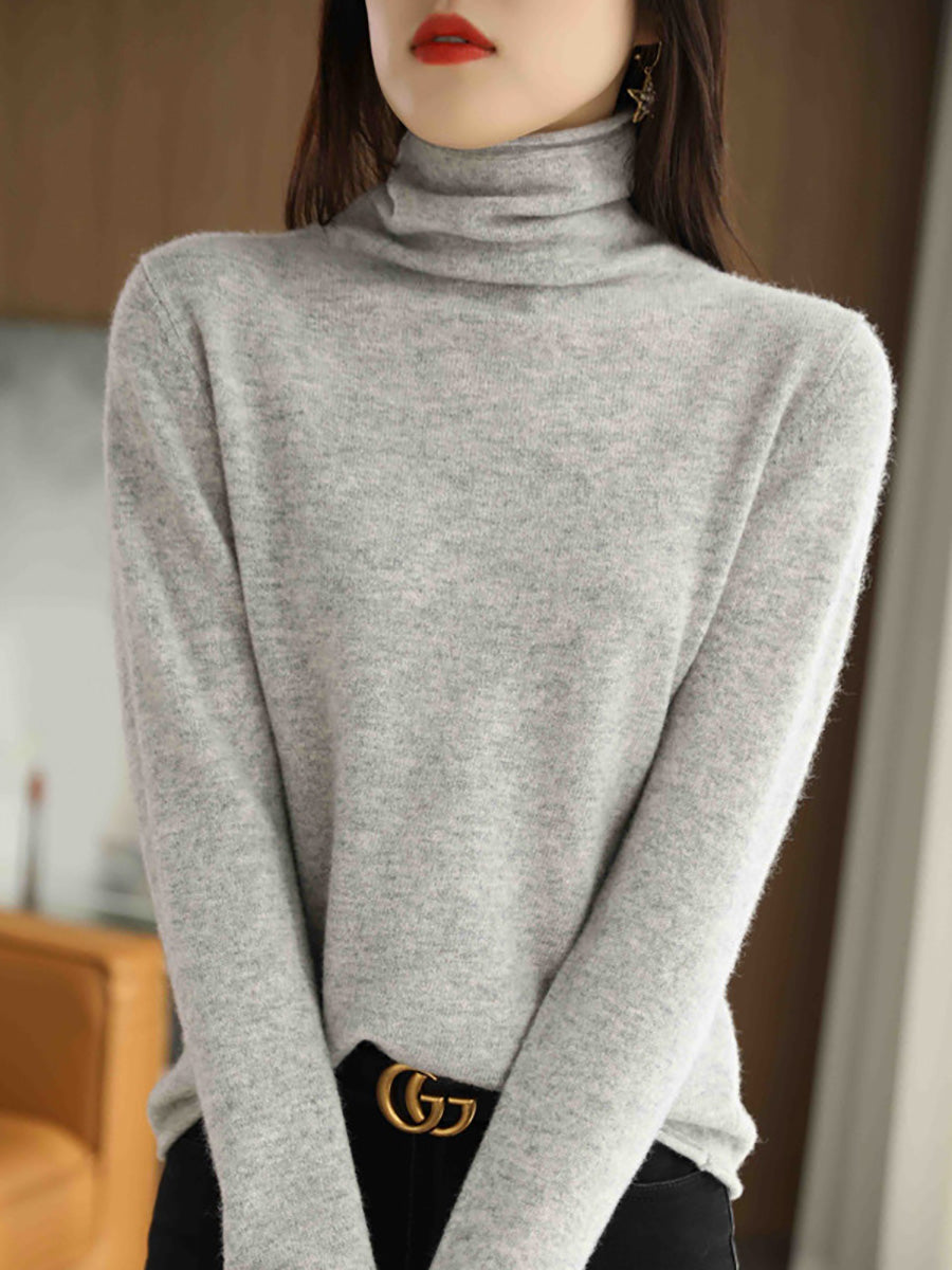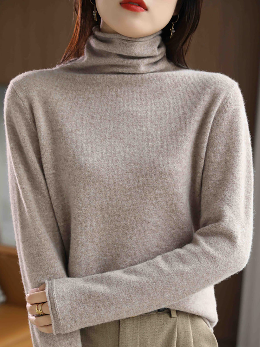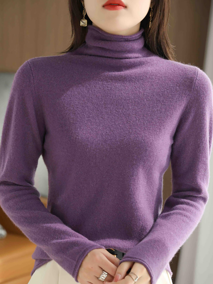 Women Autumn Artsy Pure Color Wool Turtleneck Sweater
