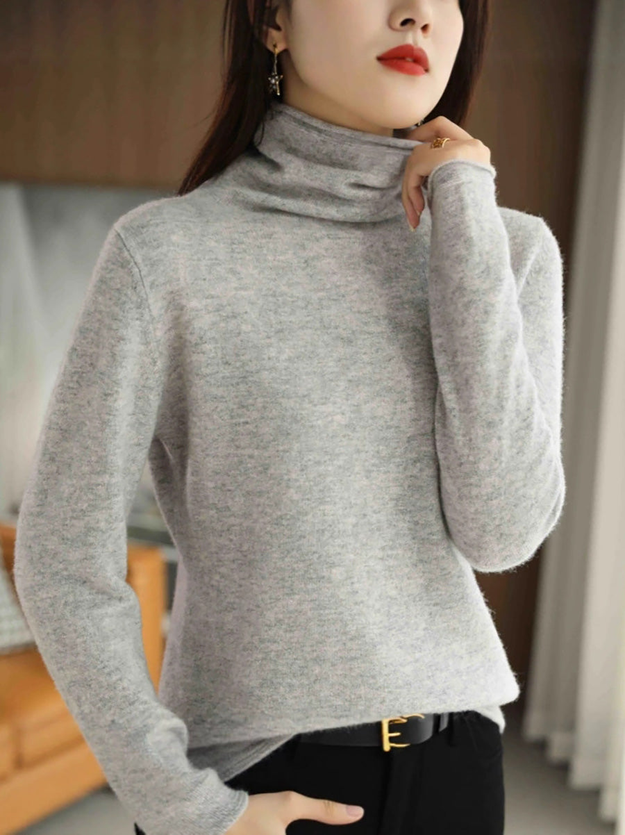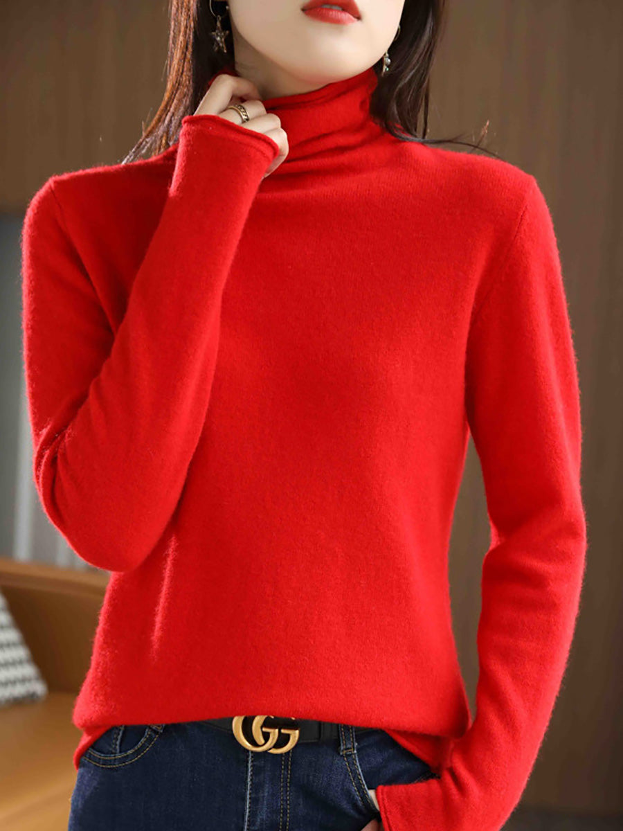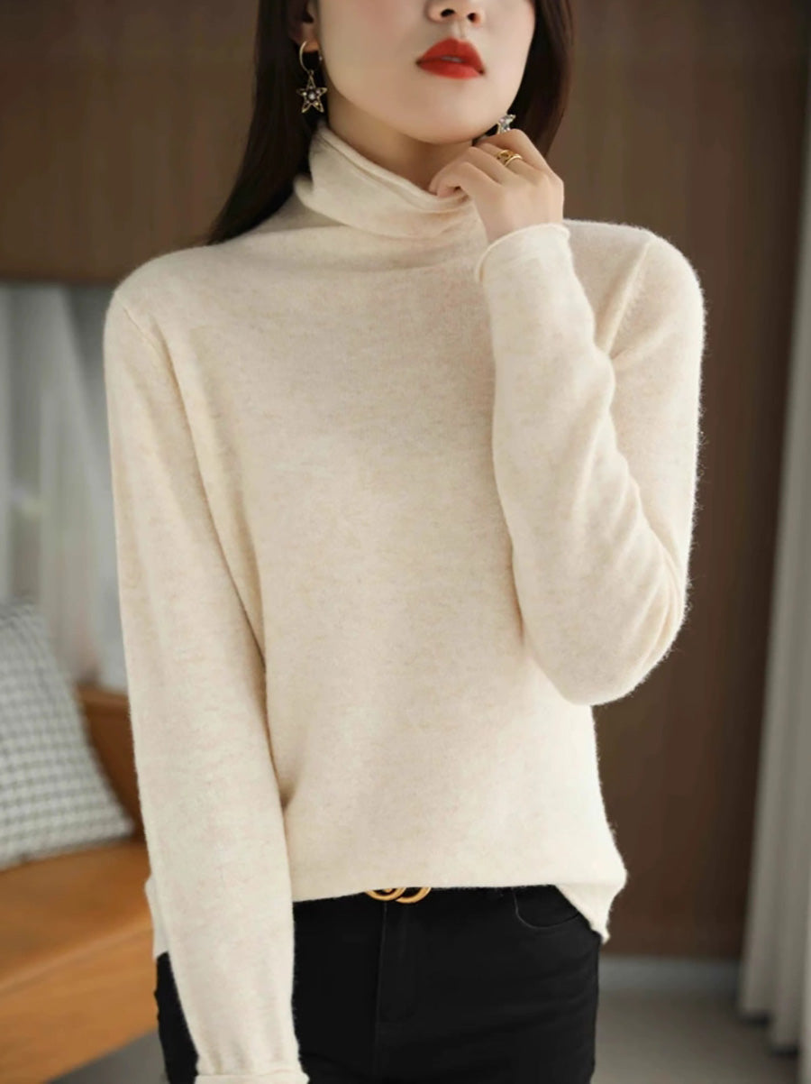 Women Autumn Artsy Pure Color Wool Turtleneck Sweater