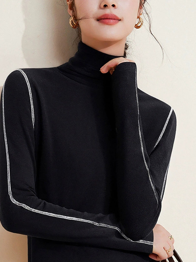 Women Winter Casual Fleece-lined Turtleneck Blouse