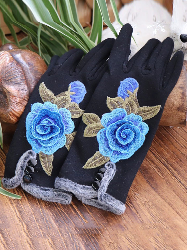 Women Ethnic Winter Embroidery Fleece-lined Gloves