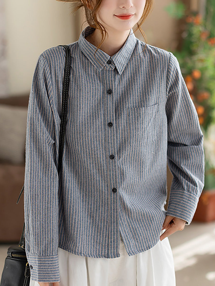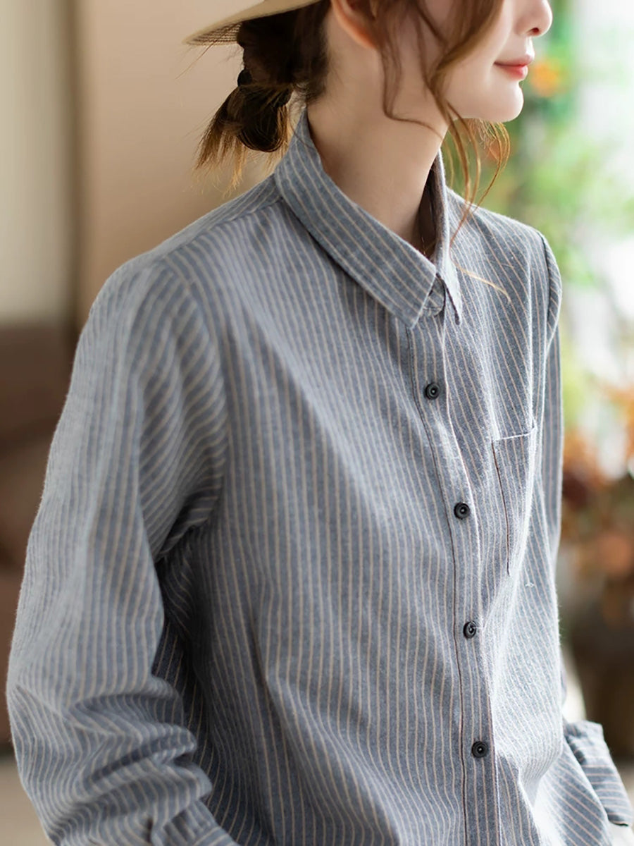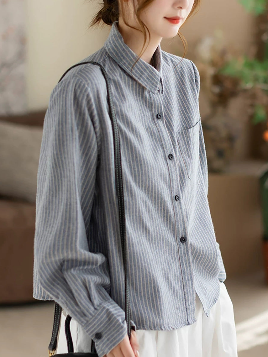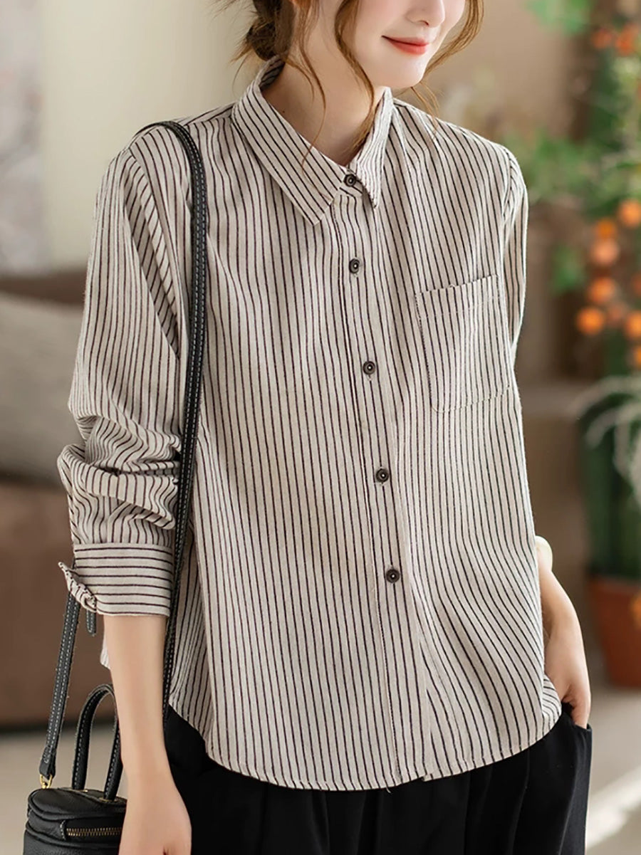 Women Spring Artsy Stripe Cotton Shirt