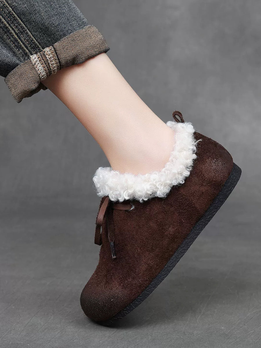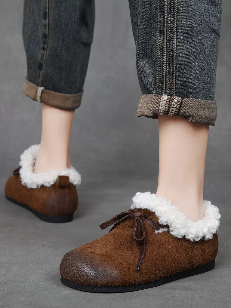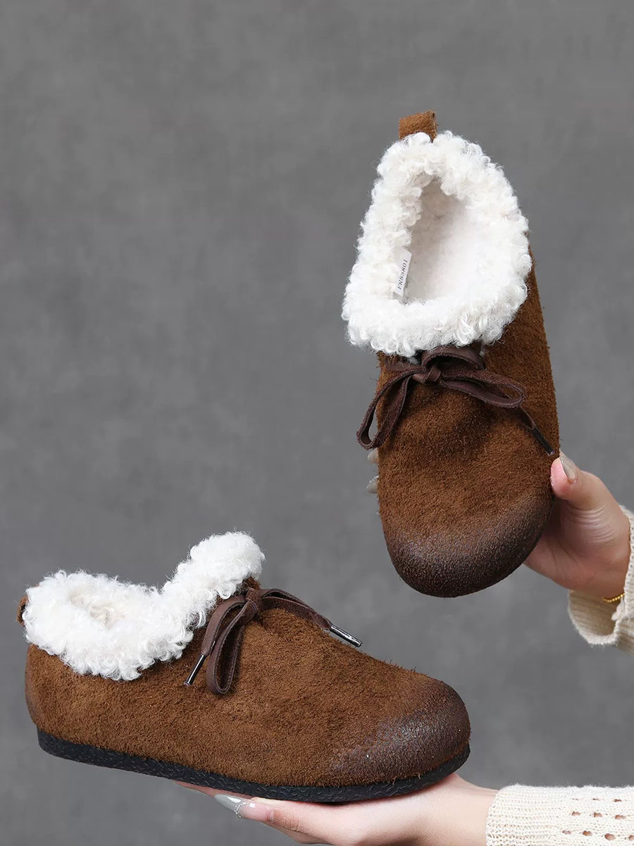 Women Vintage Genuine Leather Fleece-lined Shoes
