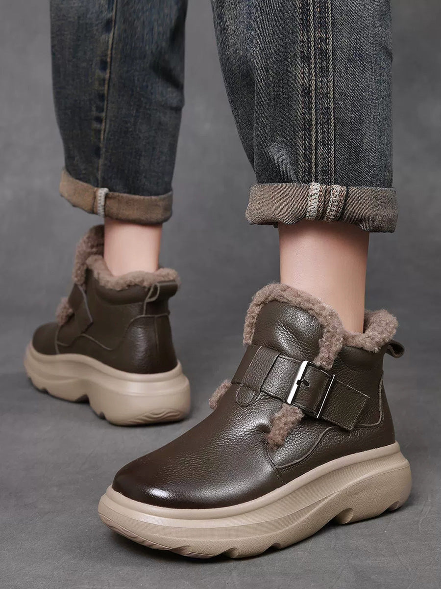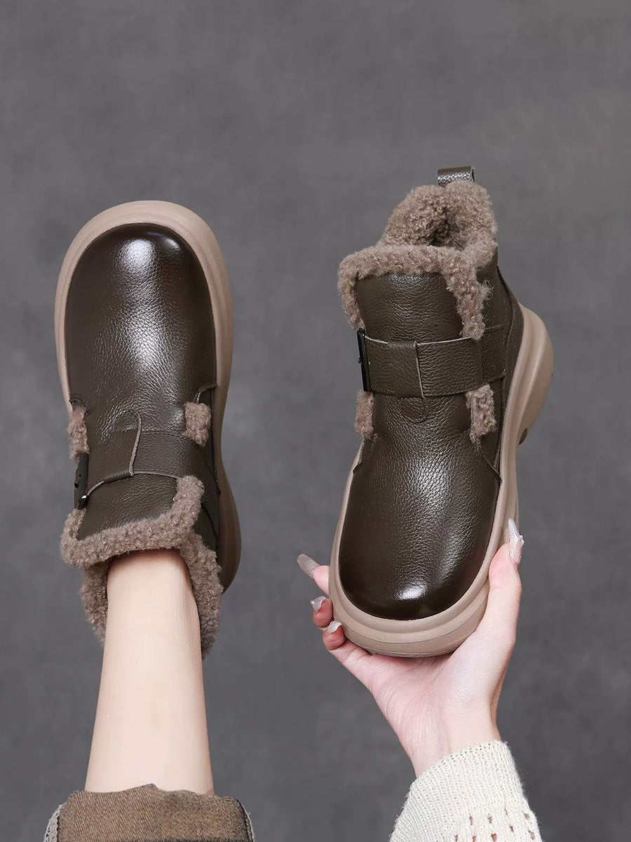 Women Winter Genuine Leather Fleece-lined Ankle Boots