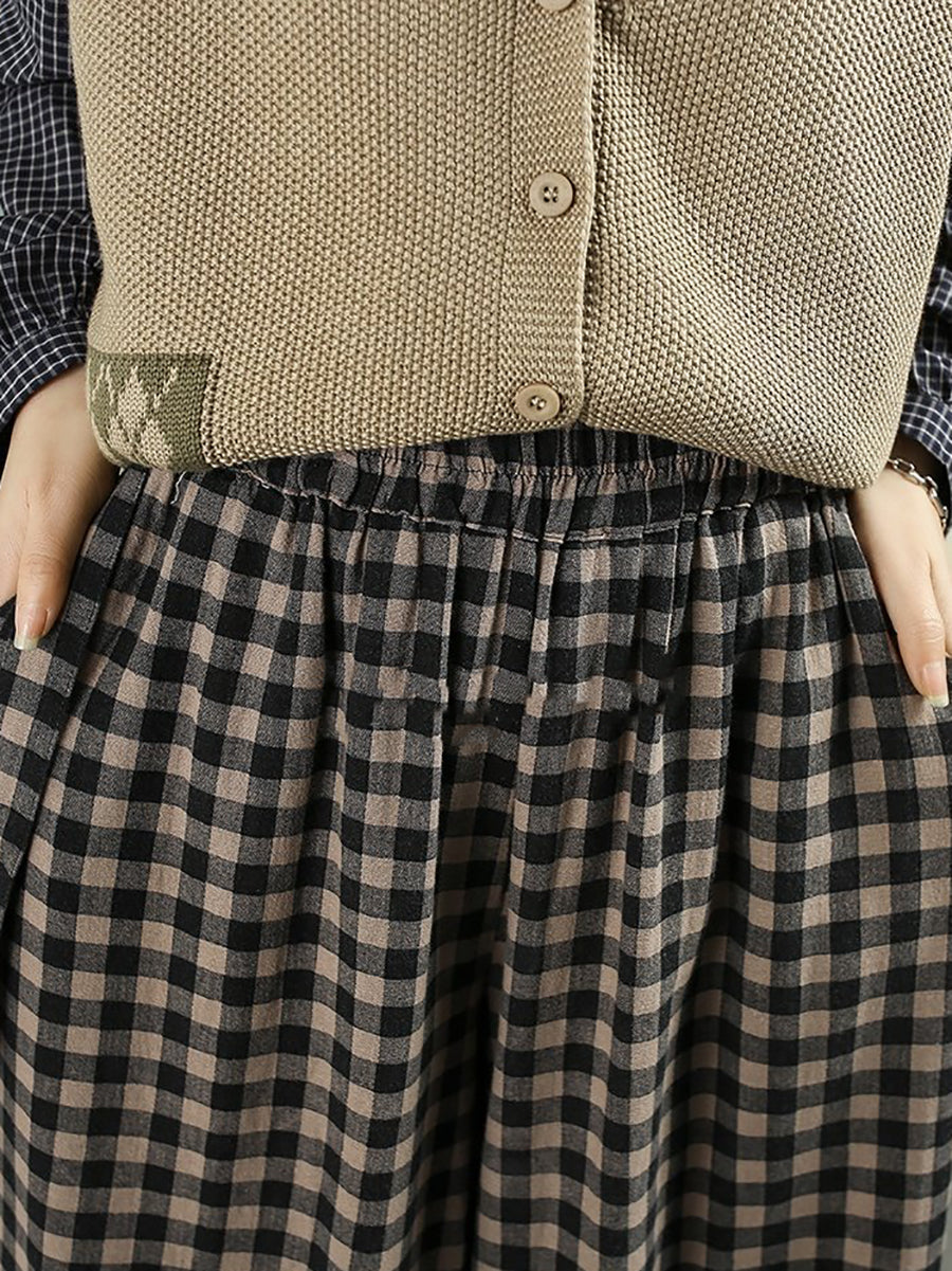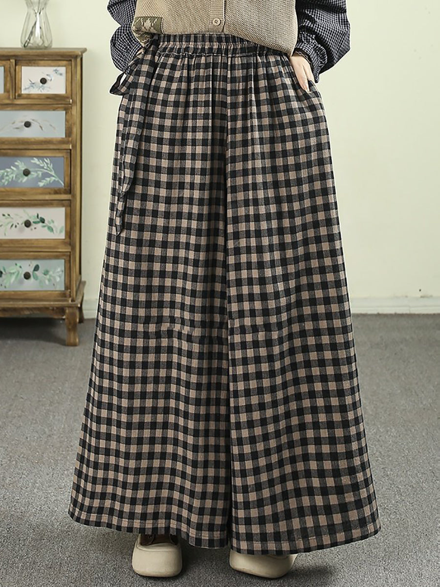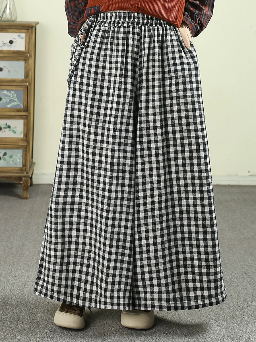 Women Spring Vintage Plaid Wide-leg Pants