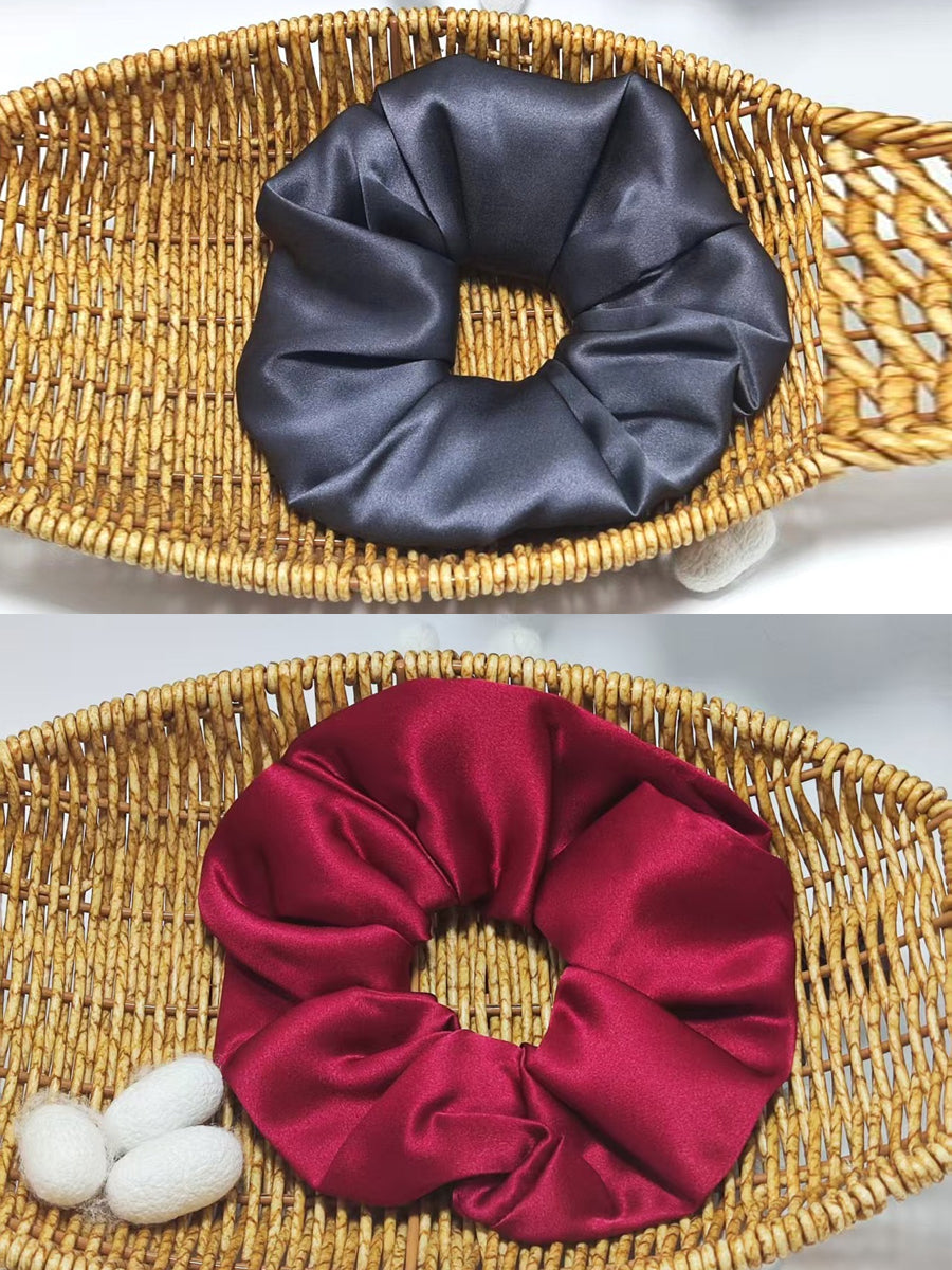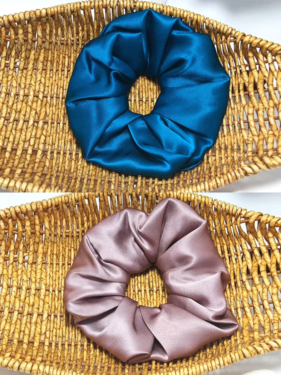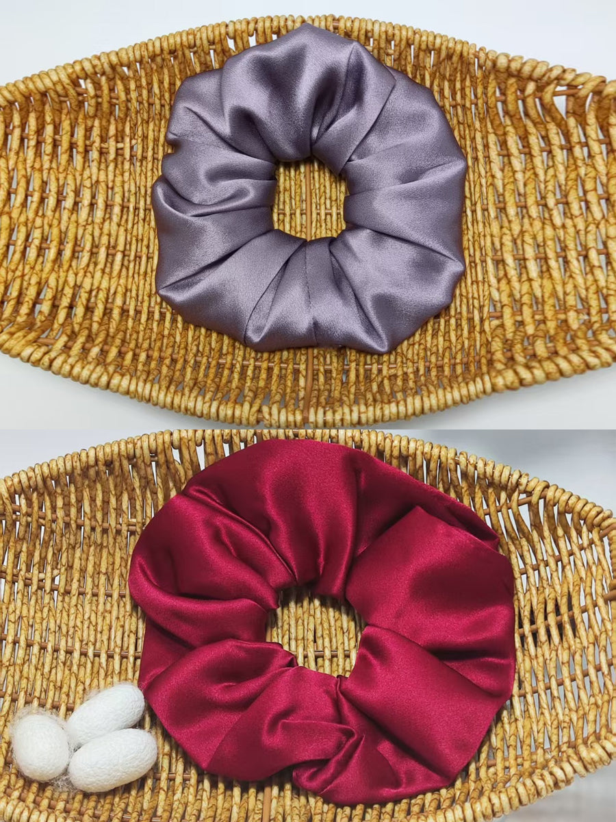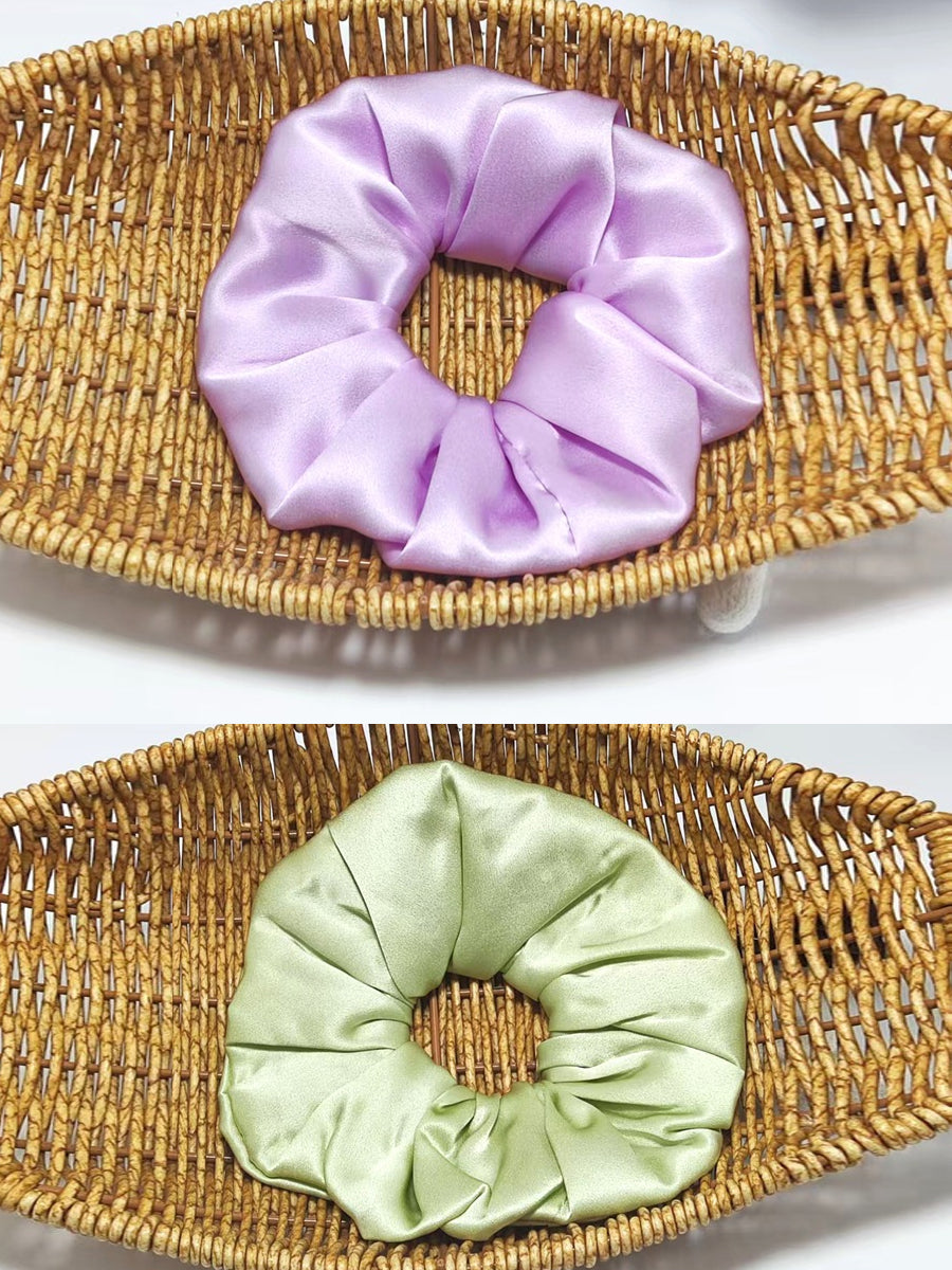 2 Pieces Handmade Pure Color Pleated Silk Hair Rope