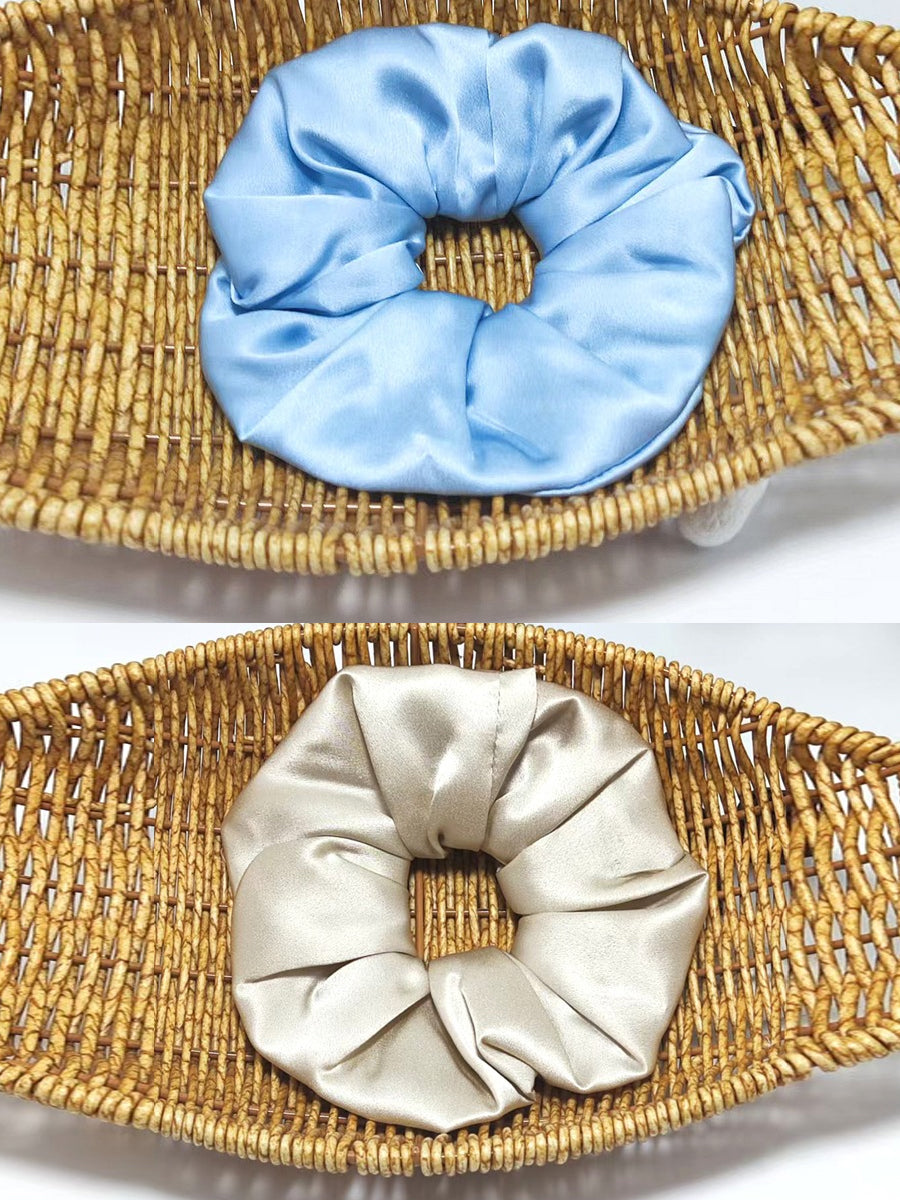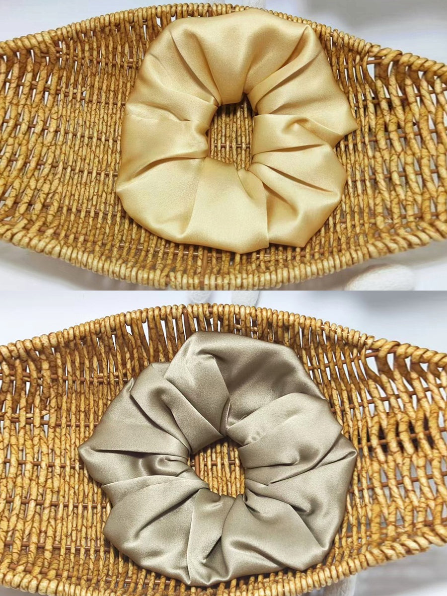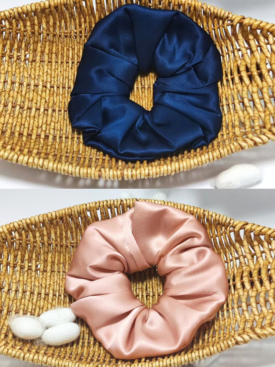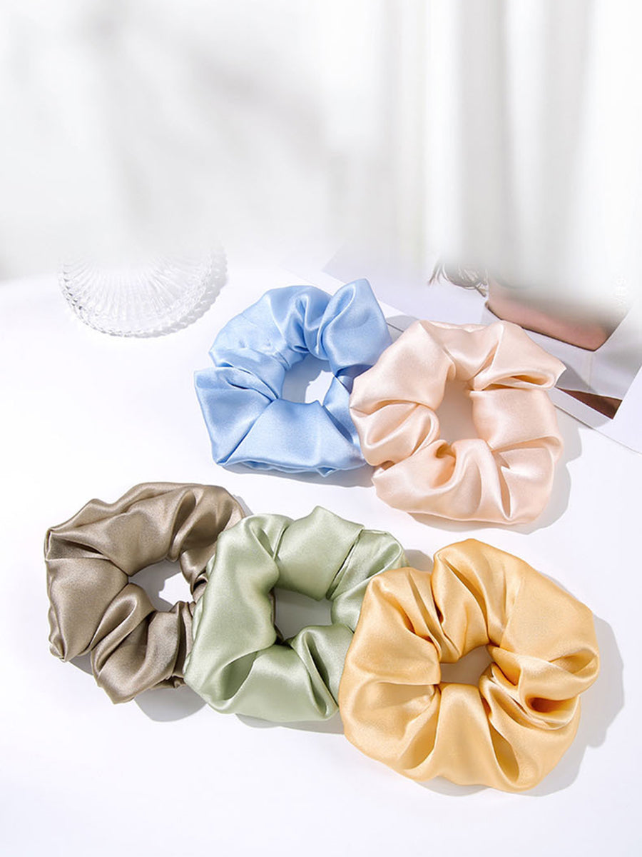 2 Pieces Handmade Pure Color Pleated Silk Hair Rope