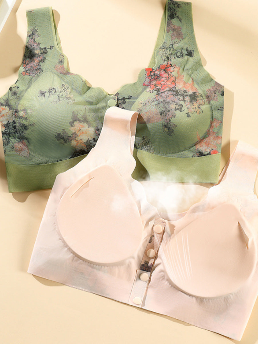 3 Pieces Women Artsy Flower Front-buckle Wireless Bra