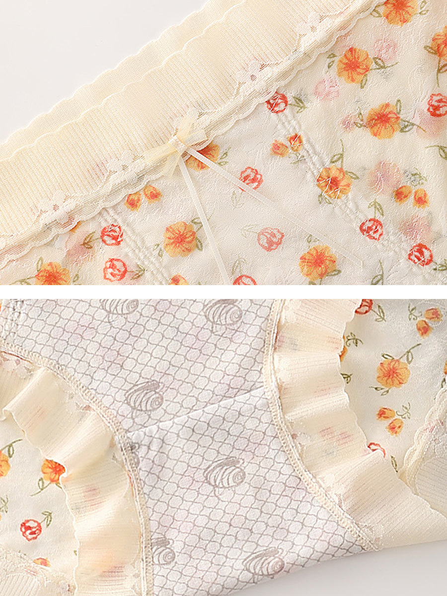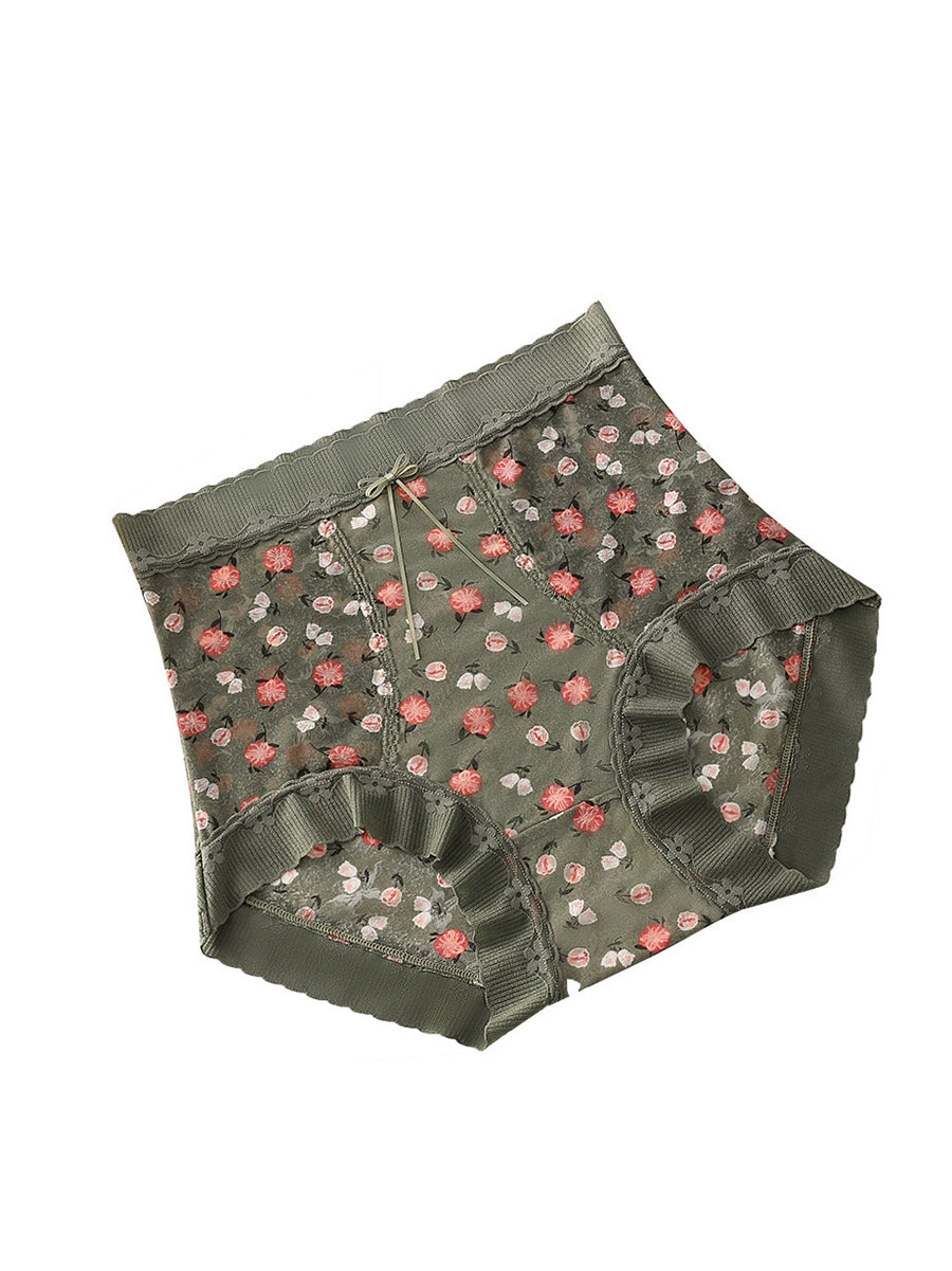 3 Pieces Women Artsy Floral High Waist Underwear
