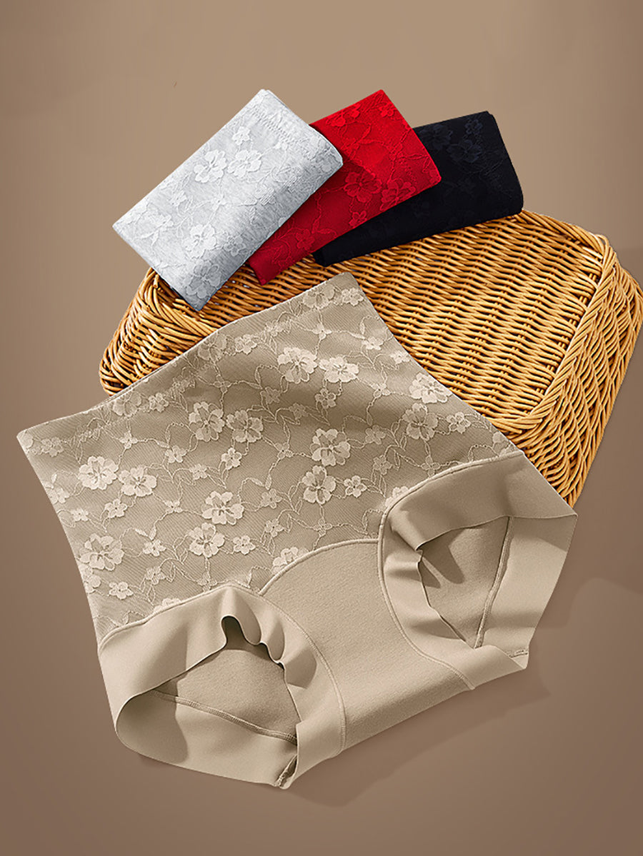 3 Pieces Women Artsy Floral High Waist Underwear