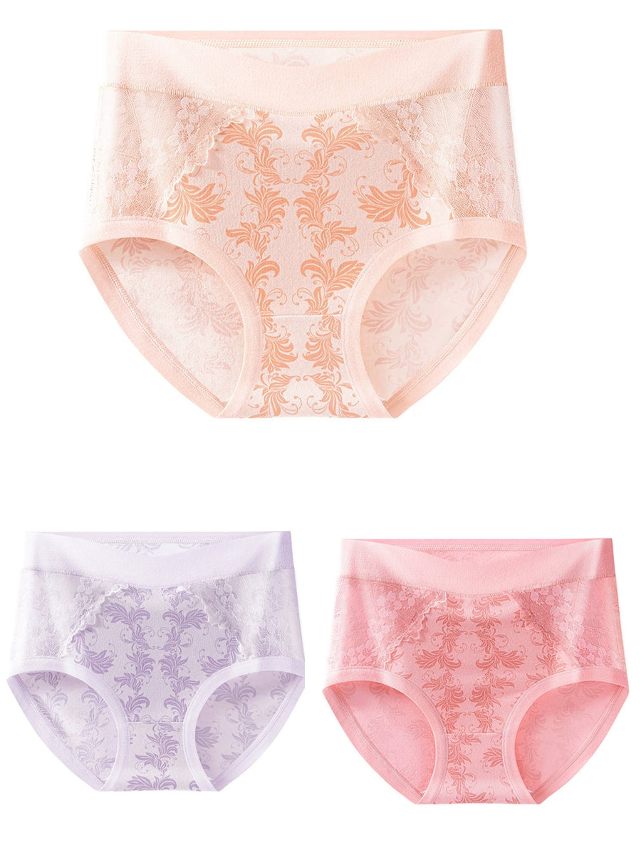 3 Pieces Women Artsy Flower Lace High Waist Underwear