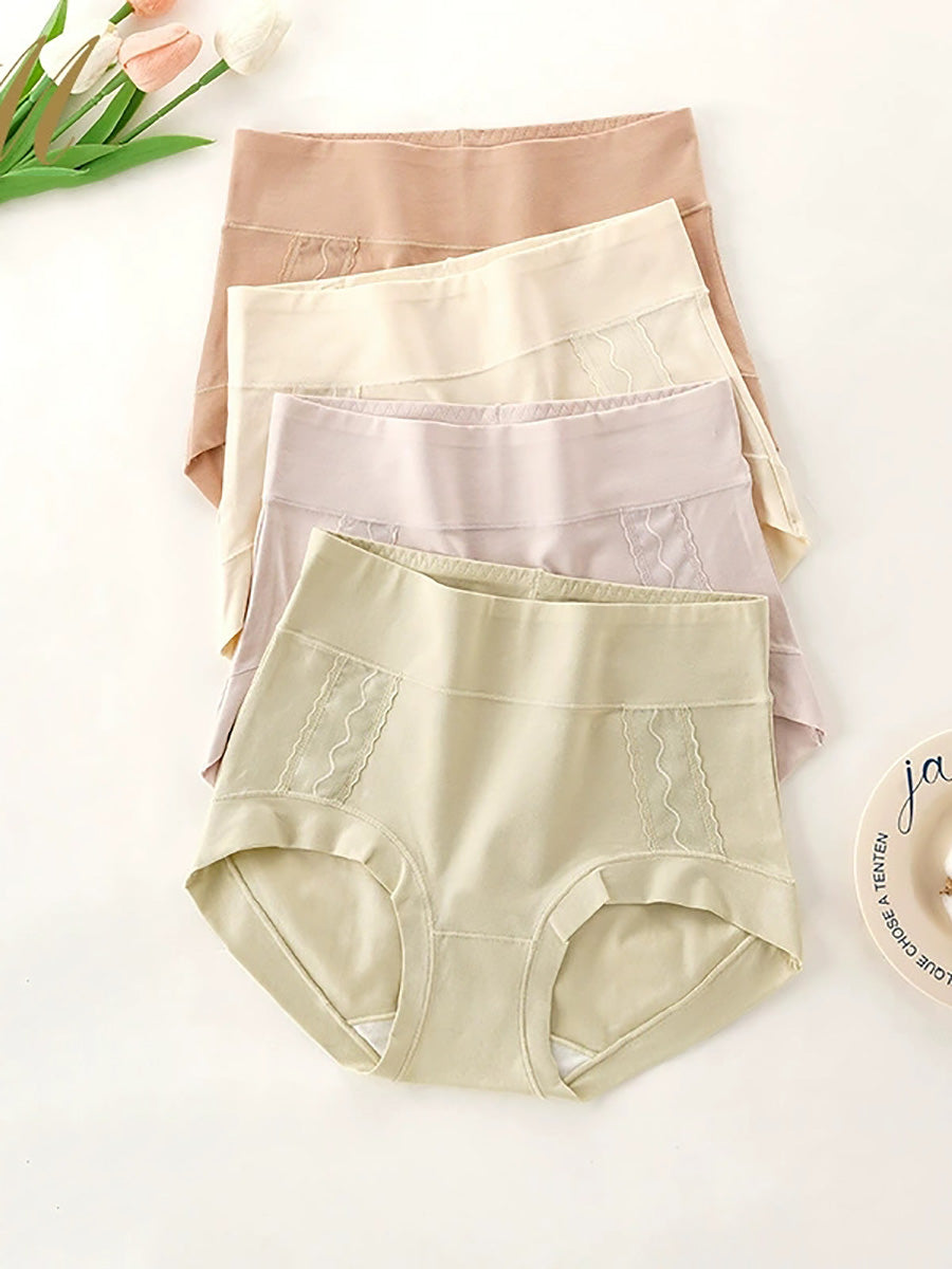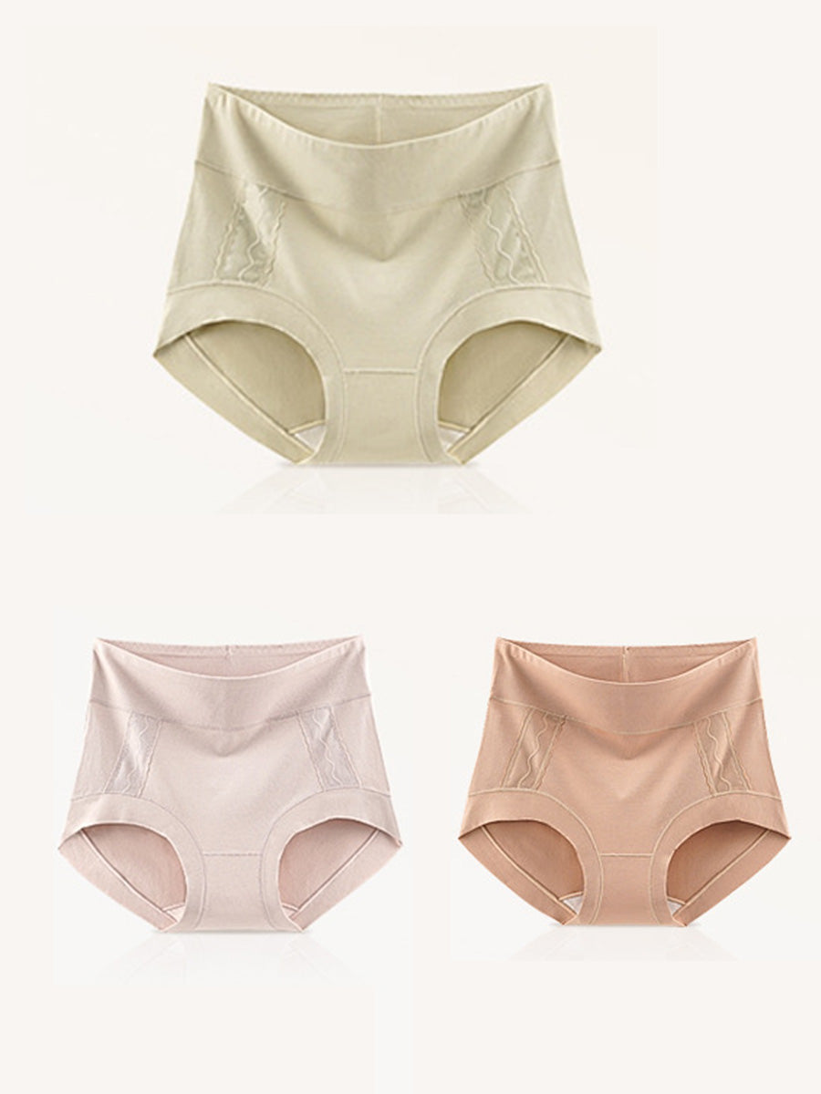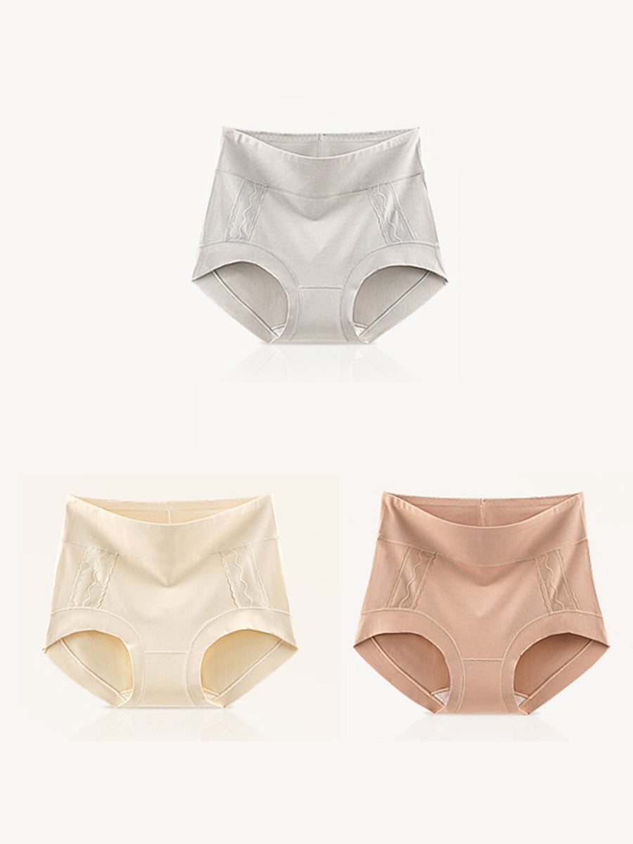 3 Pieces Women Artsy Pure Color High Waist Underwear