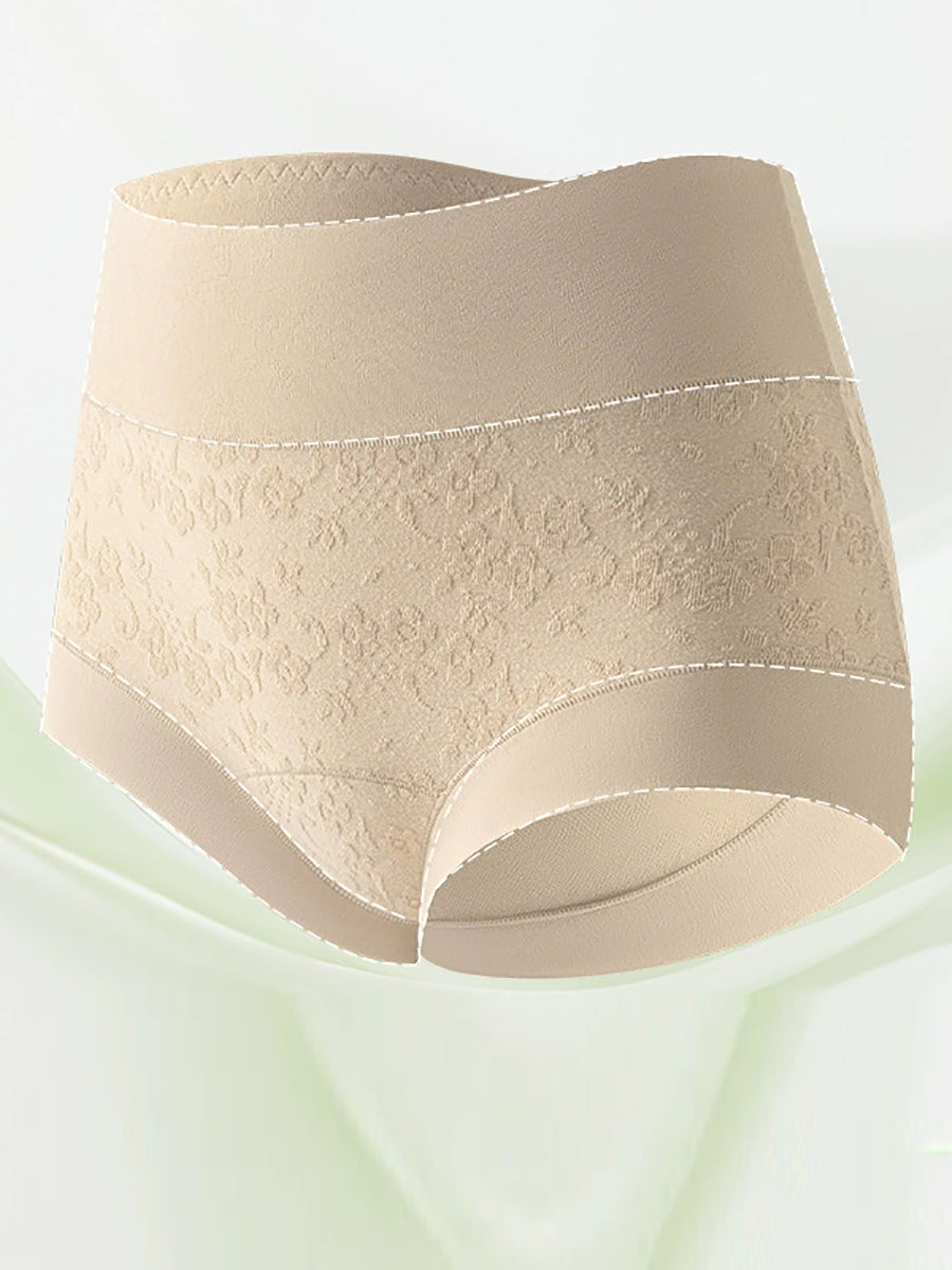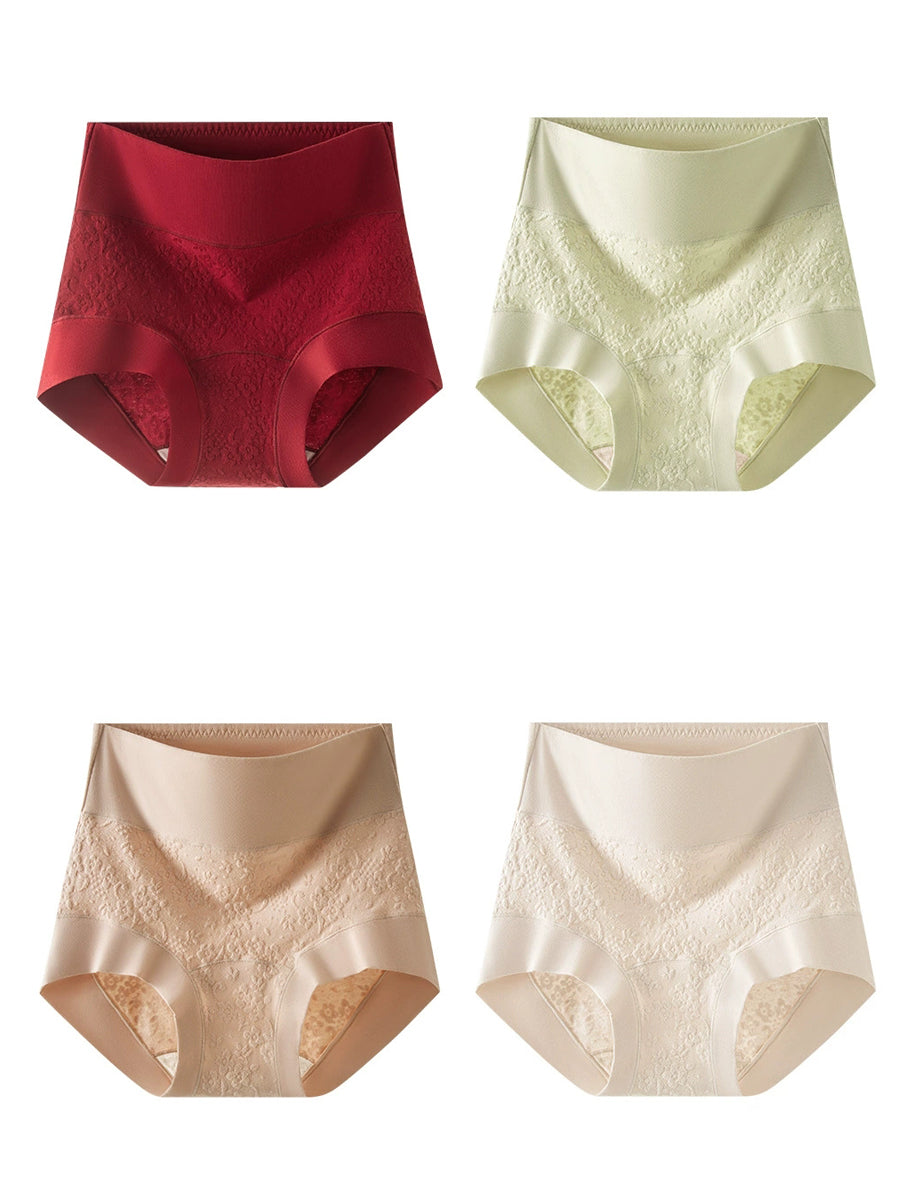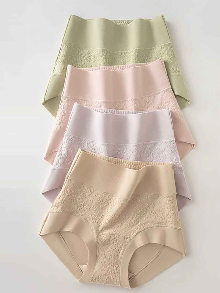 4 Pieces Women Artsy Flower Embossing High Waist Underwear