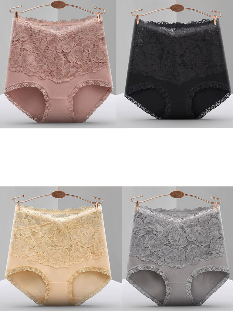 4 Pieces Women Artsy Lace High Waist Underwear